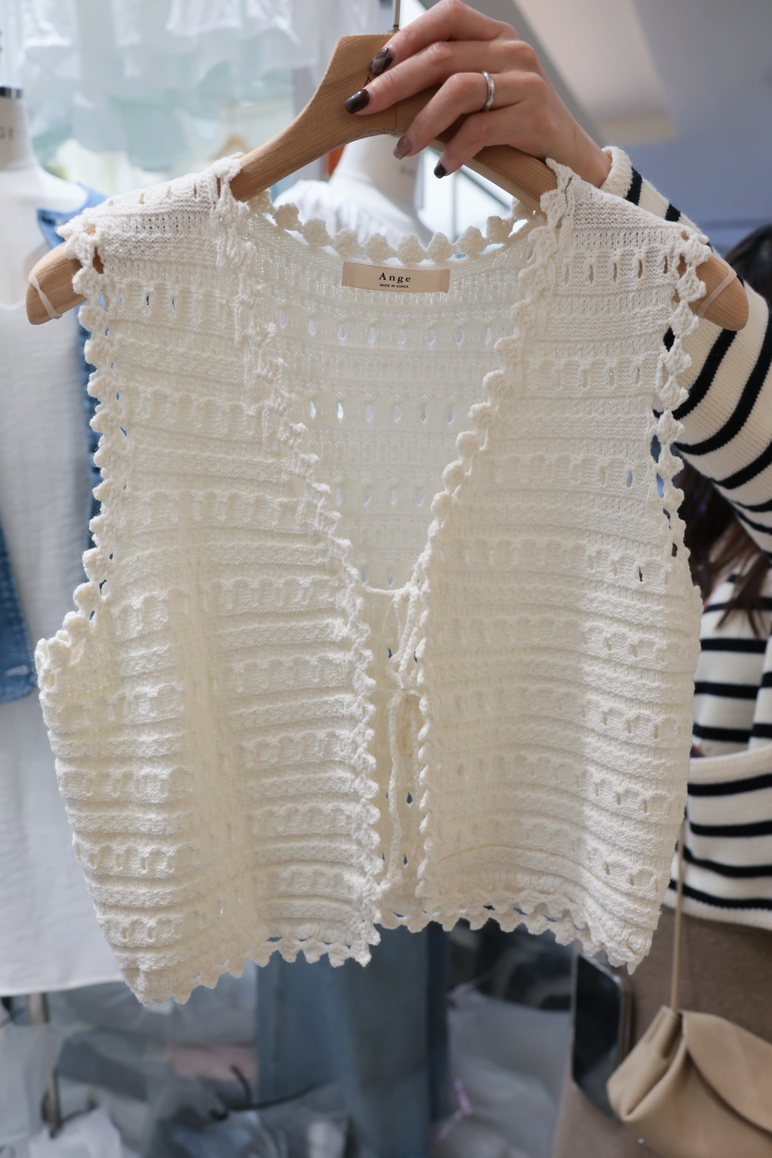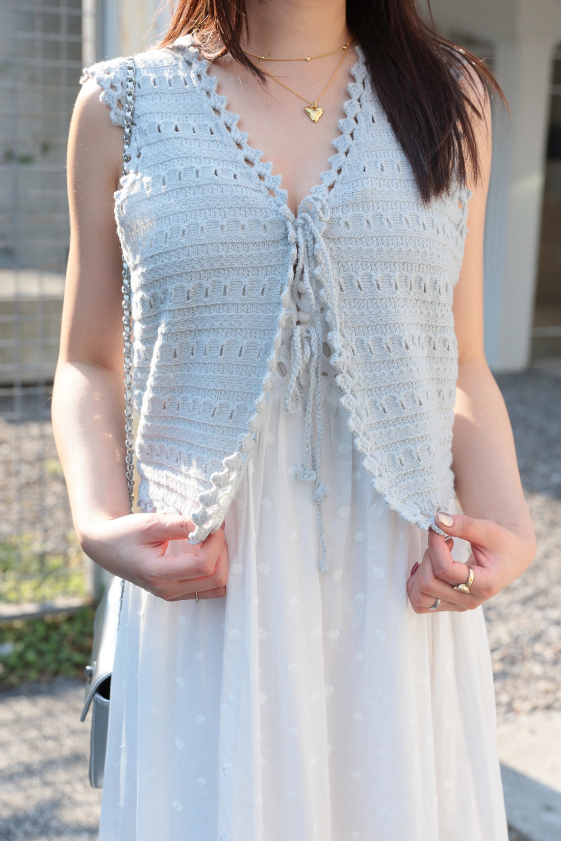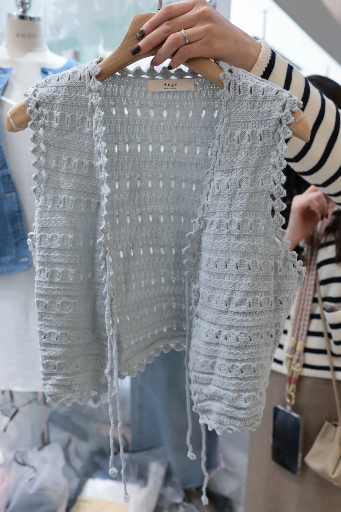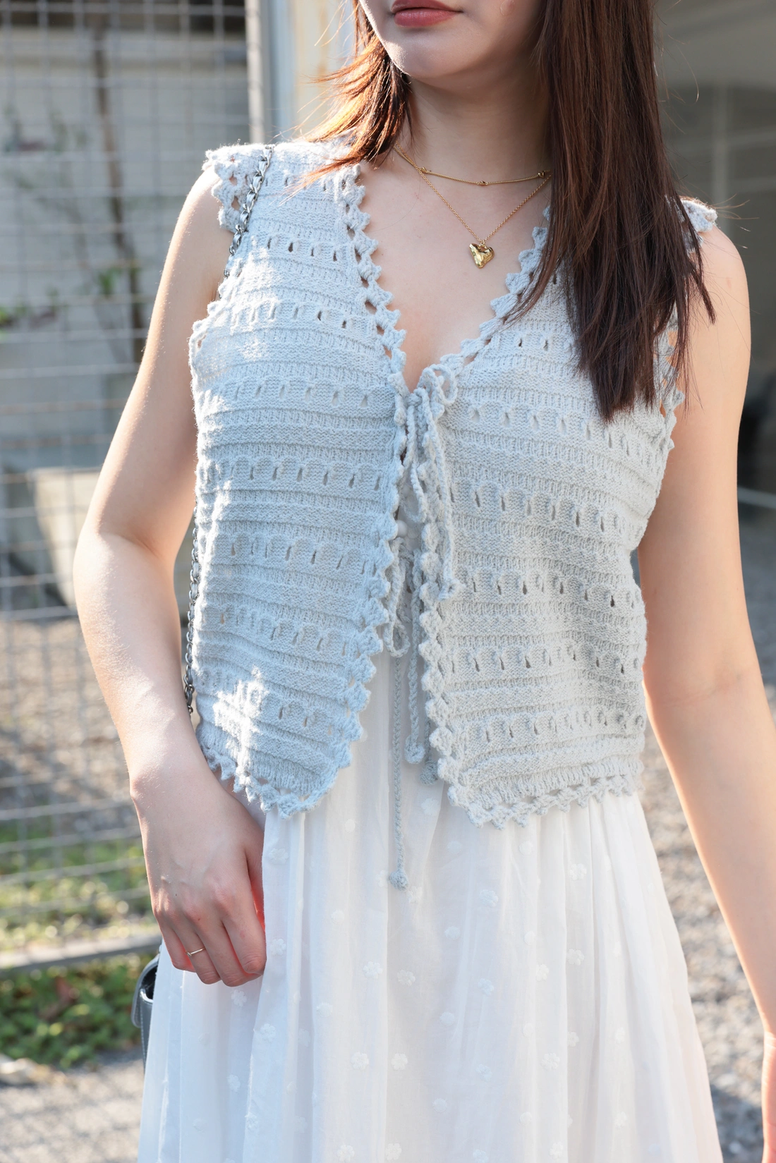 編織感設計背心/前綁帶可愛造型設計/兩色都好看