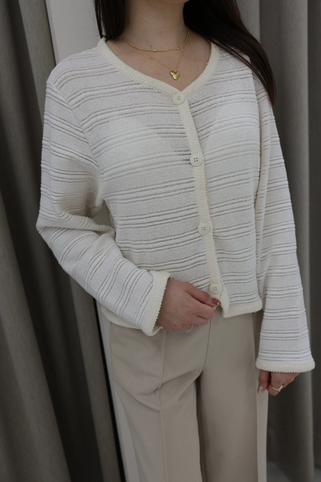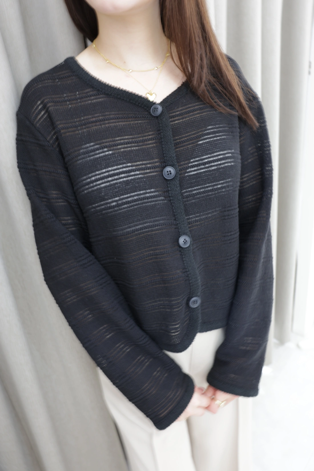 排扣經典設計外套/織紋材質/簍空造型小外