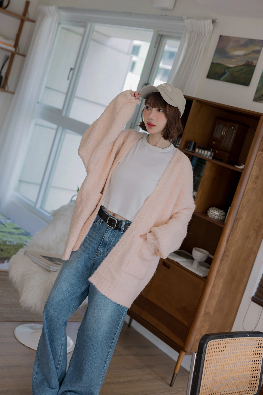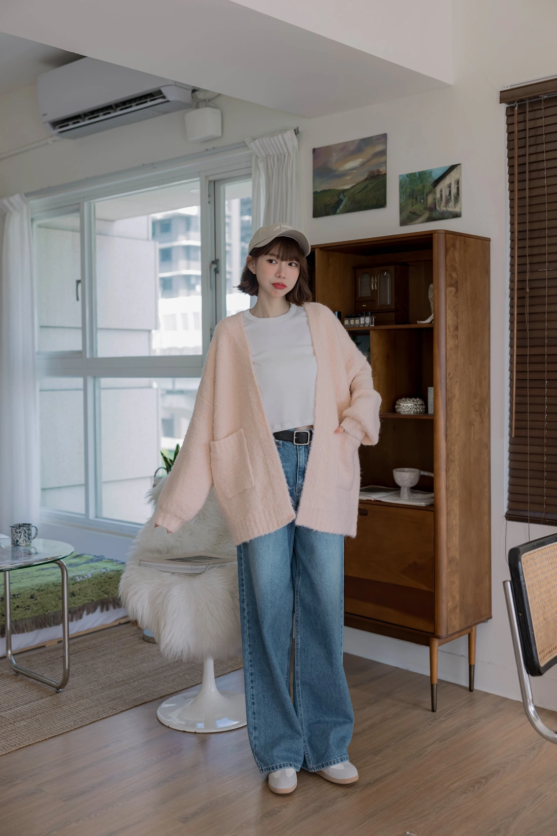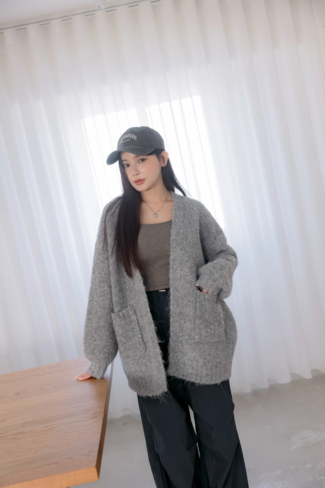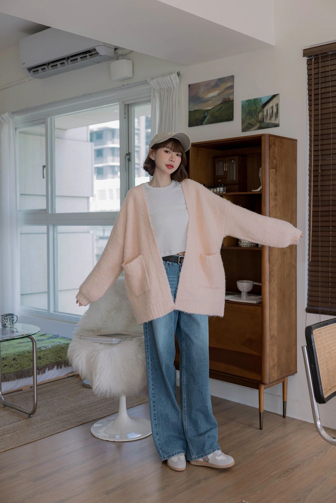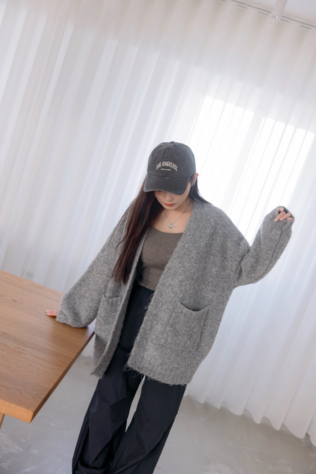 保暖羊毛材質/雙口袋設計開襟外套/寬鬆版型更顯瘦