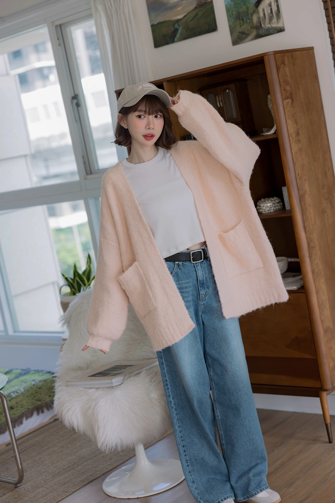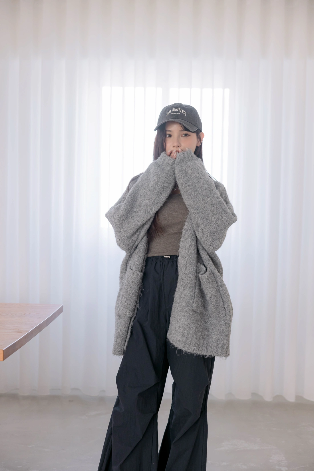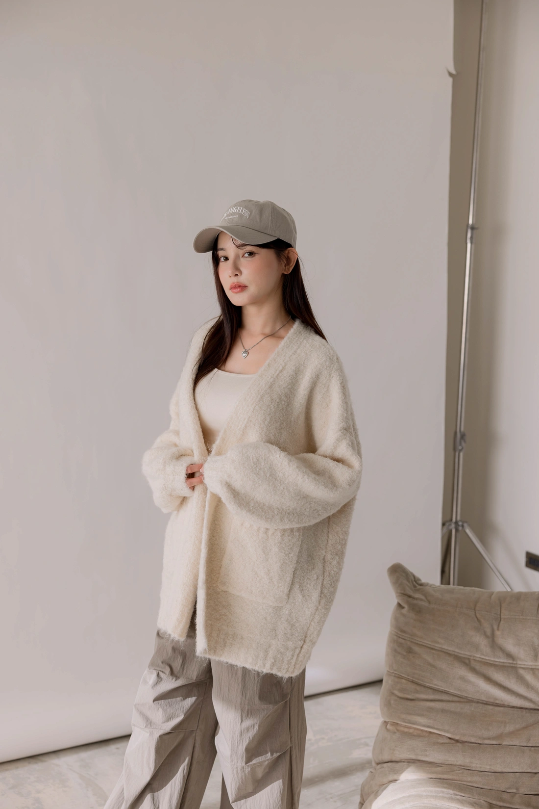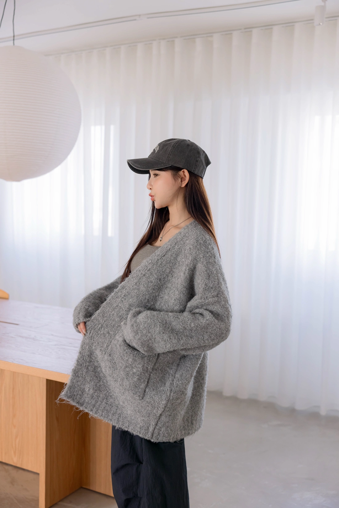 保暖羊毛材質/雙口袋設計開襟外套/寬鬆版型更顯瘦