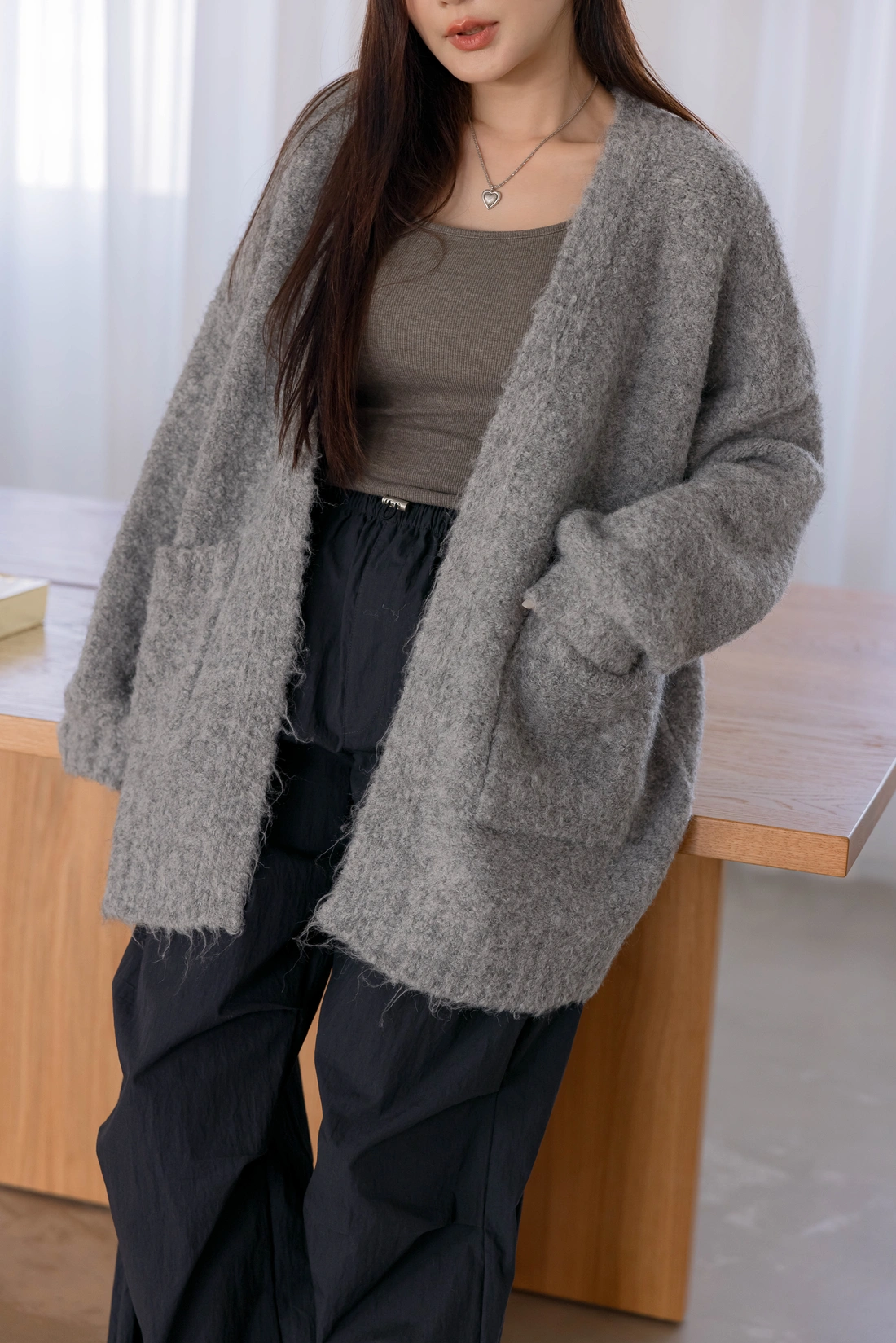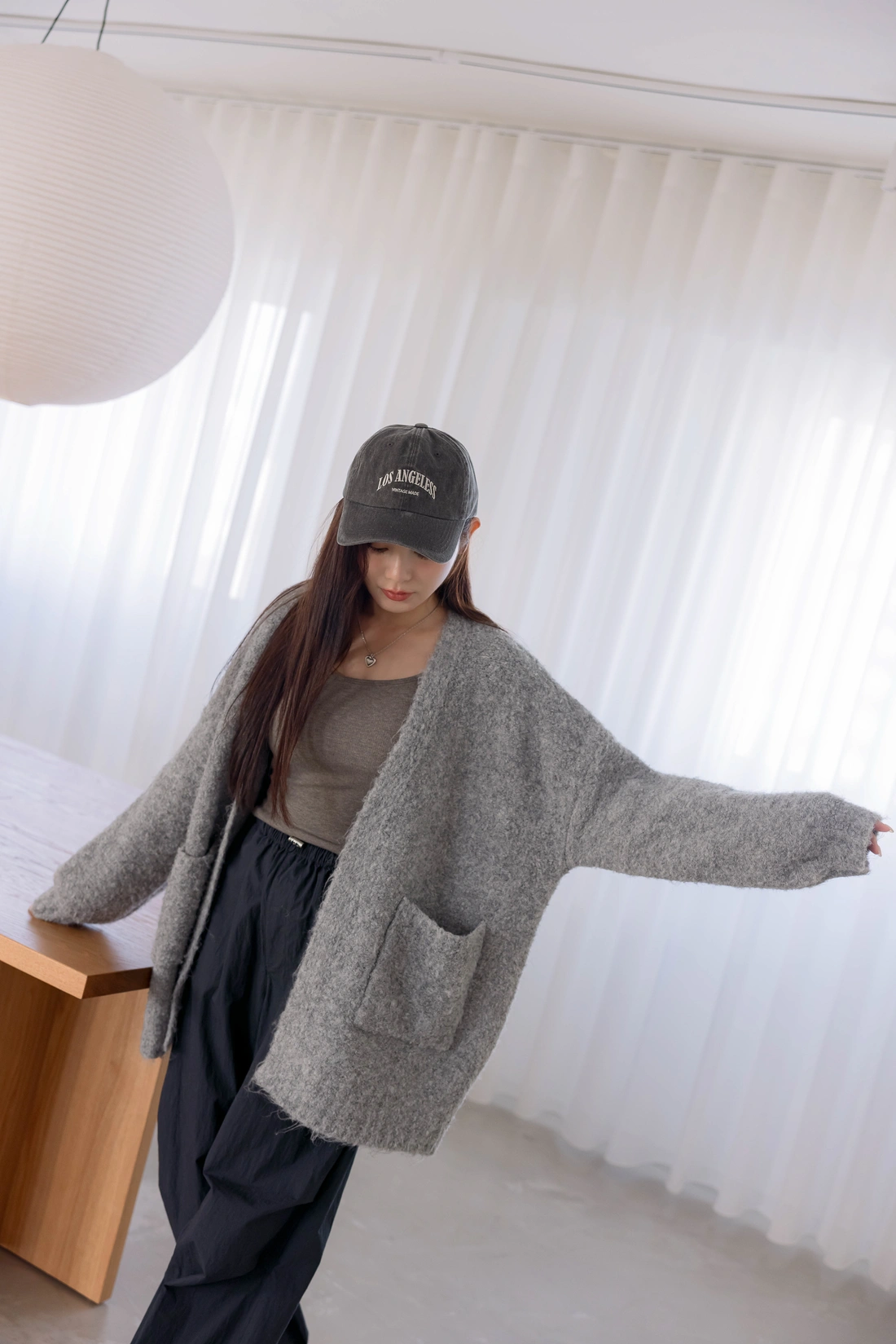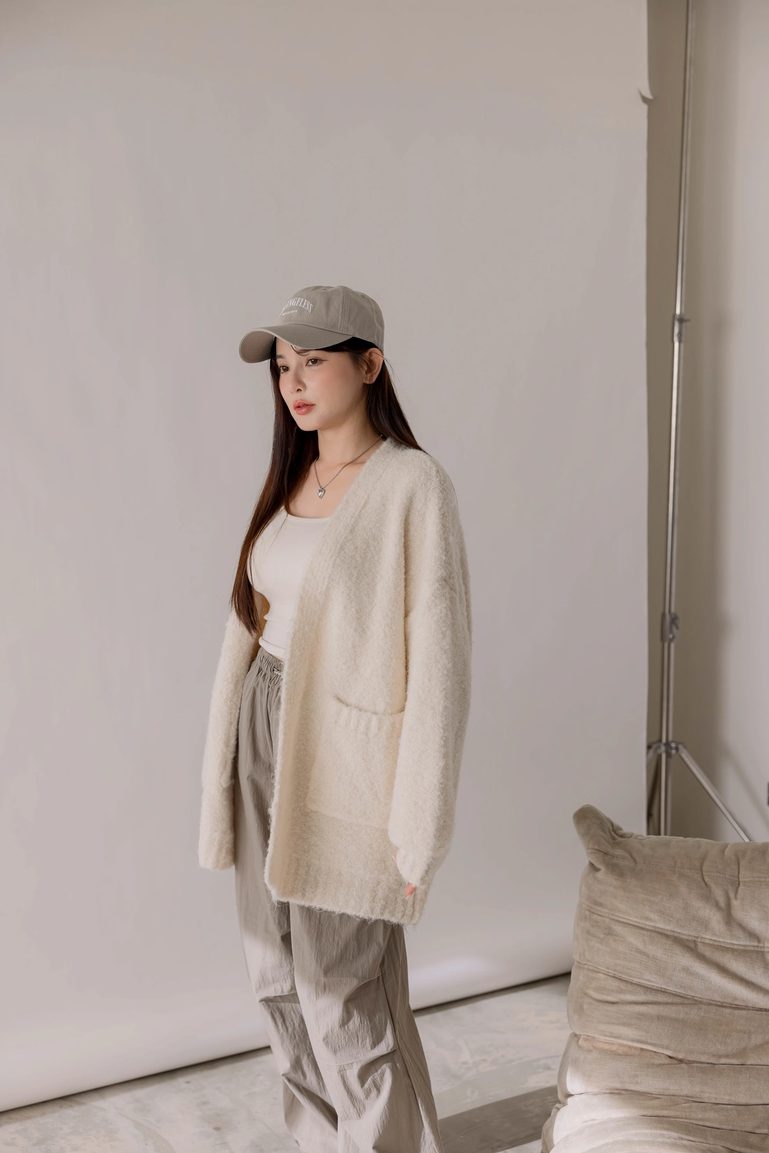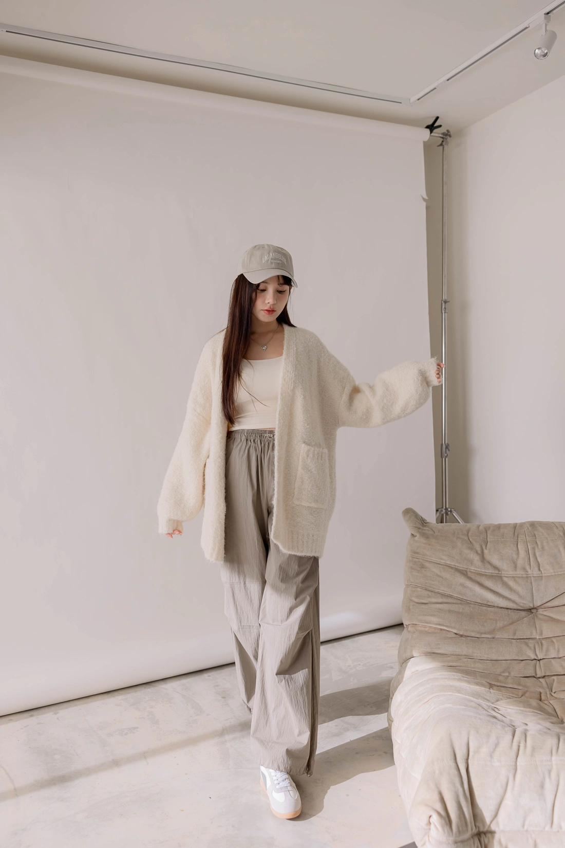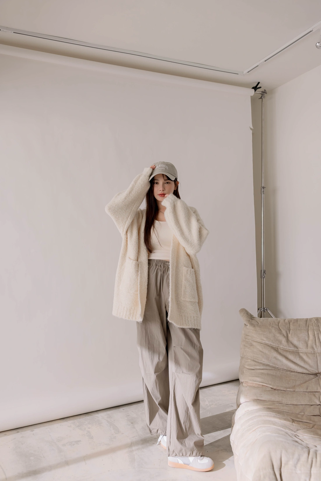 保暖羊毛材質/雙口袋設計開襟外套/寬鬆版型更顯瘦