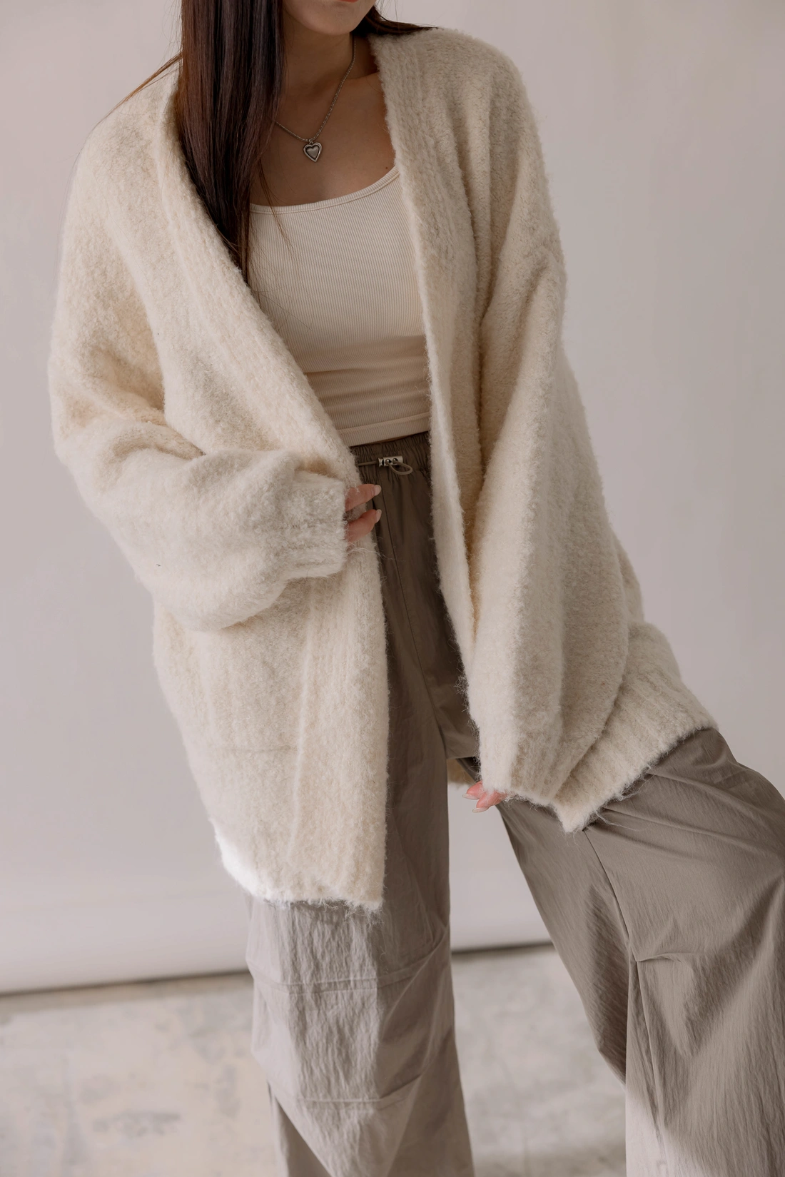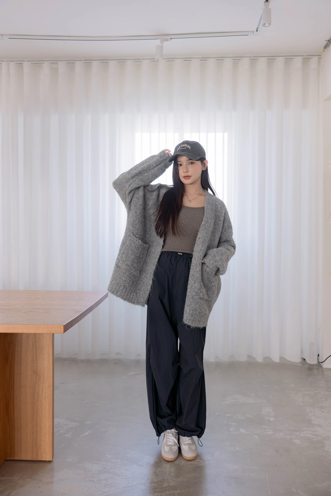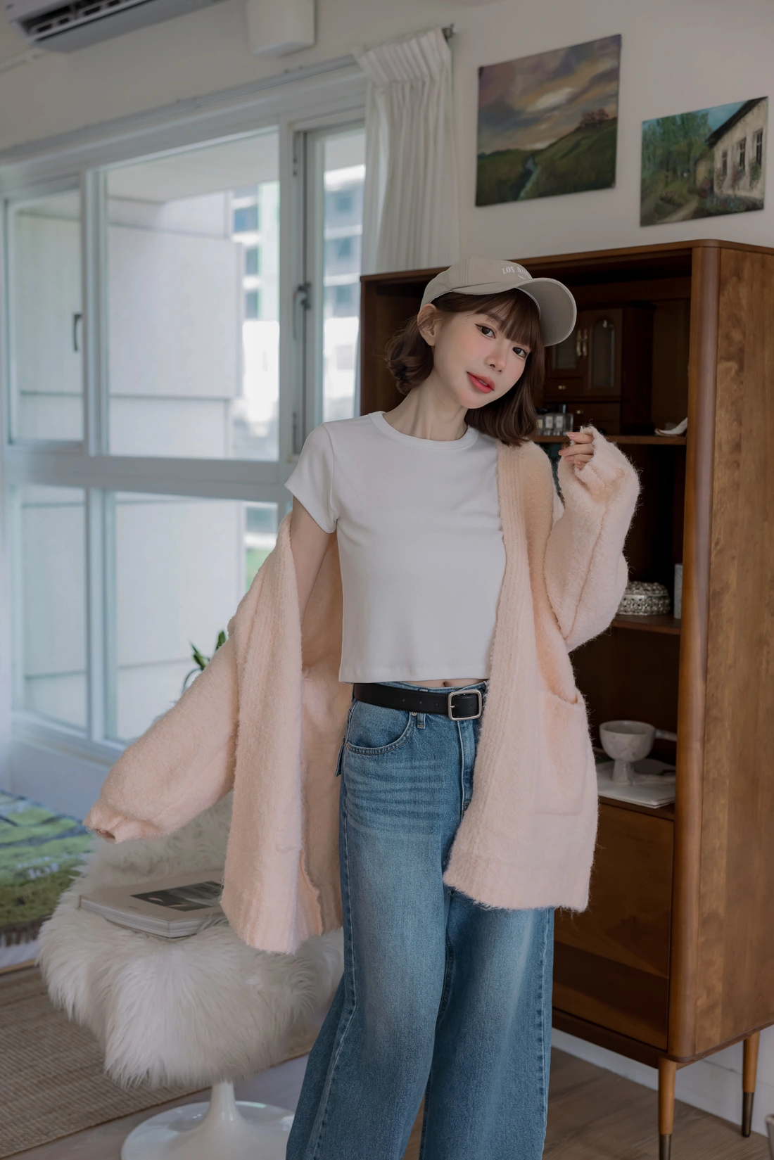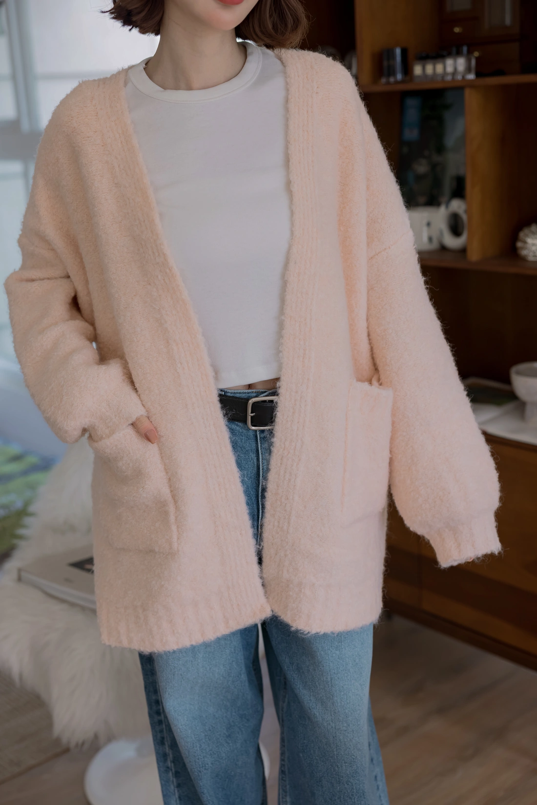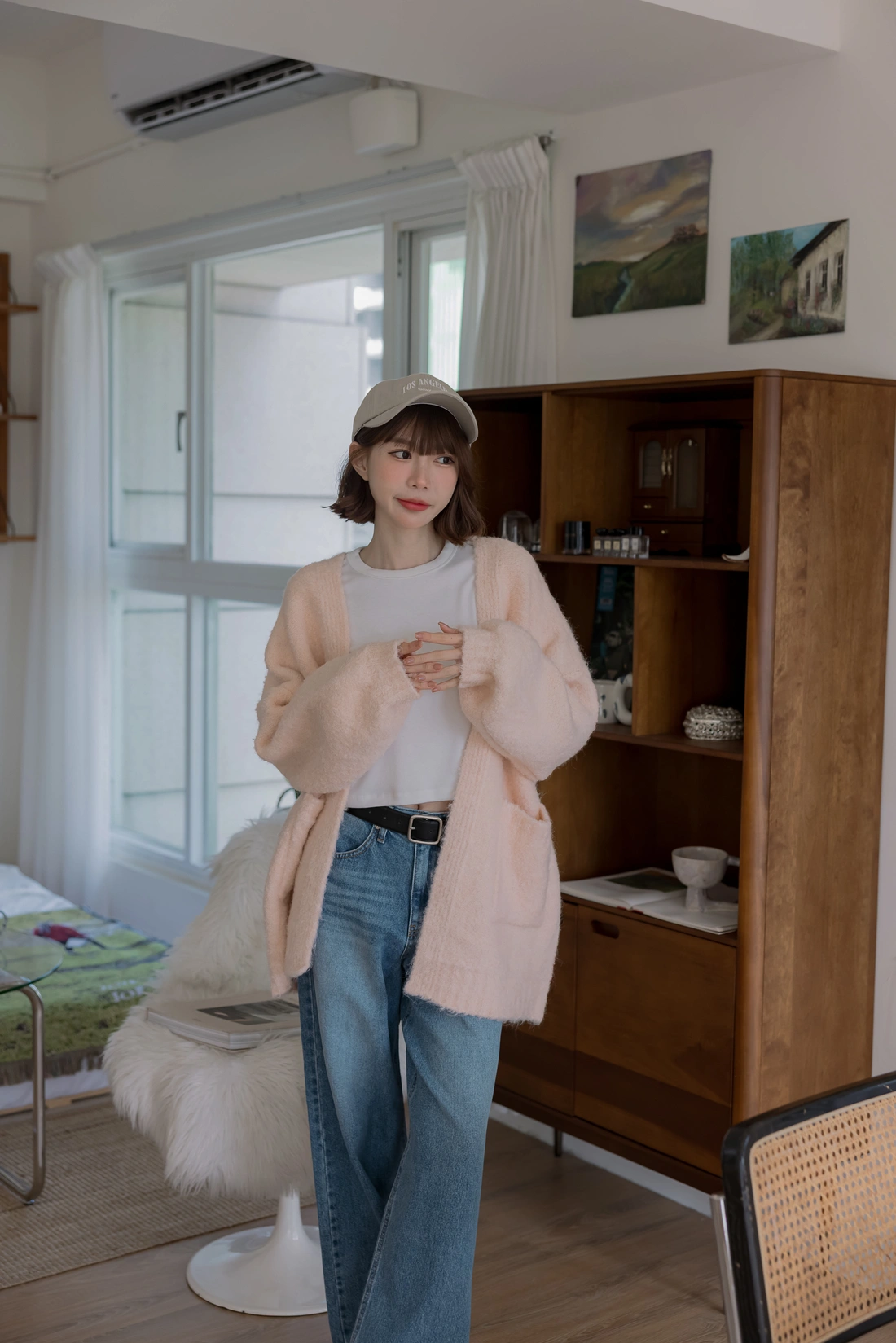 保暖羊毛材質/雙口袋設計開襟外套/寬鬆版型更顯瘦