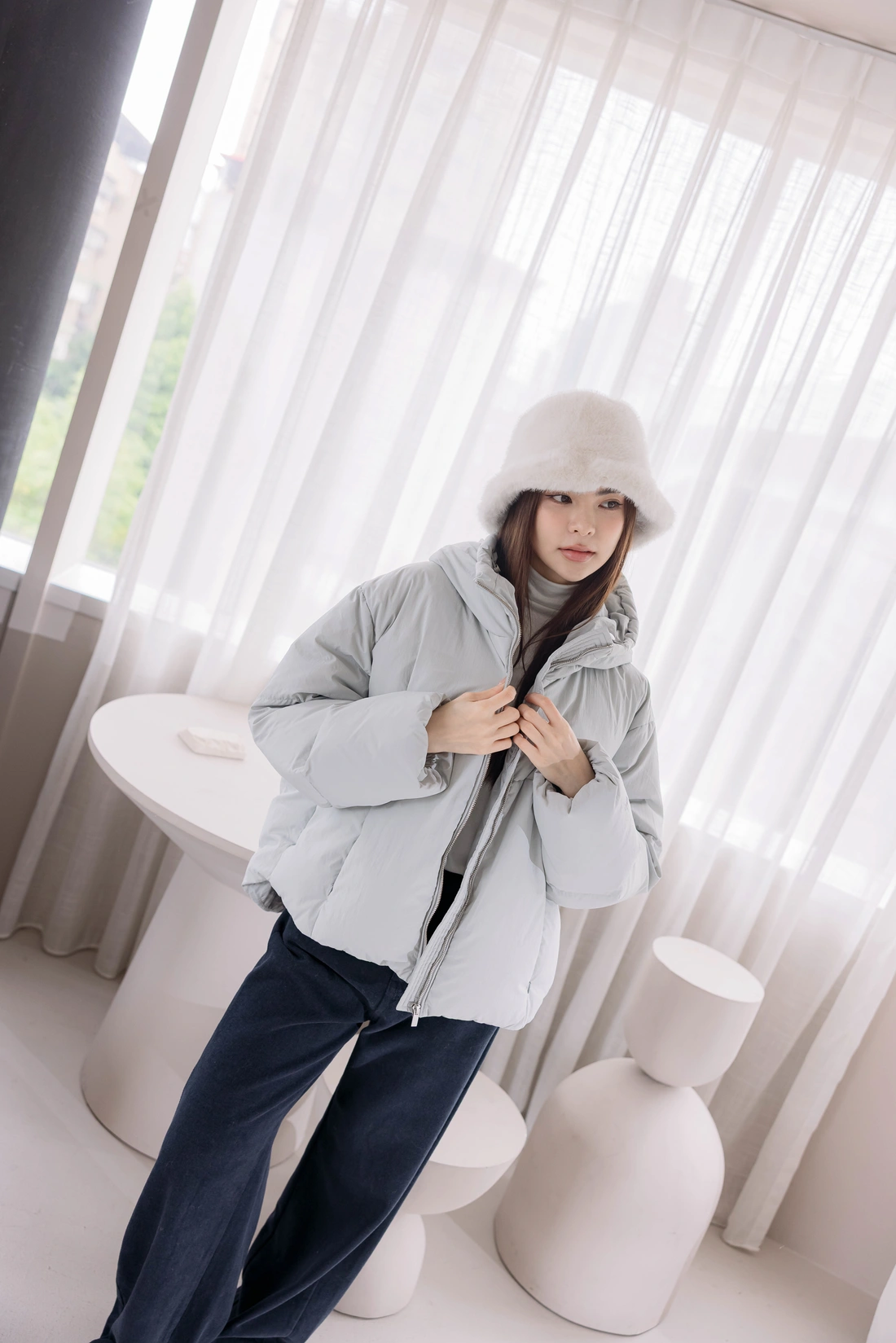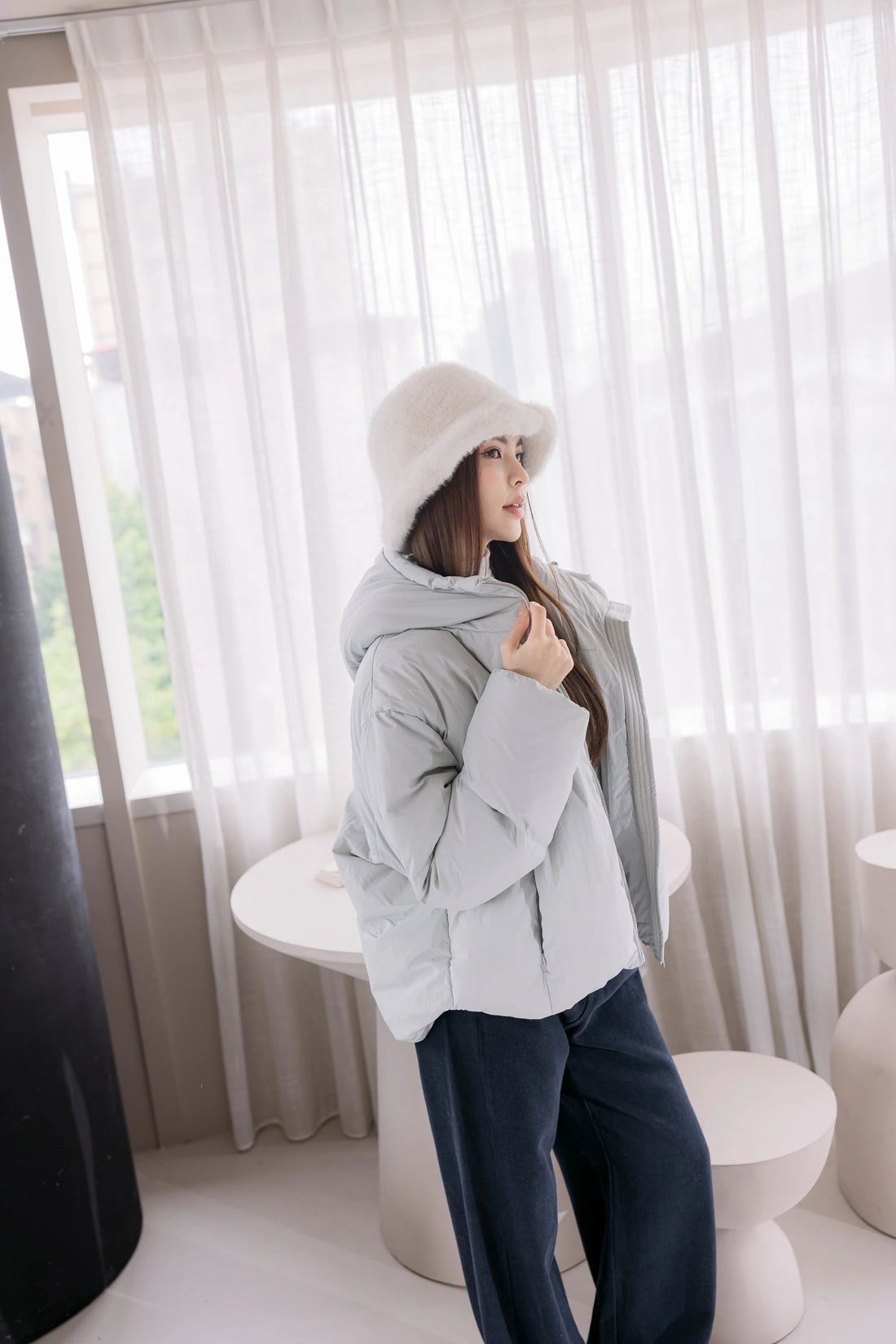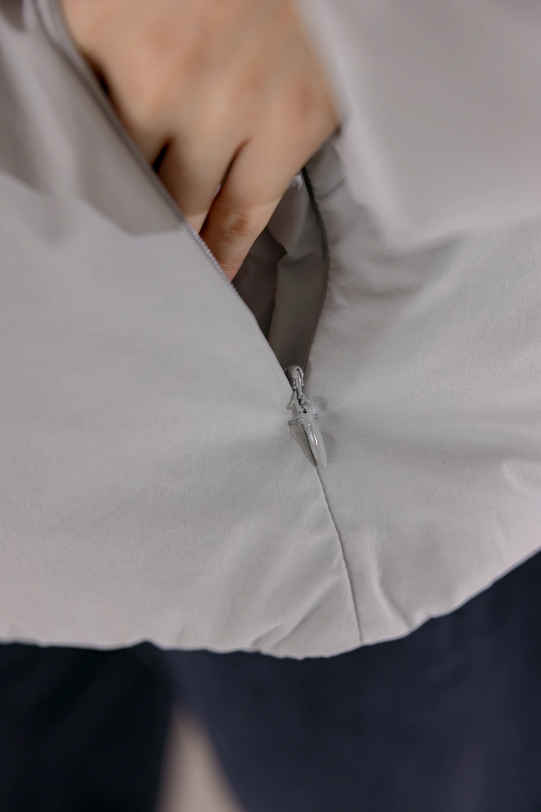 微立領設計/隱形拉鍊設計/袖口鬆緊設計