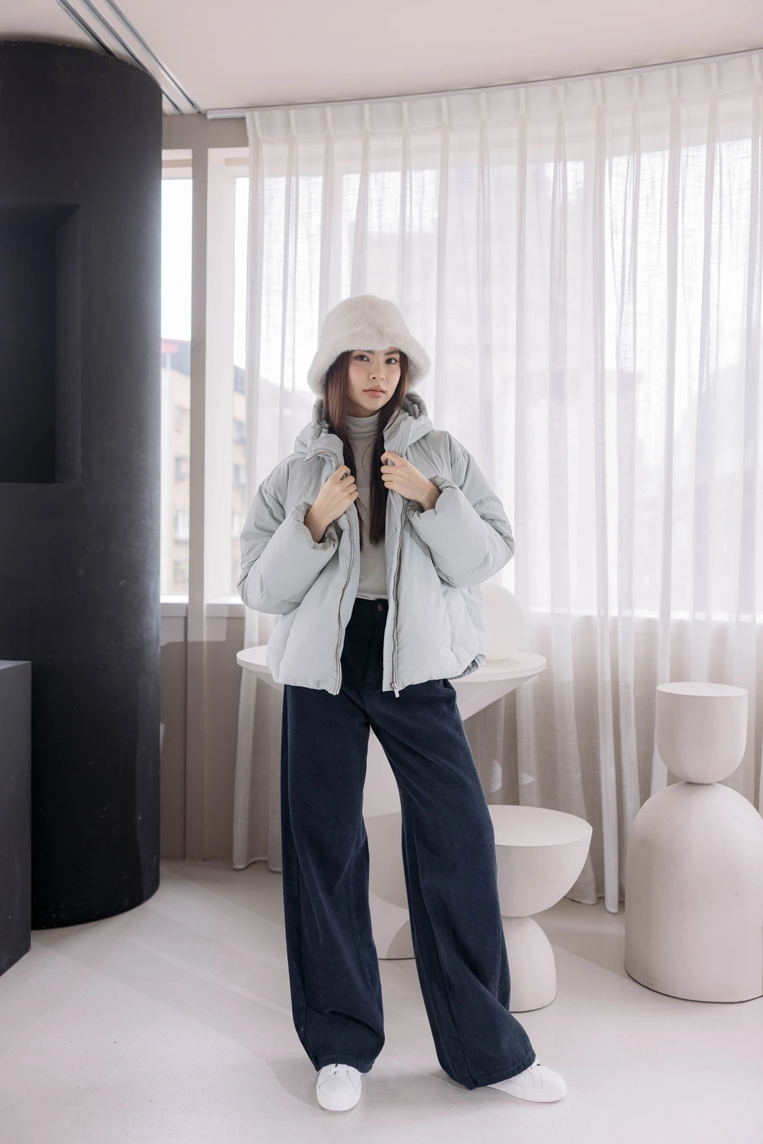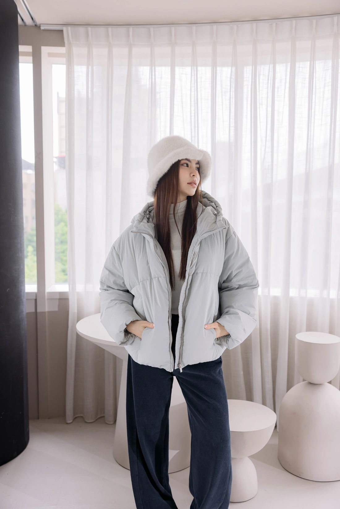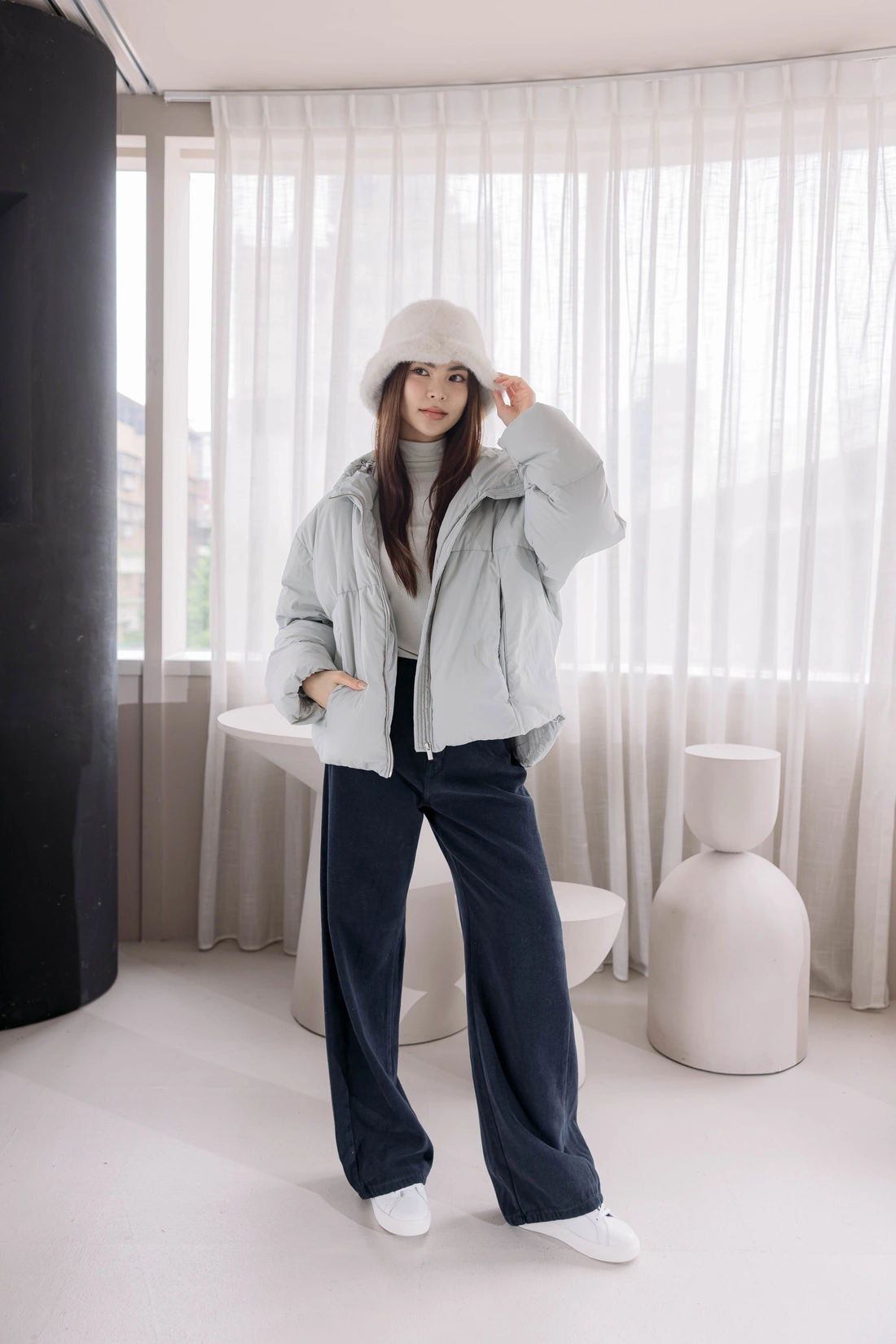 微立領設計/隱形拉鍊設計/袖口鬆緊設計