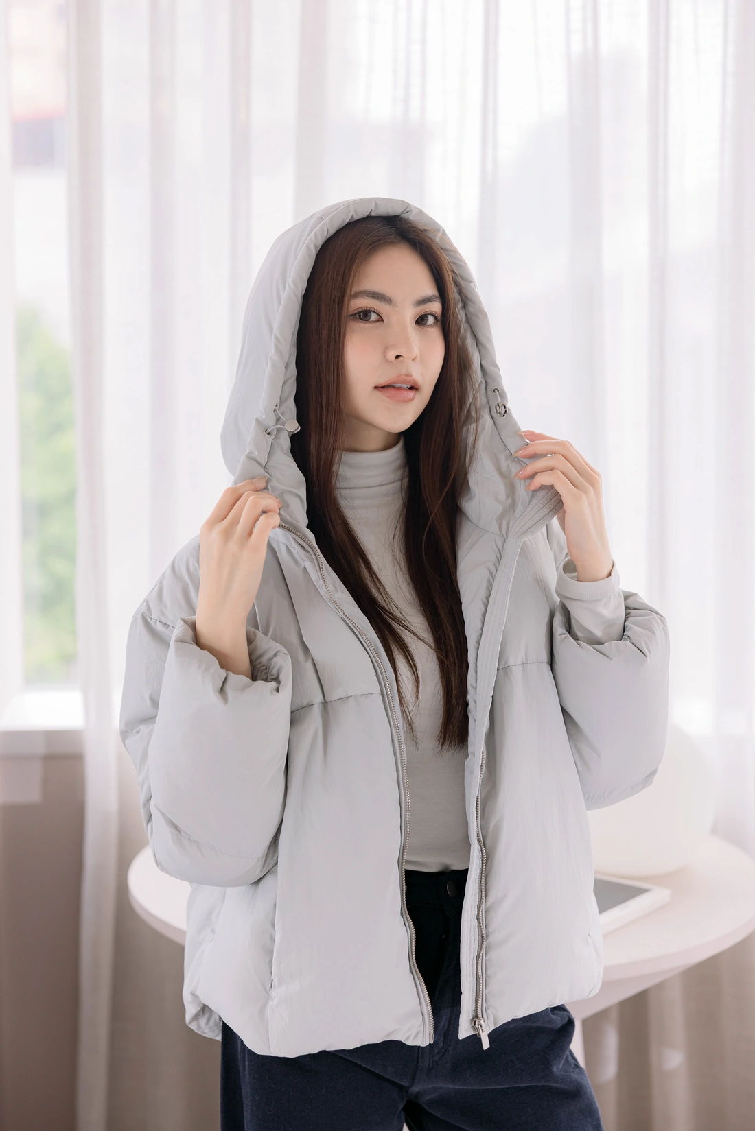 連帽造型/下襬可調節縮口設計