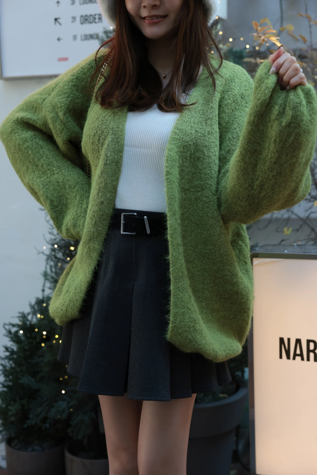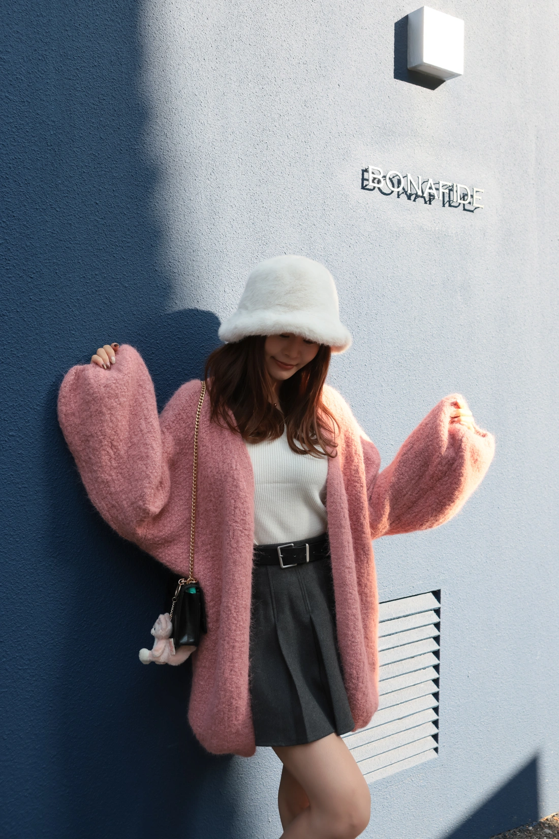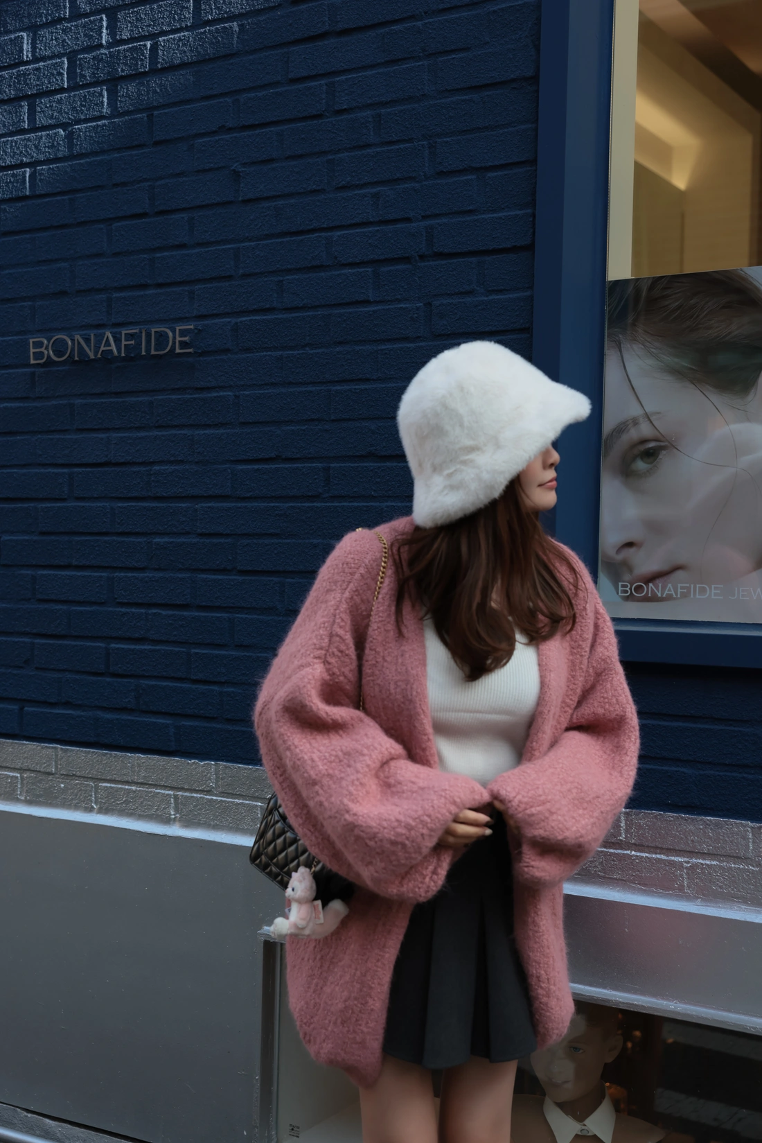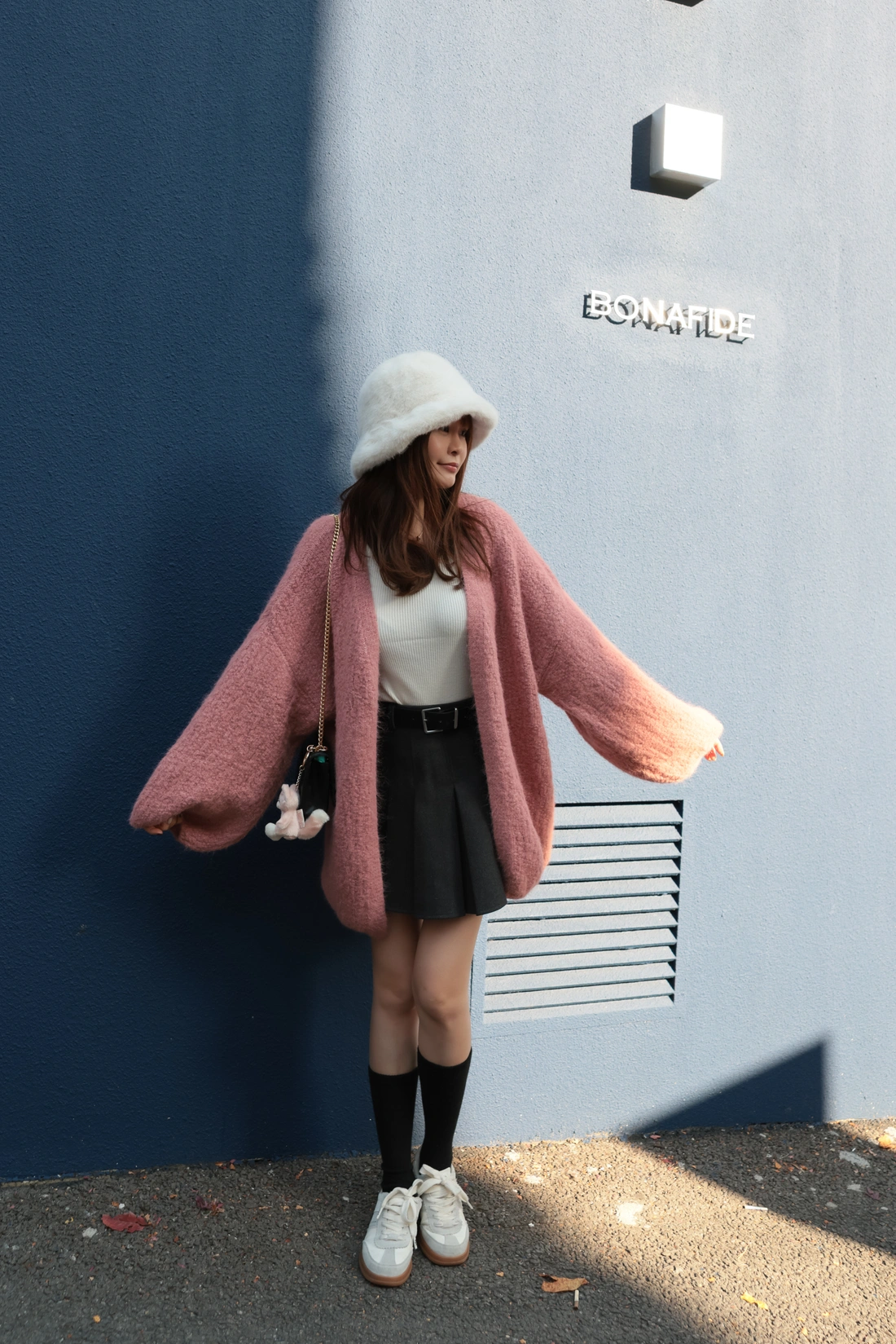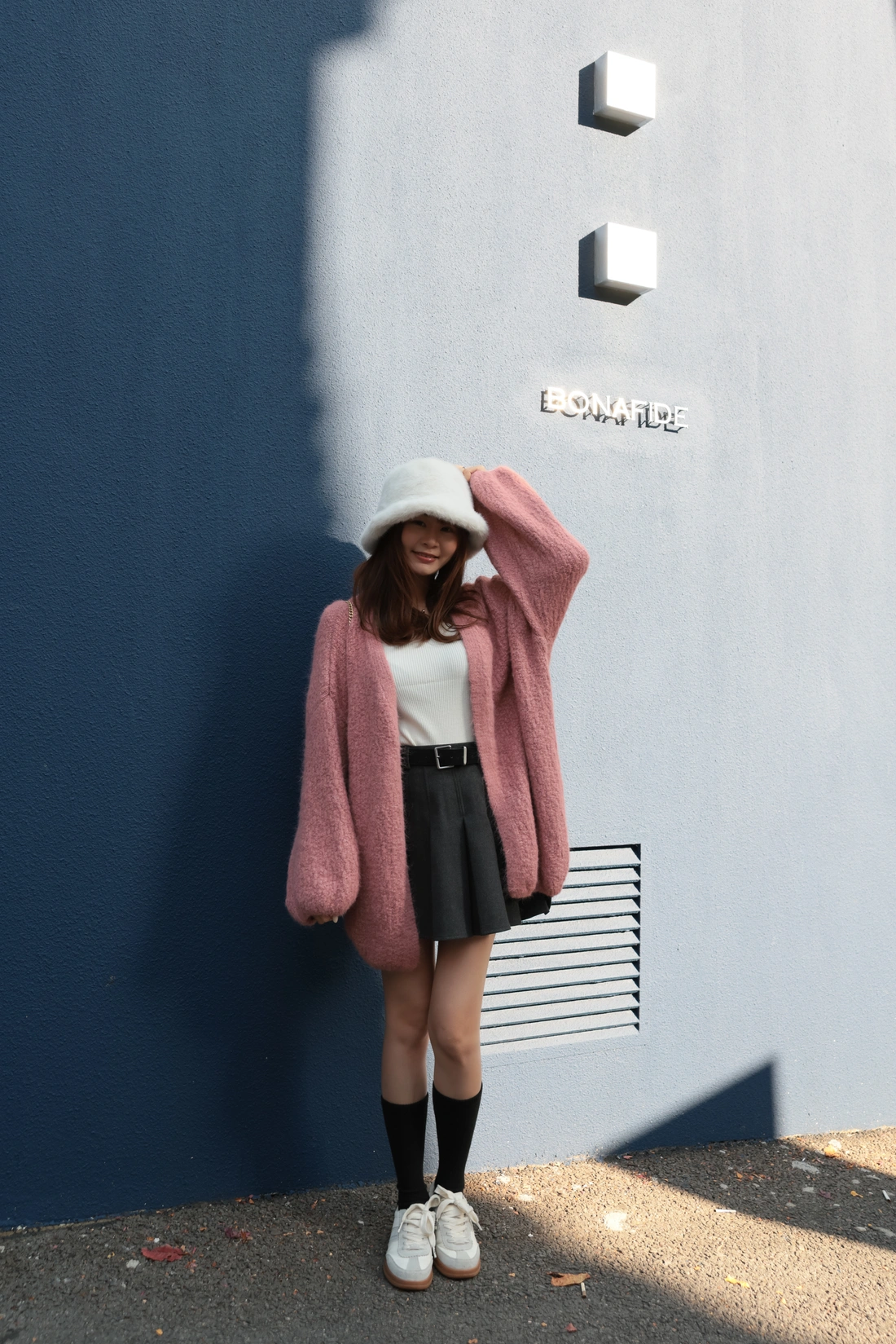 無肩線設計外套/袖口鬆緊設計/混色毛料設計