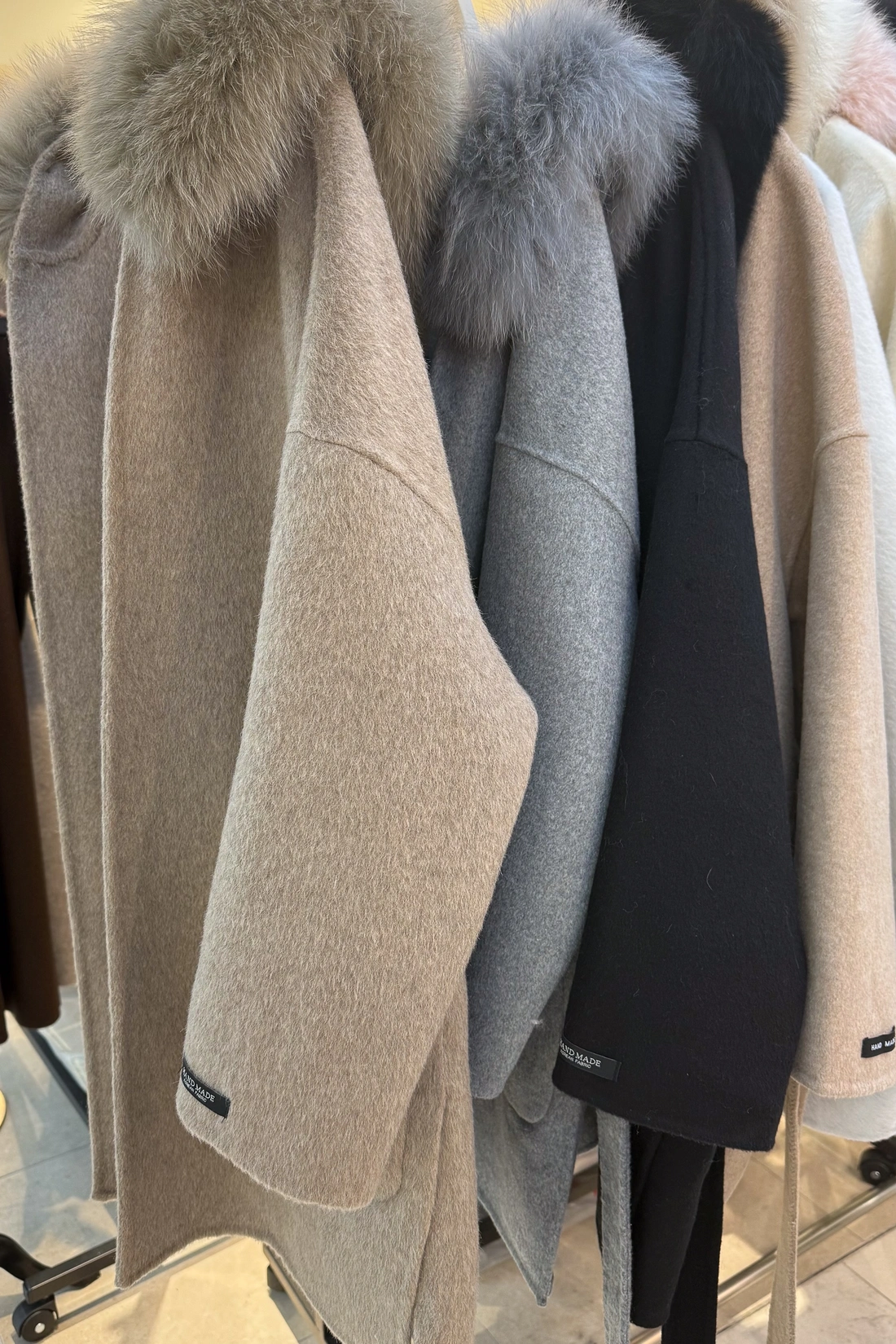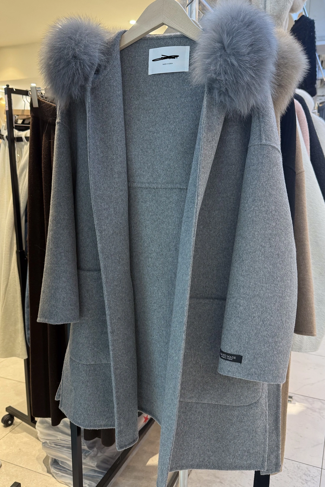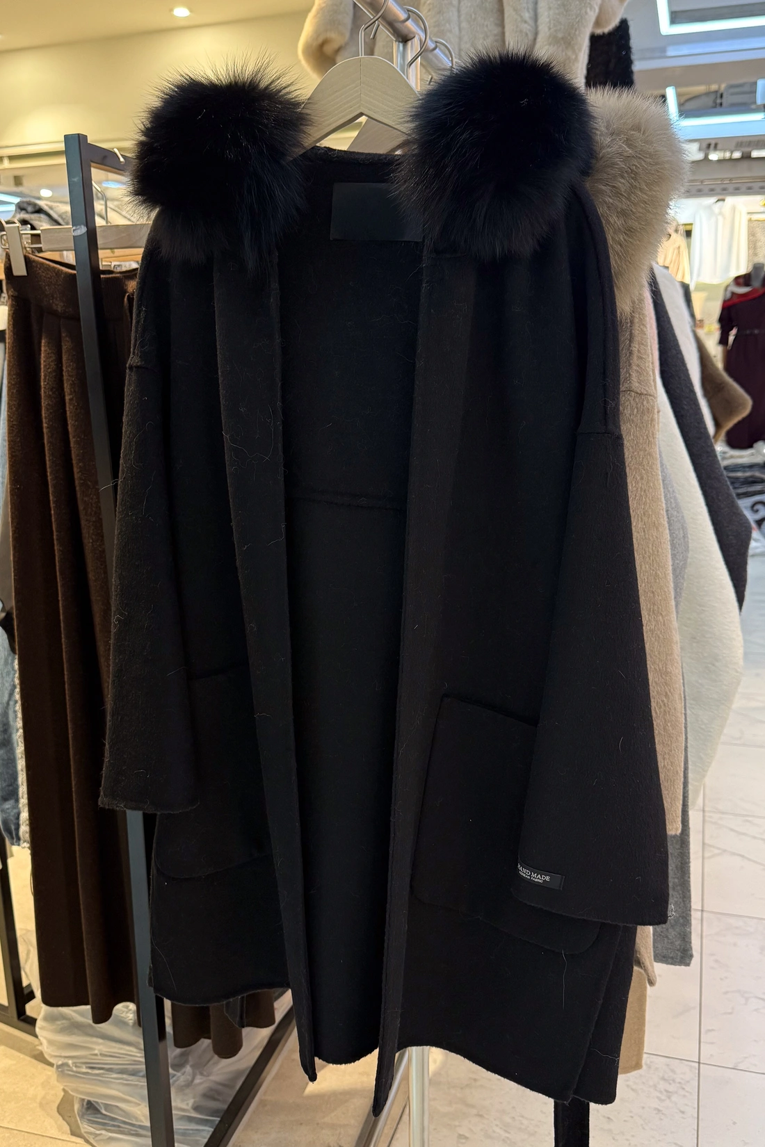 正韓製 貴氣名品100%手工羊毛狐狸毛領大衣(可拆)