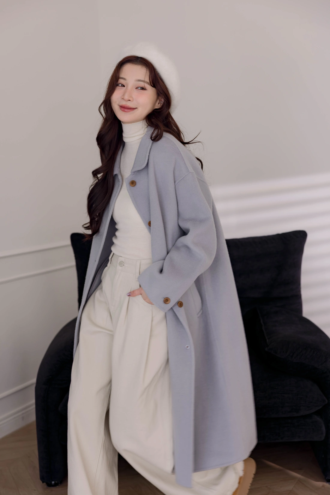 手袖鈕扣造型/適合各種身形/柔軟又保暖