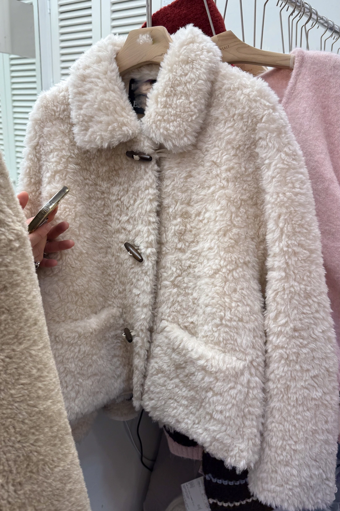 表面毛絨且柔軟/牛角扣設計/韓系溫柔感