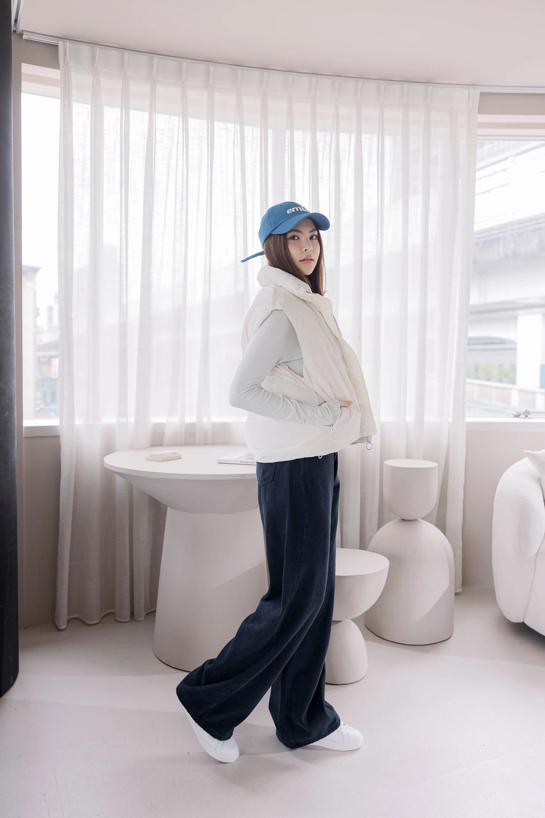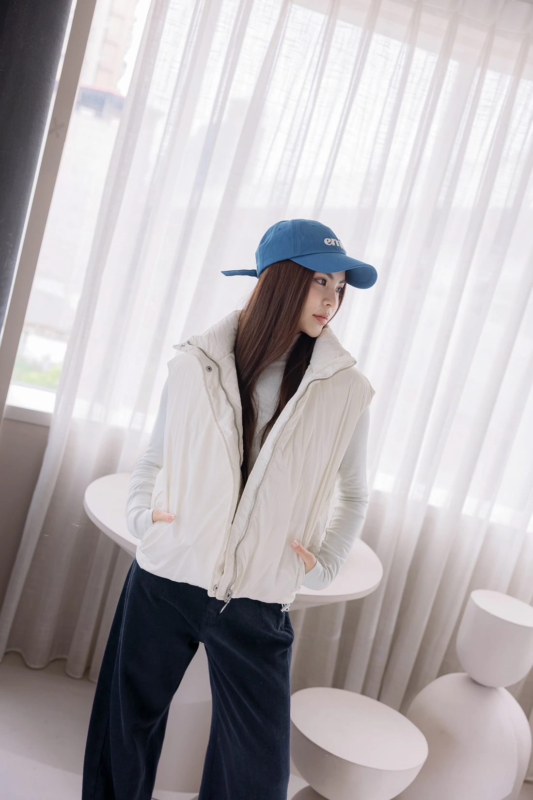 內拉環抽繩設計/輕量鴨絨背心/非常適合購入