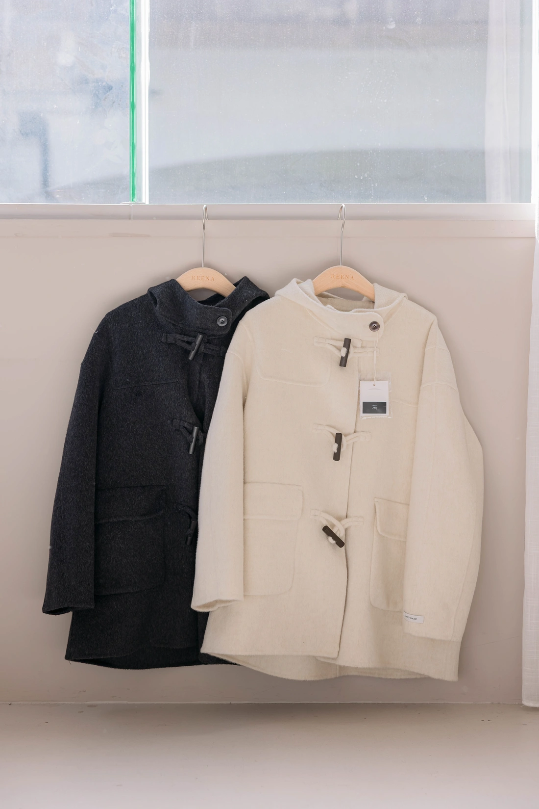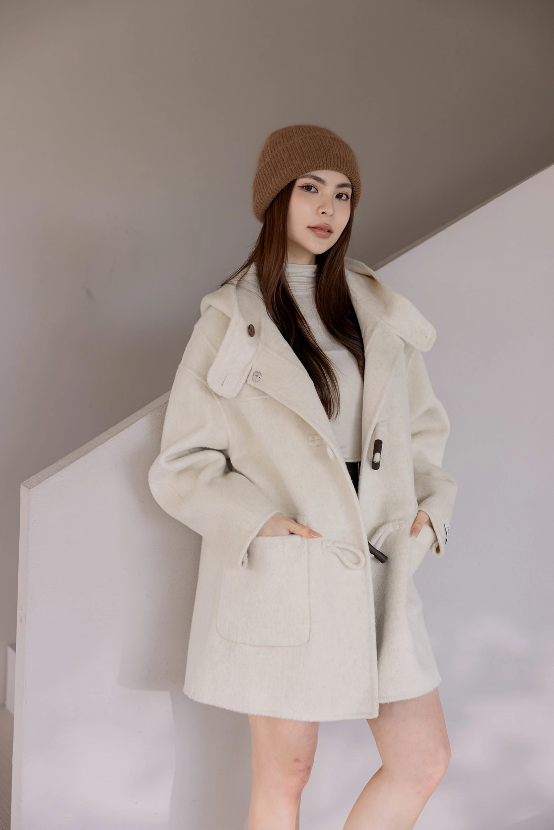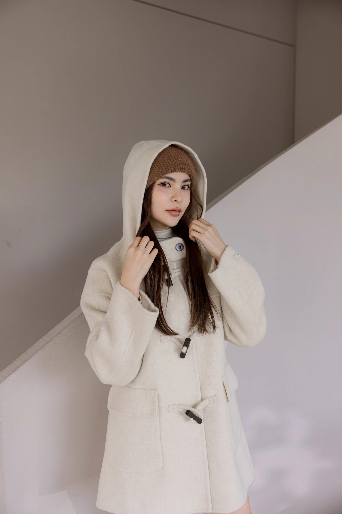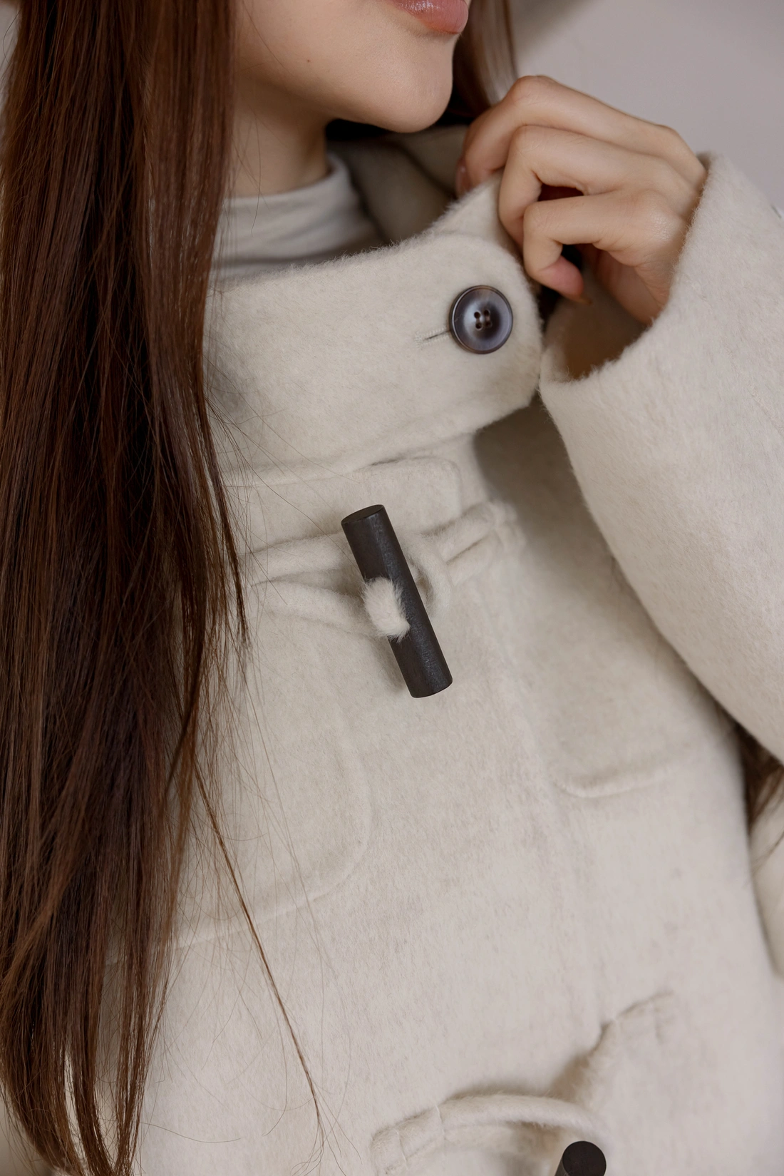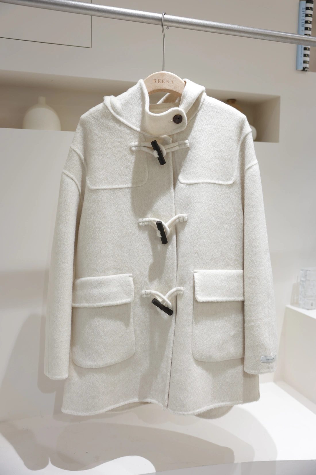 牛角釦設計外套/保暖羊毛材質/連帽設計外套