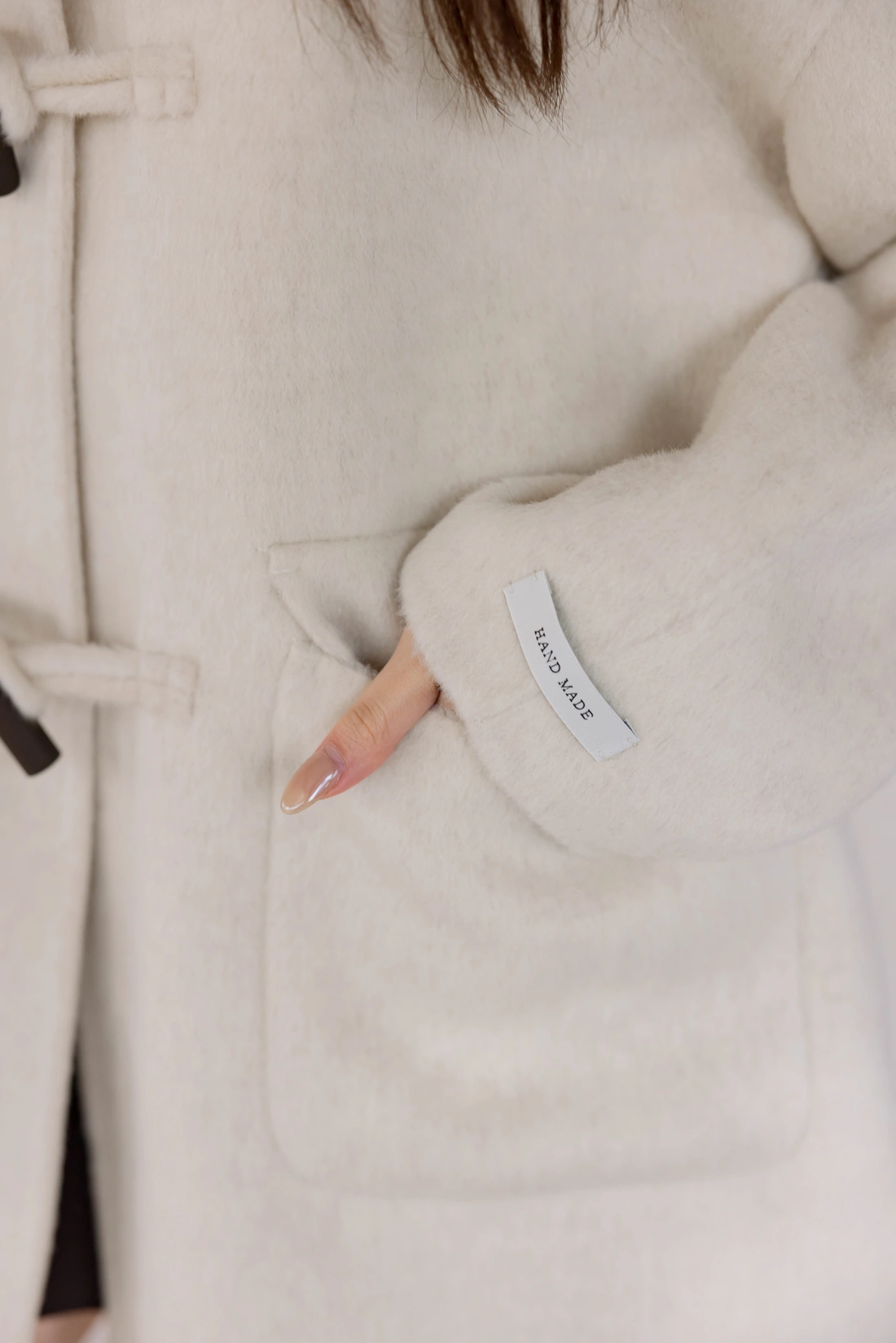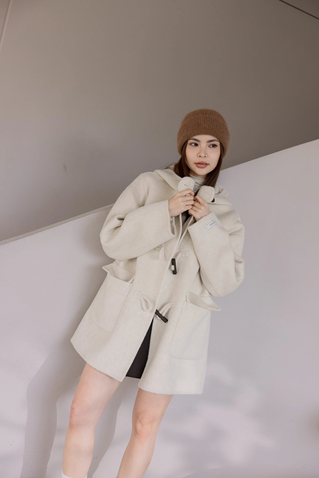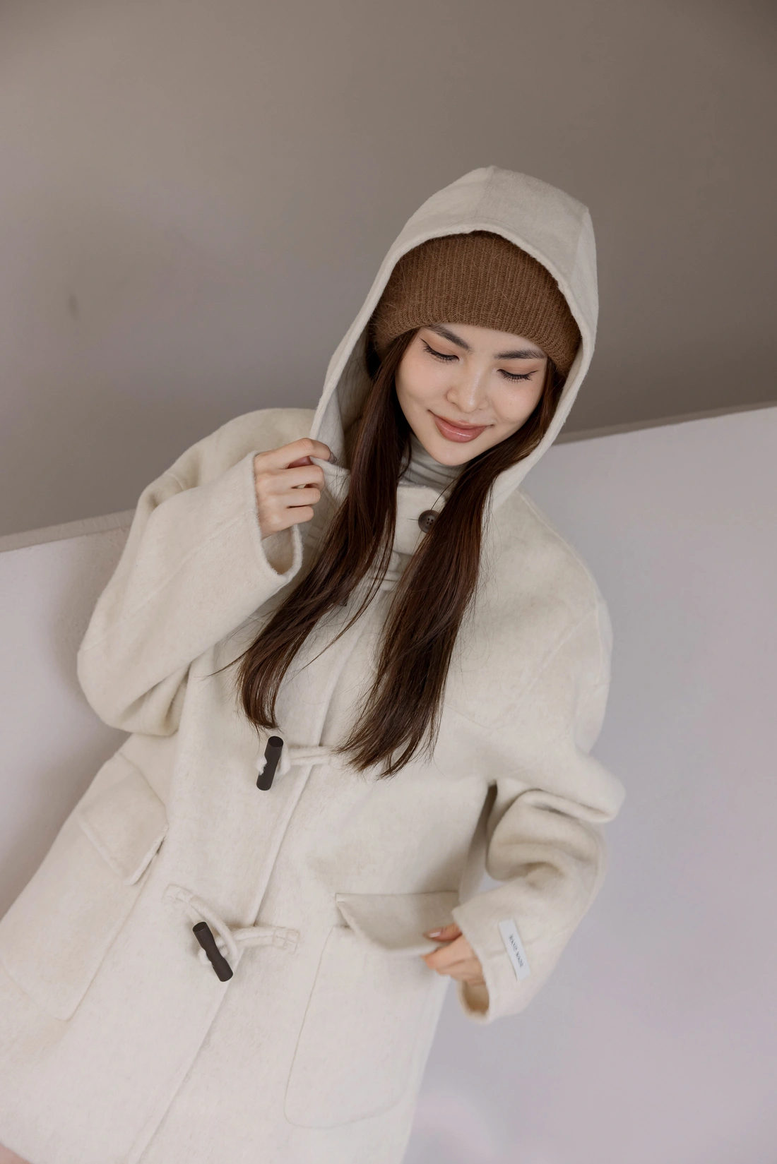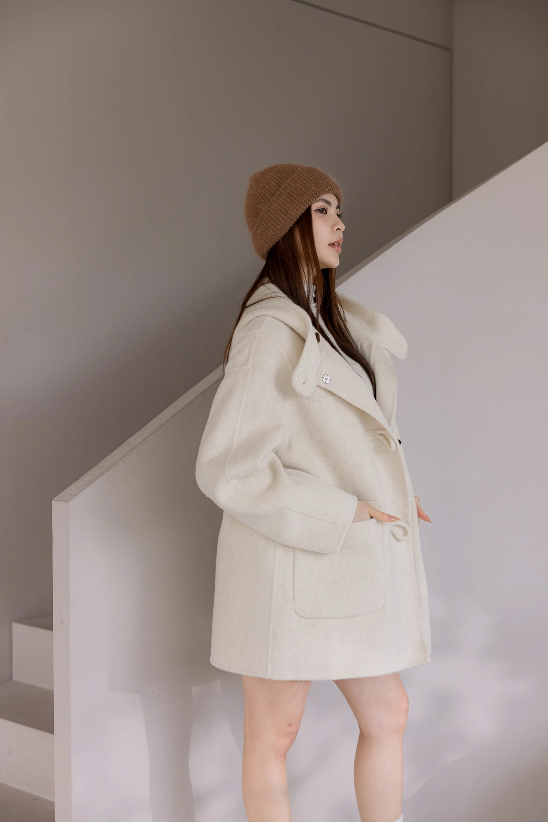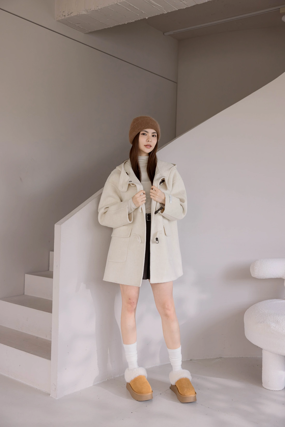 牛角釦設計外套/保暖羊毛材質/連帽設計外套