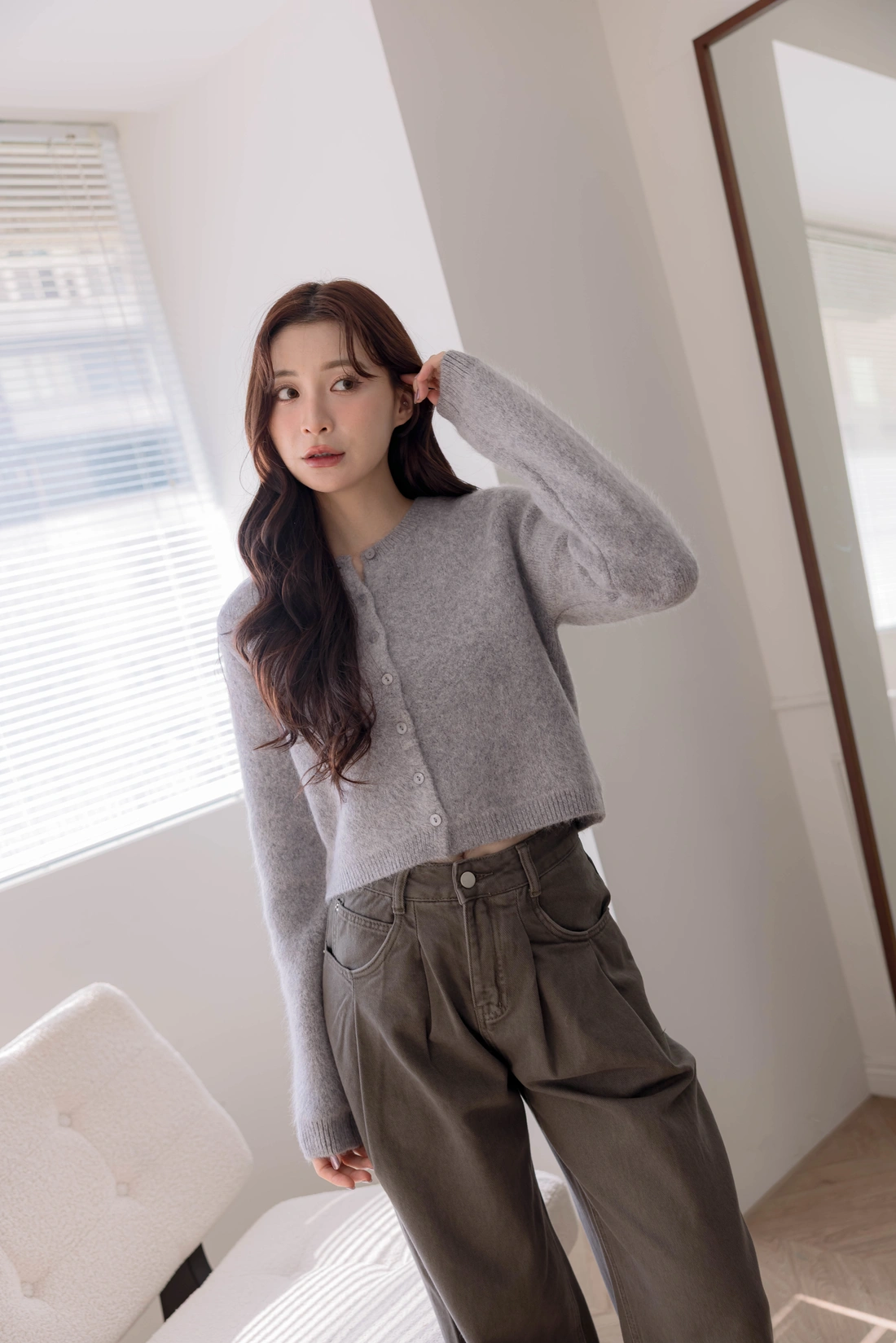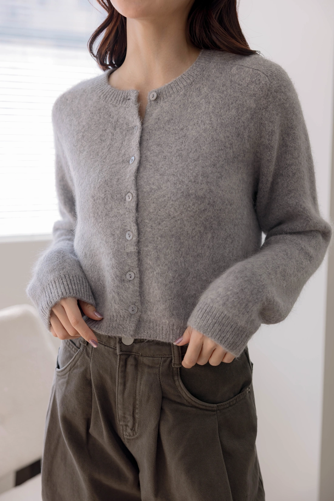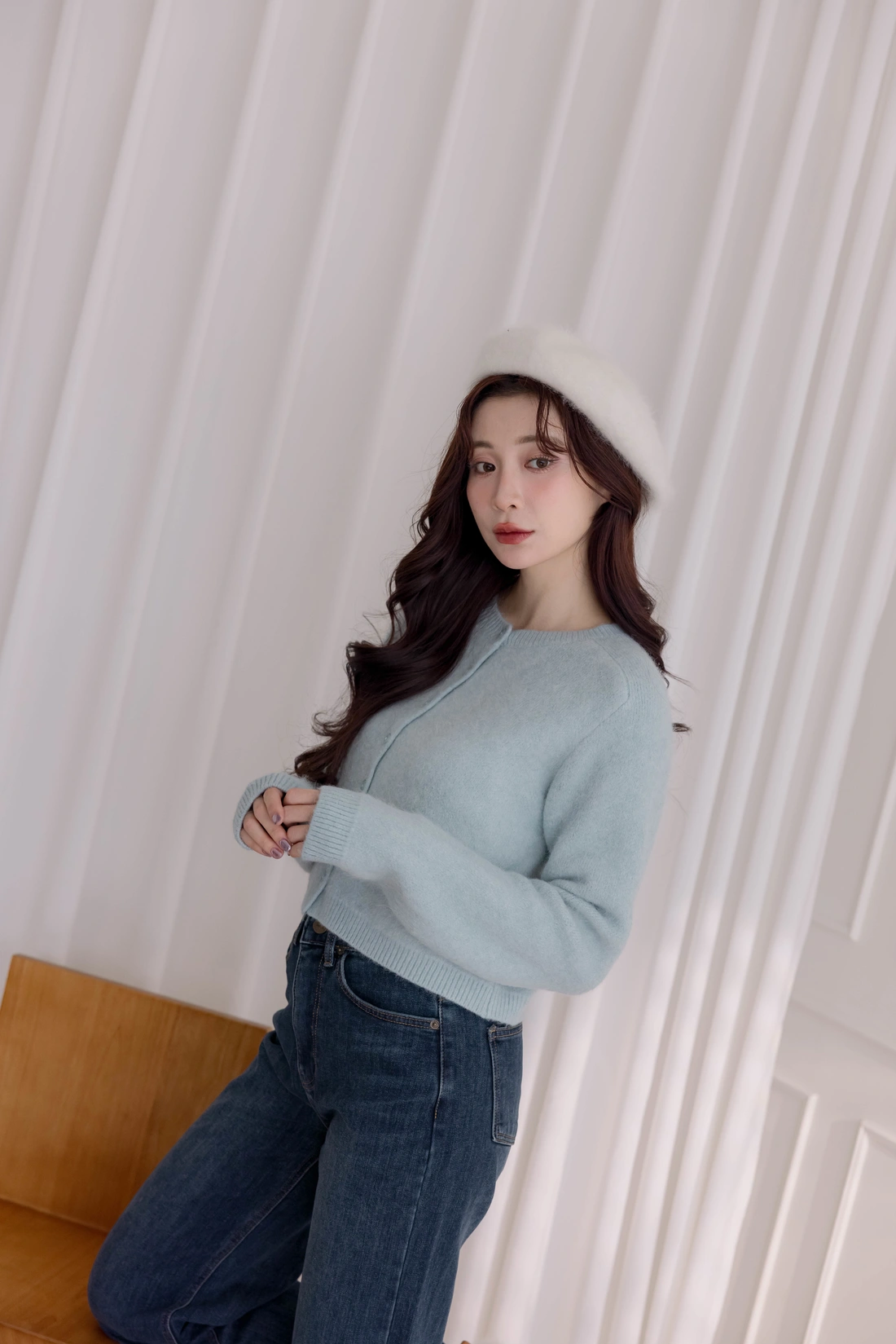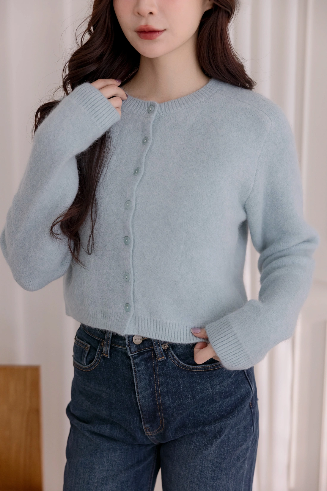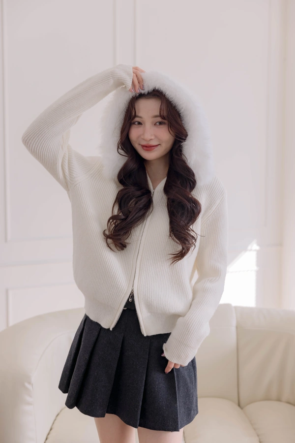 舒適狐狸毛設計/短版衣長可以當上衣也可以當外套/同色排釦設計