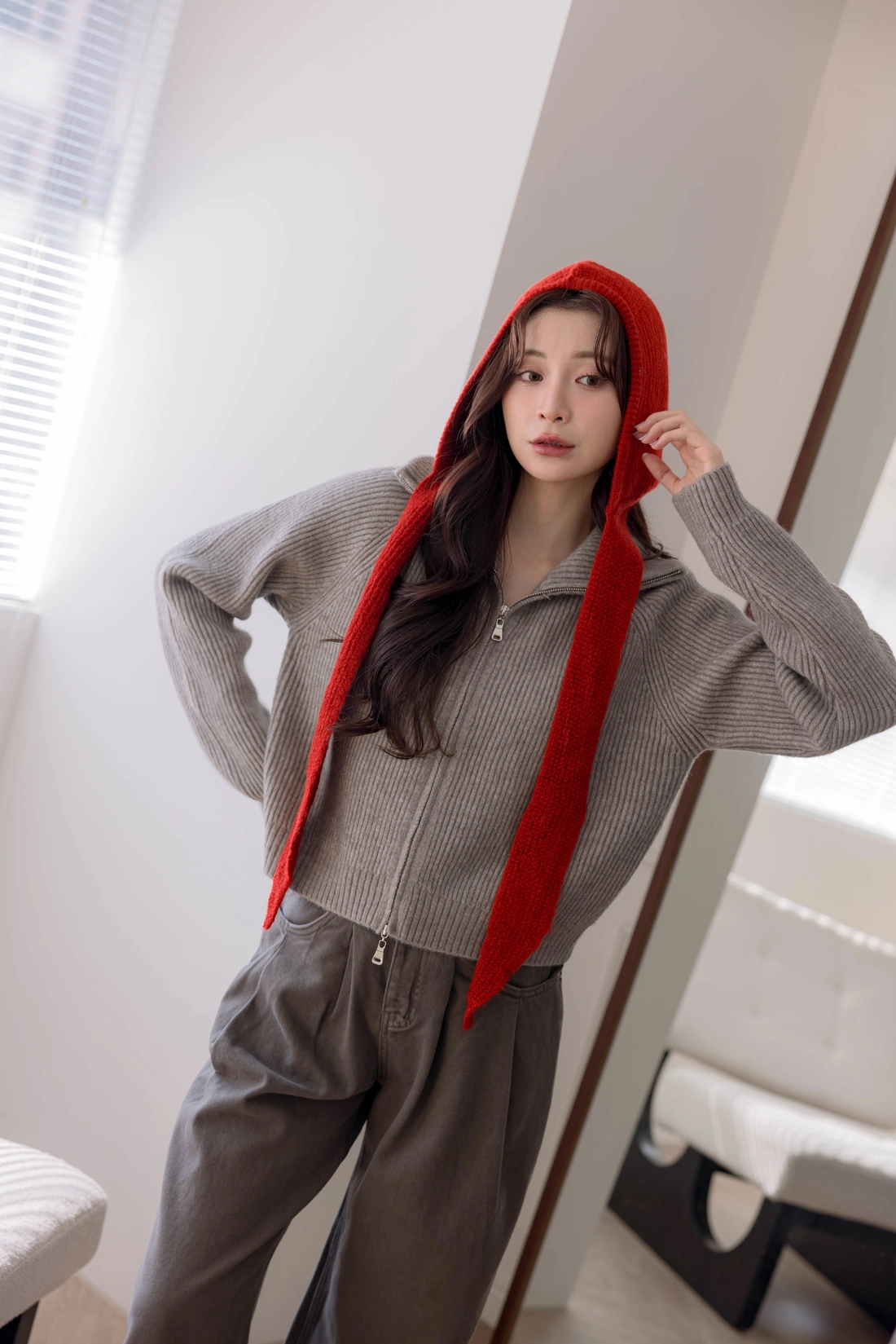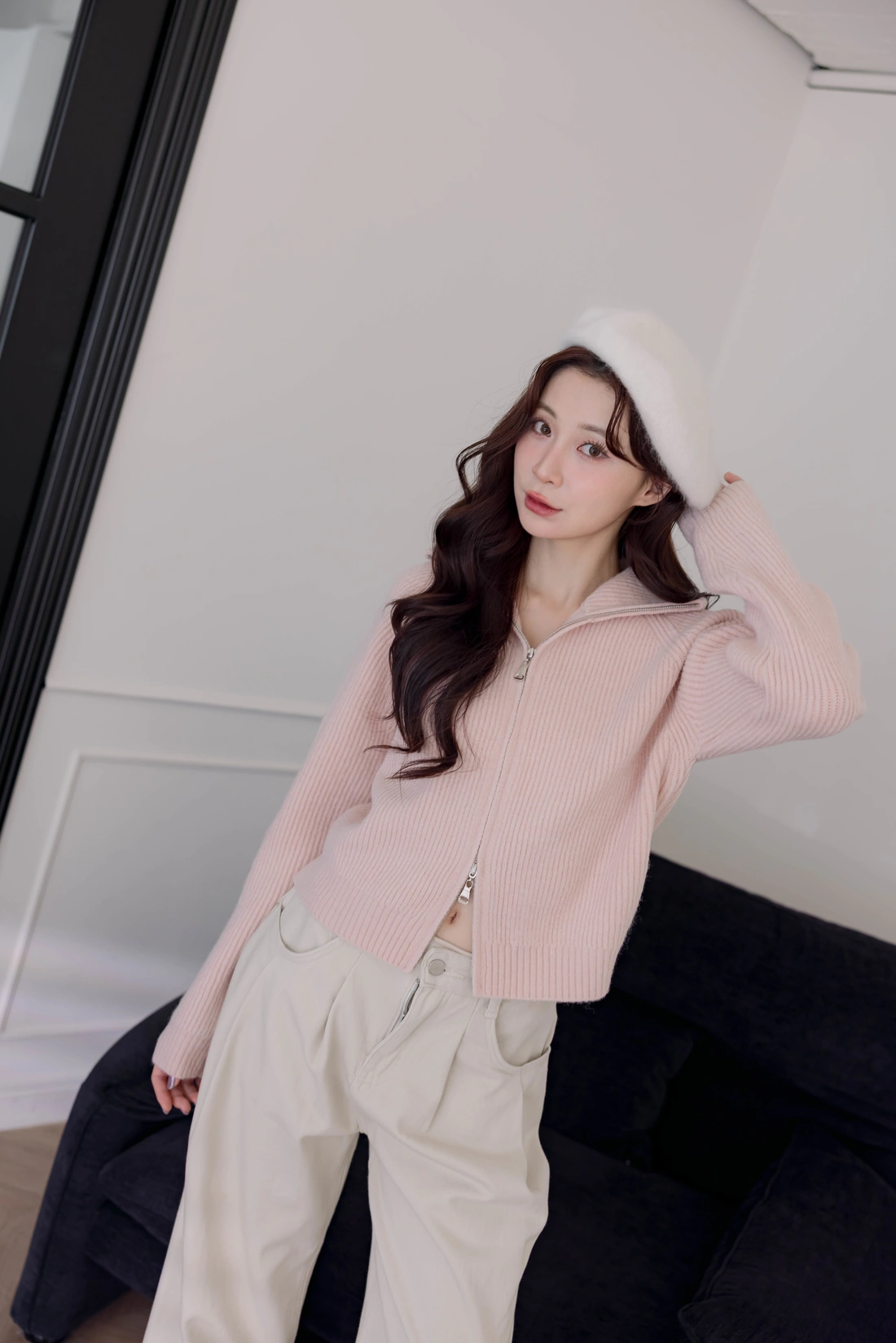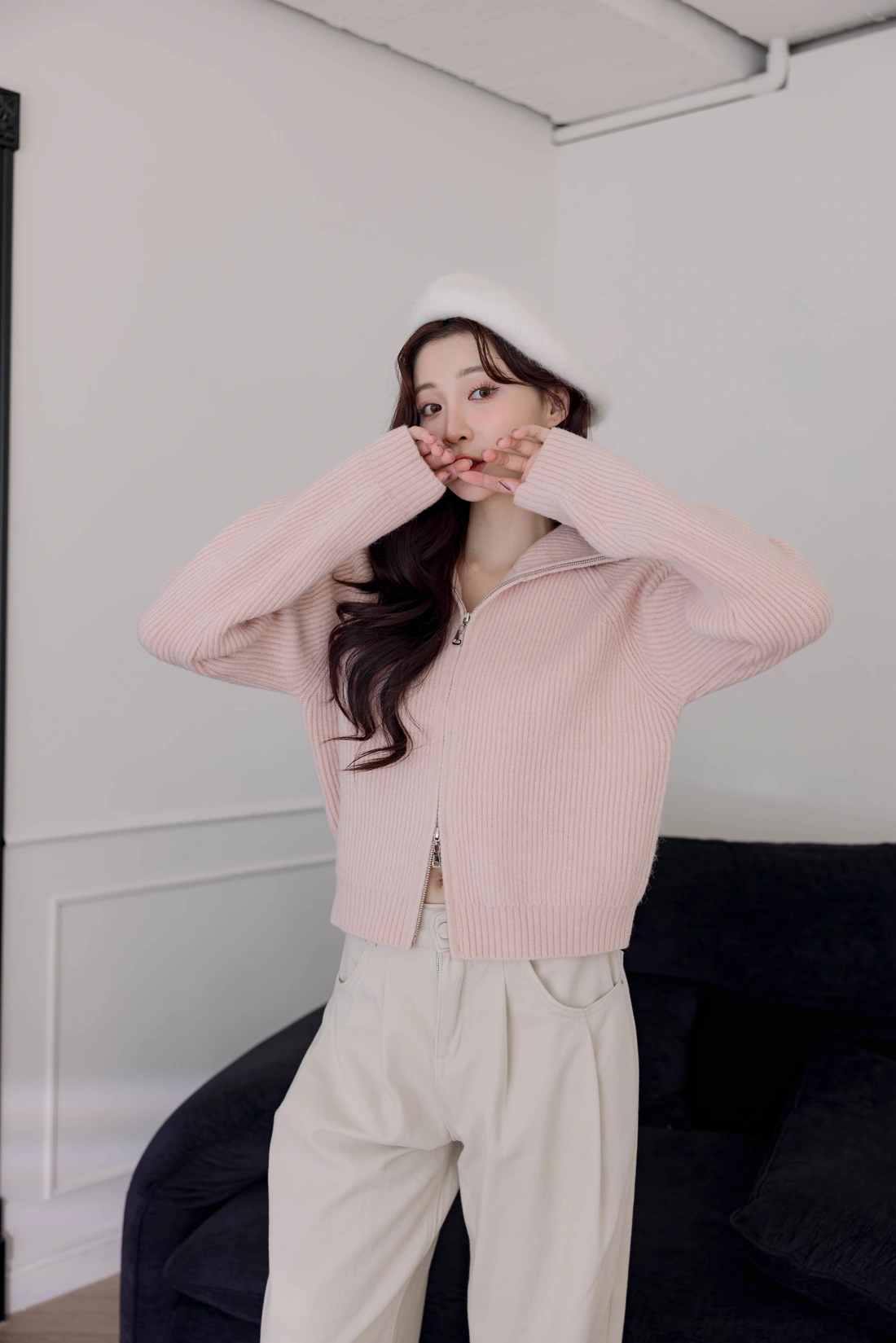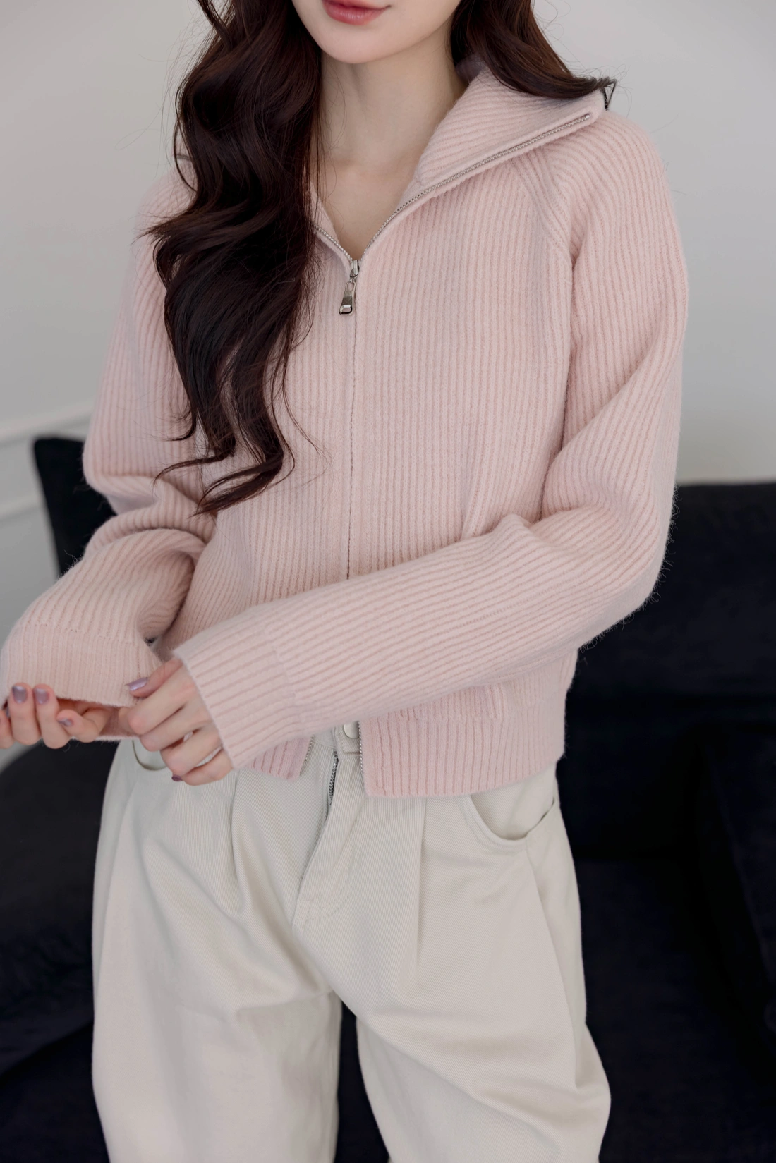 正韓製 翻領雙拉鍊毛衣外套