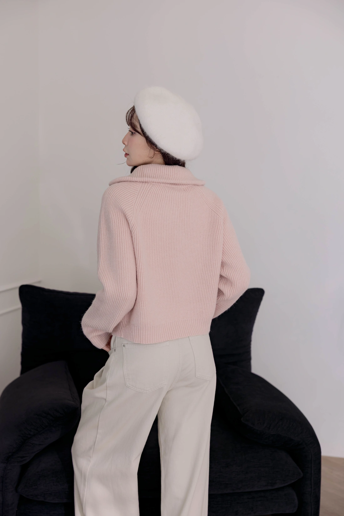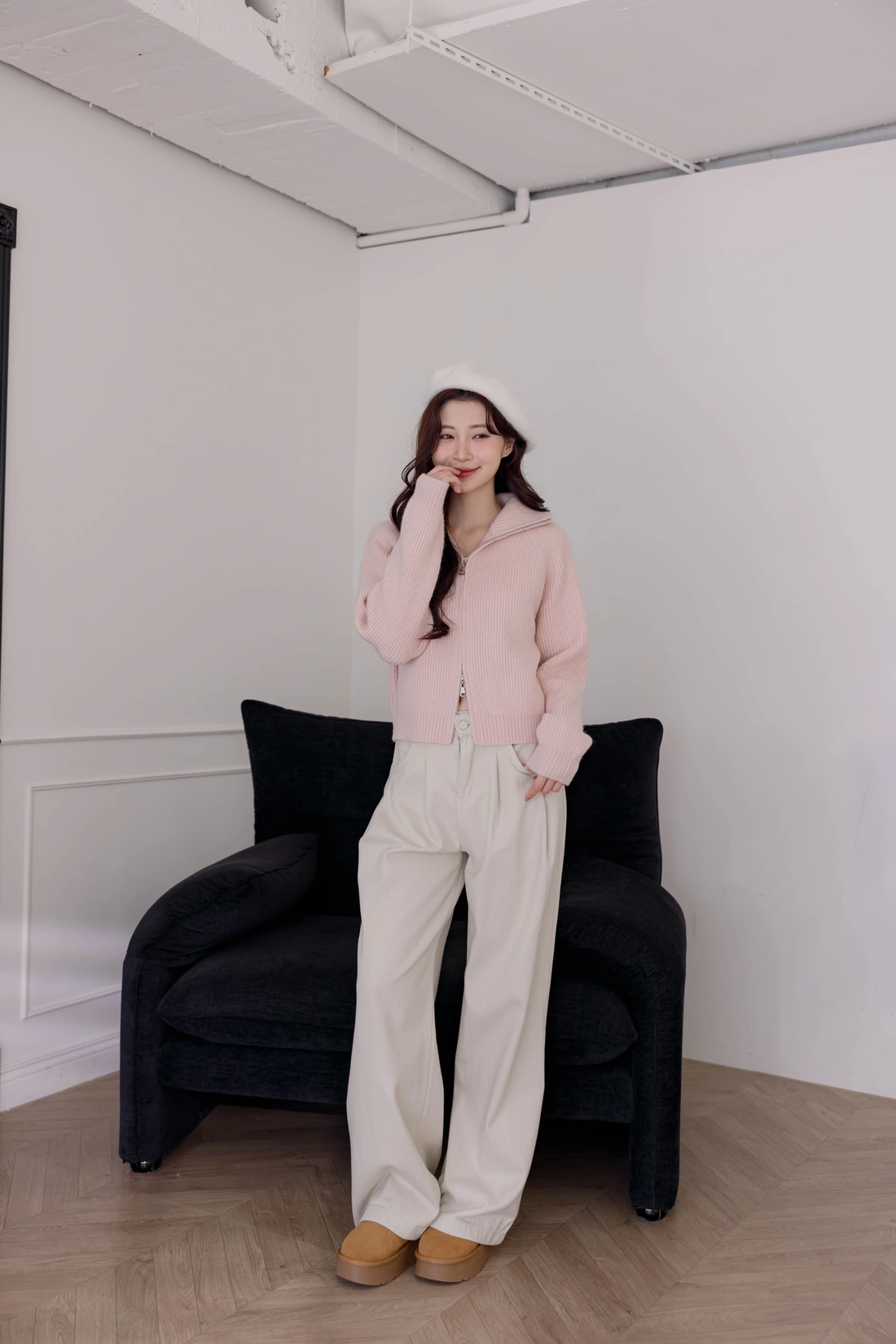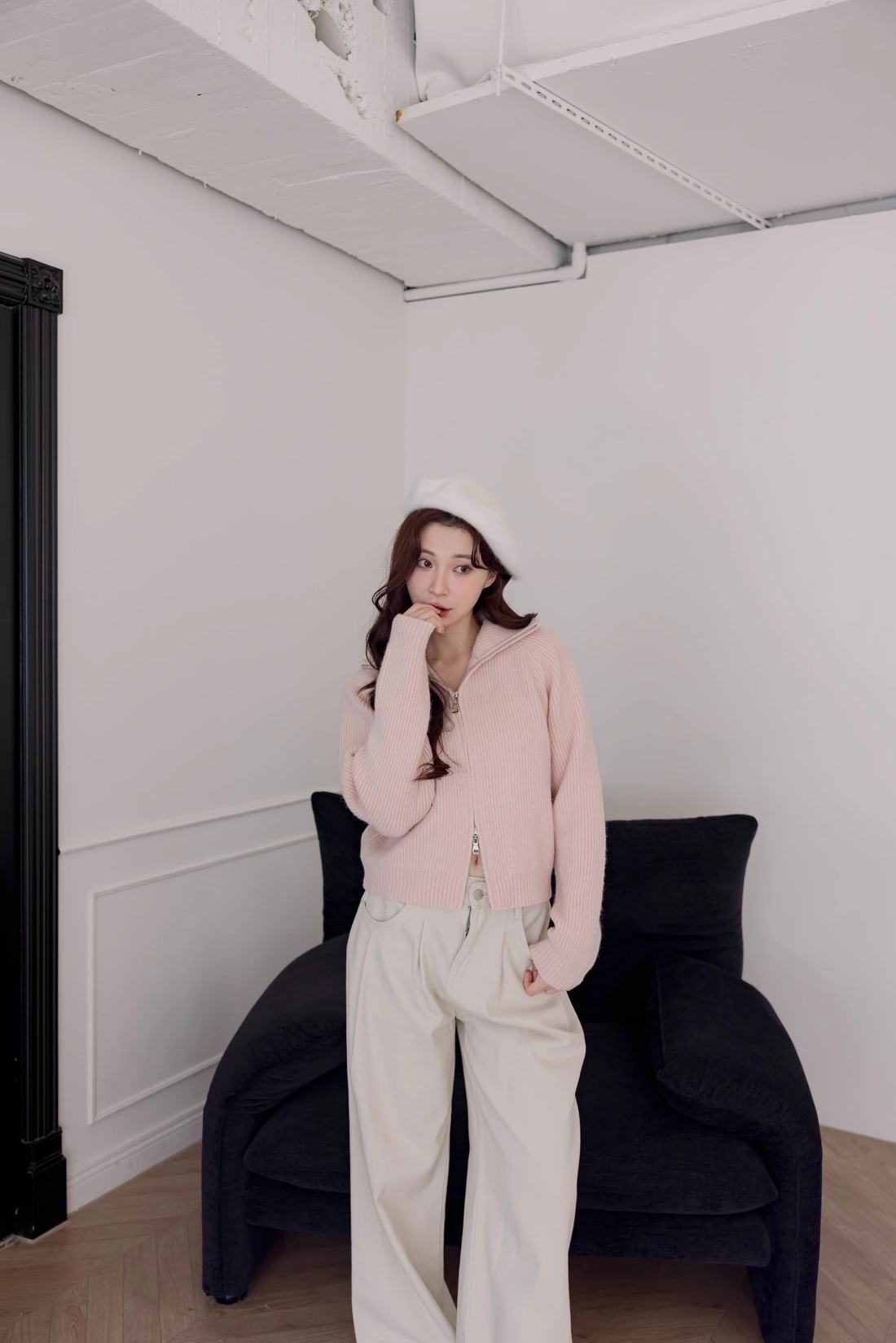 正韓製 翻領雙拉鍊毛衣外套