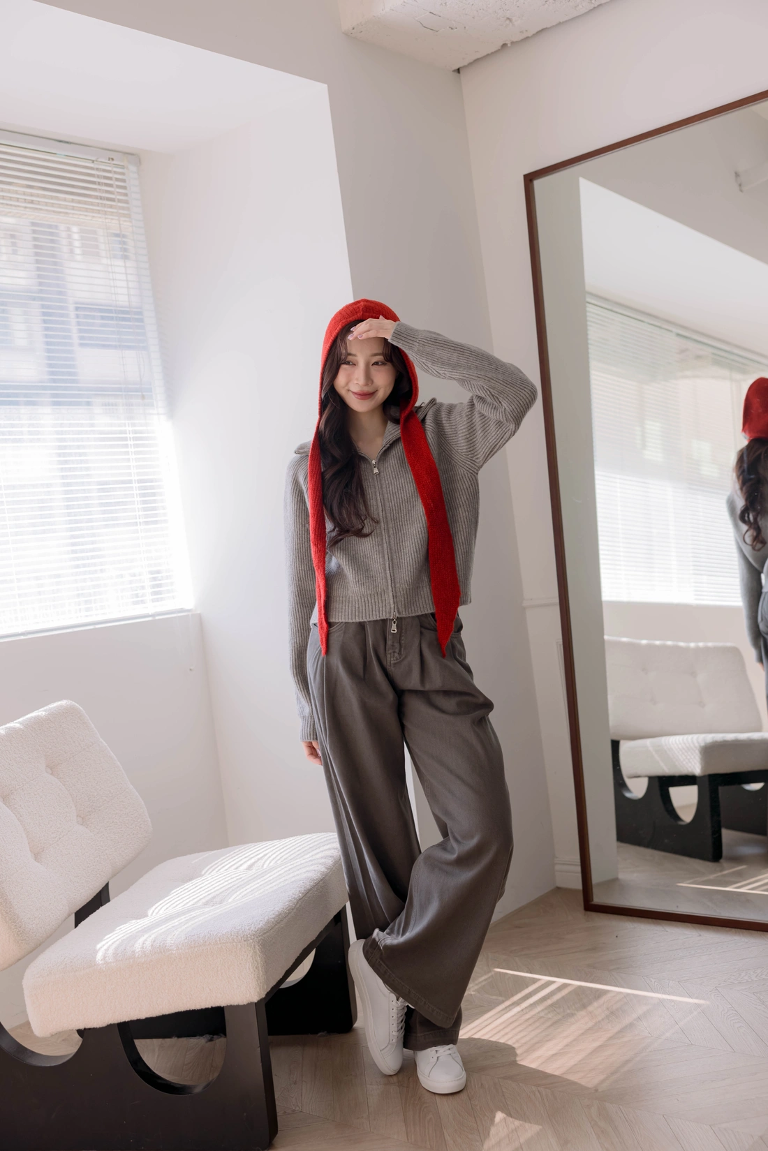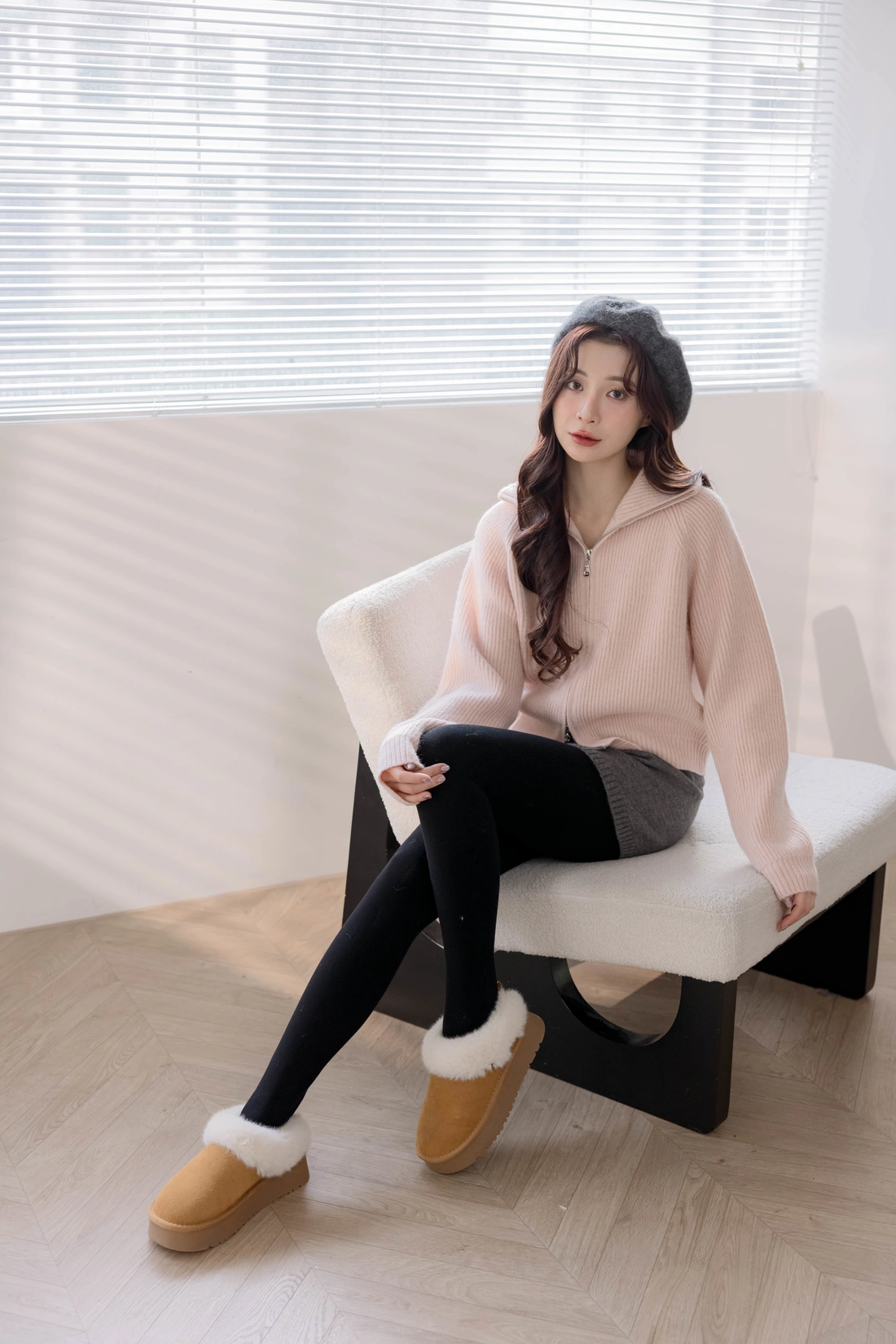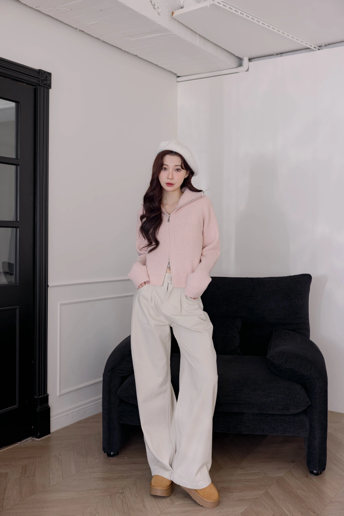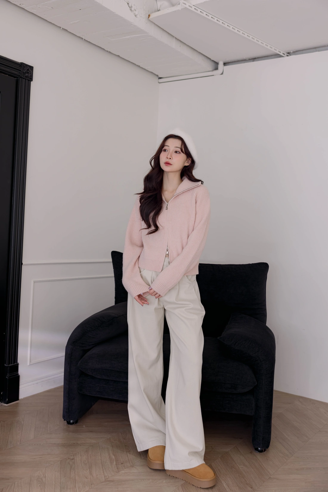 正韓製 翻領雙拉鍊毛衣外套