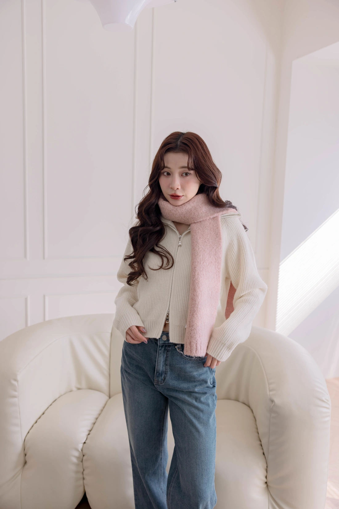 雙頭拉鍊設計/翻領設計外套/舒適針織材質