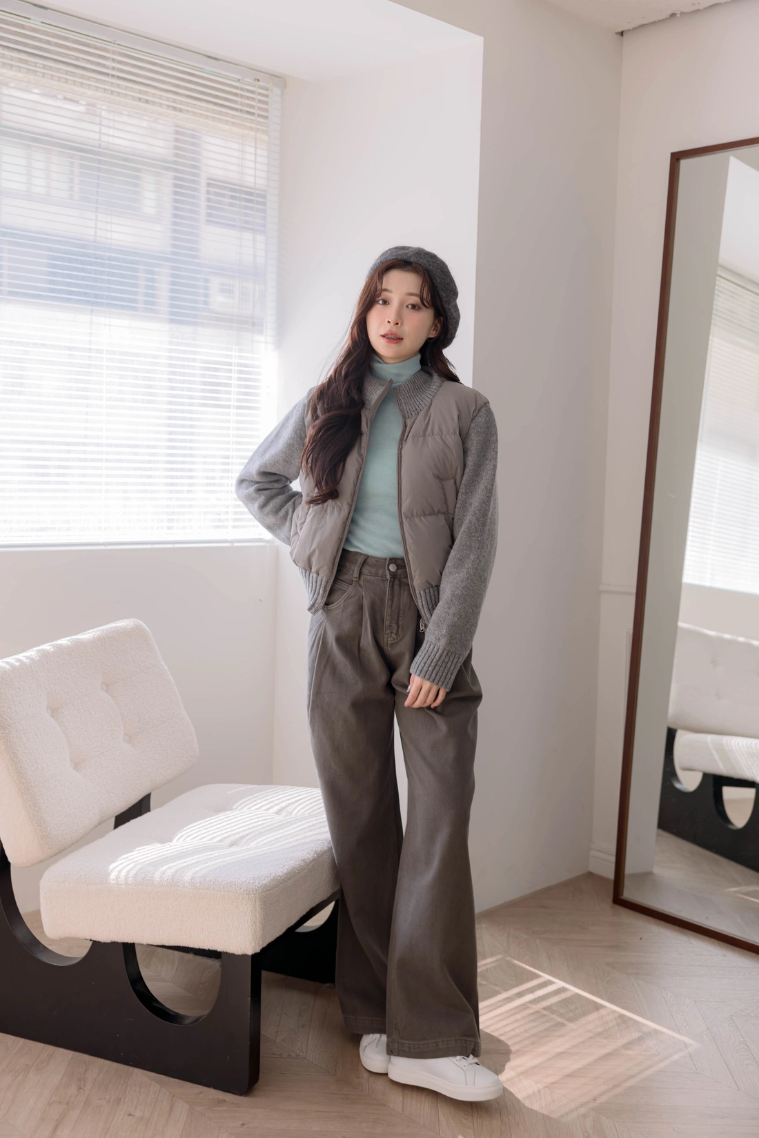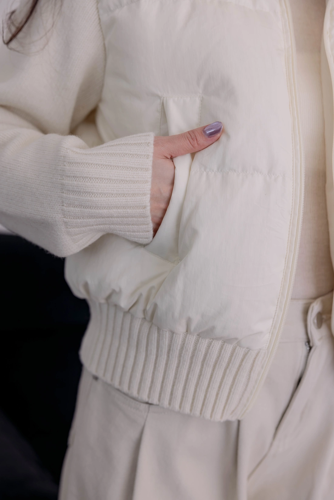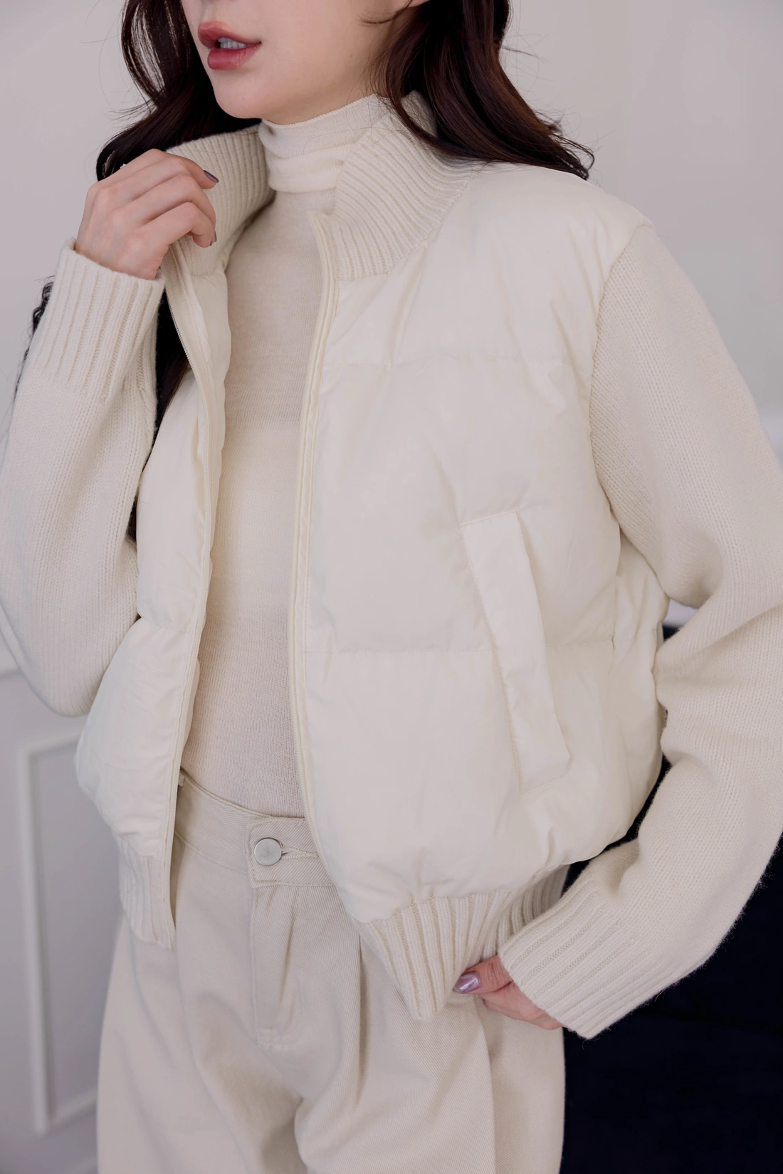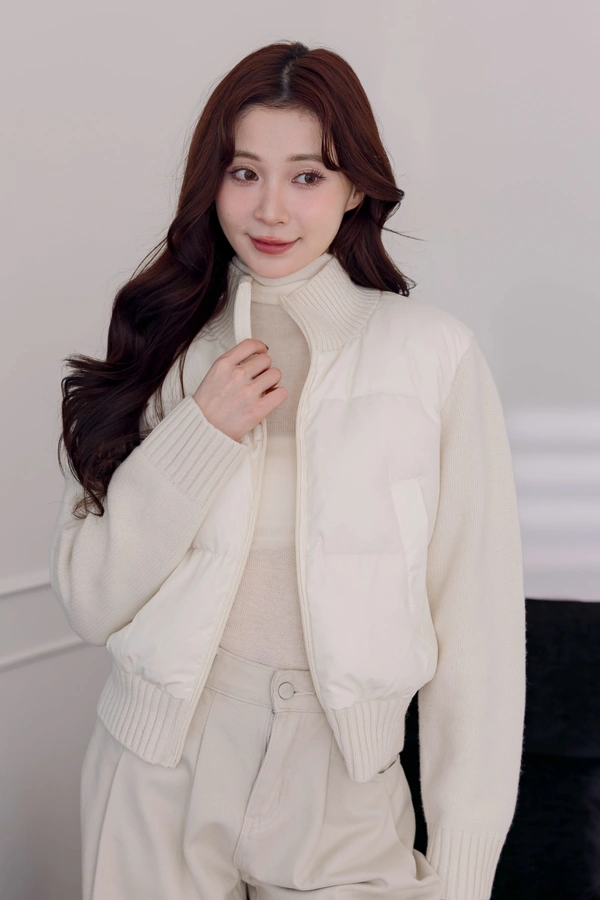 鴨絨拼接設計外套/雙口袋設計/率性風格非常時尚