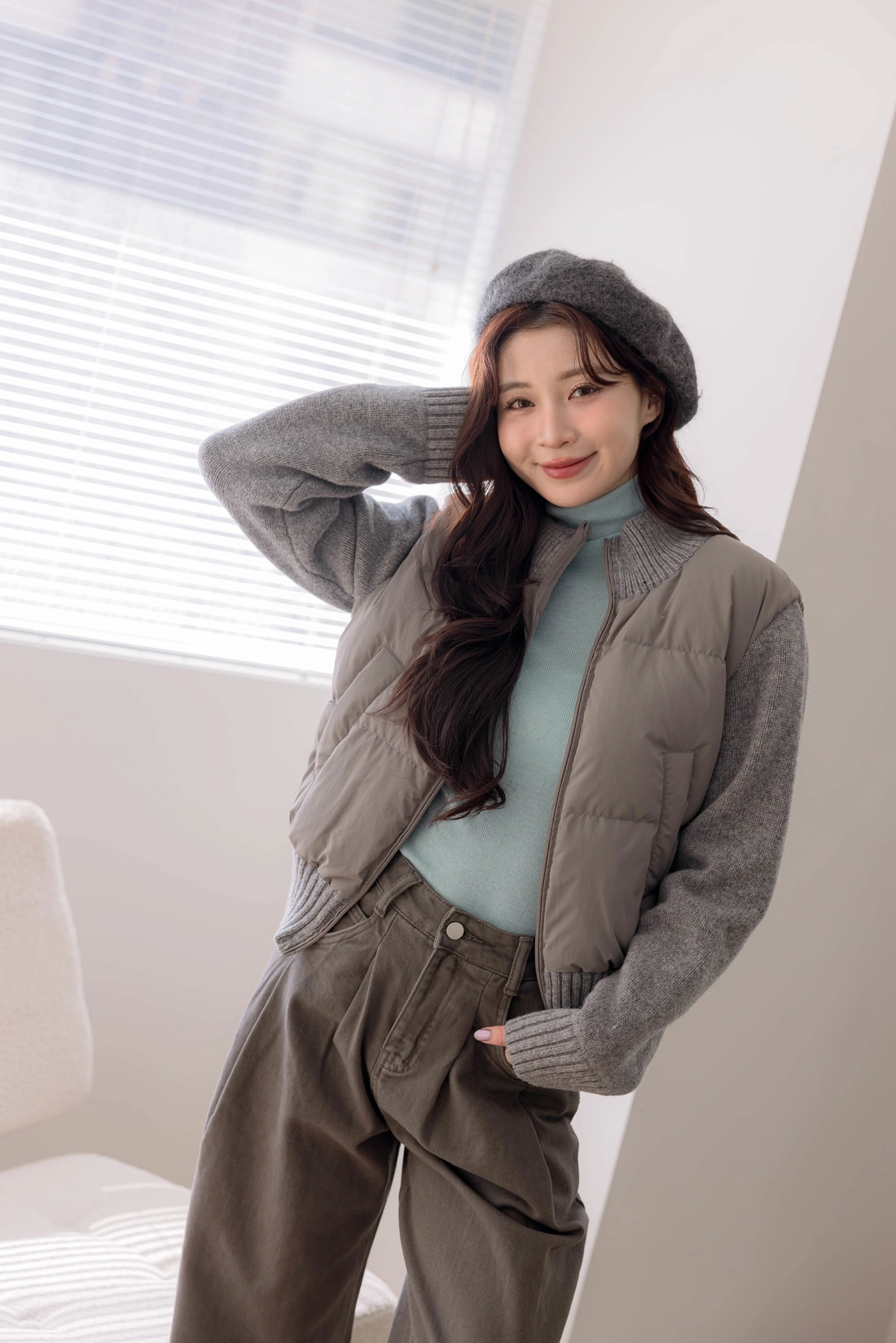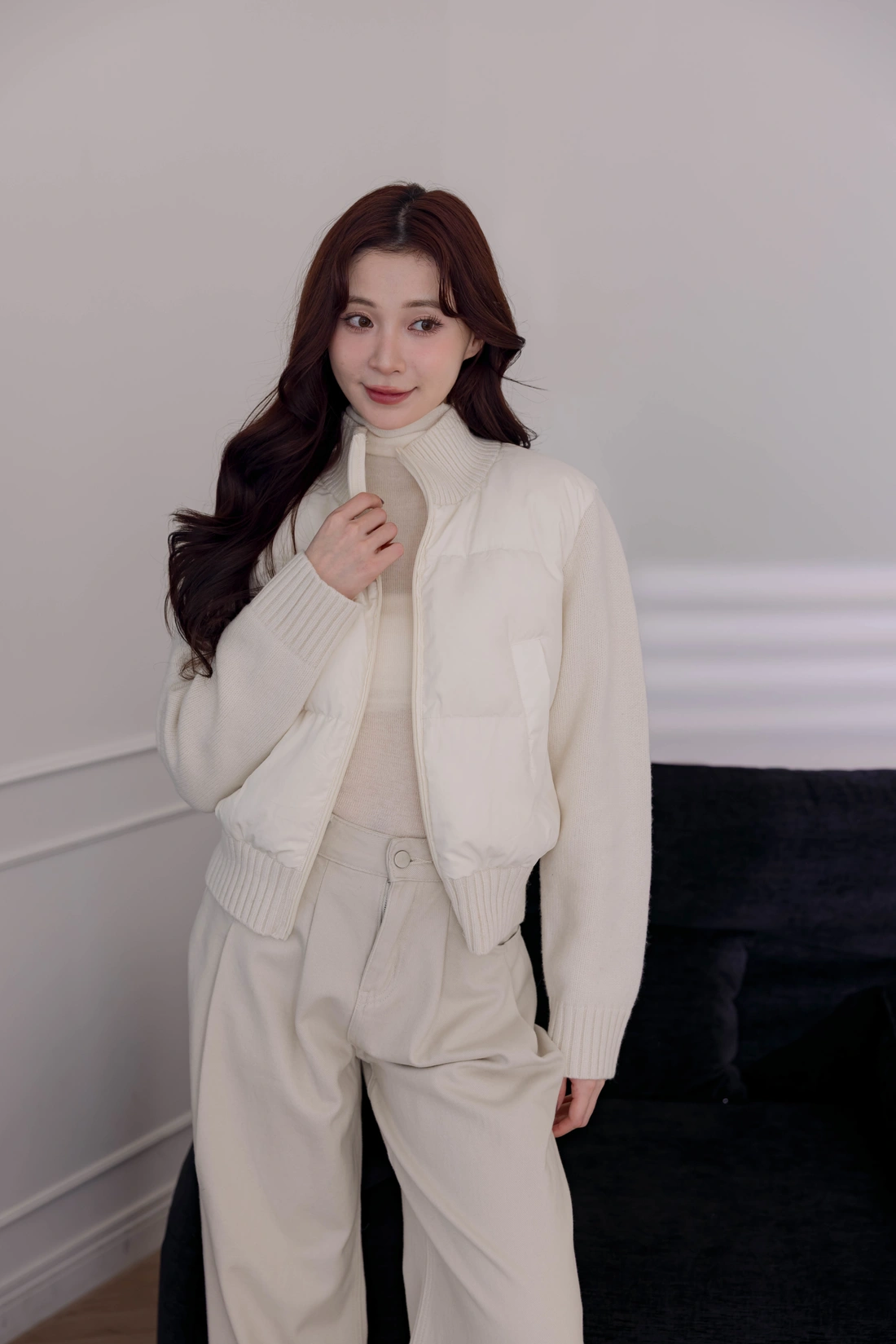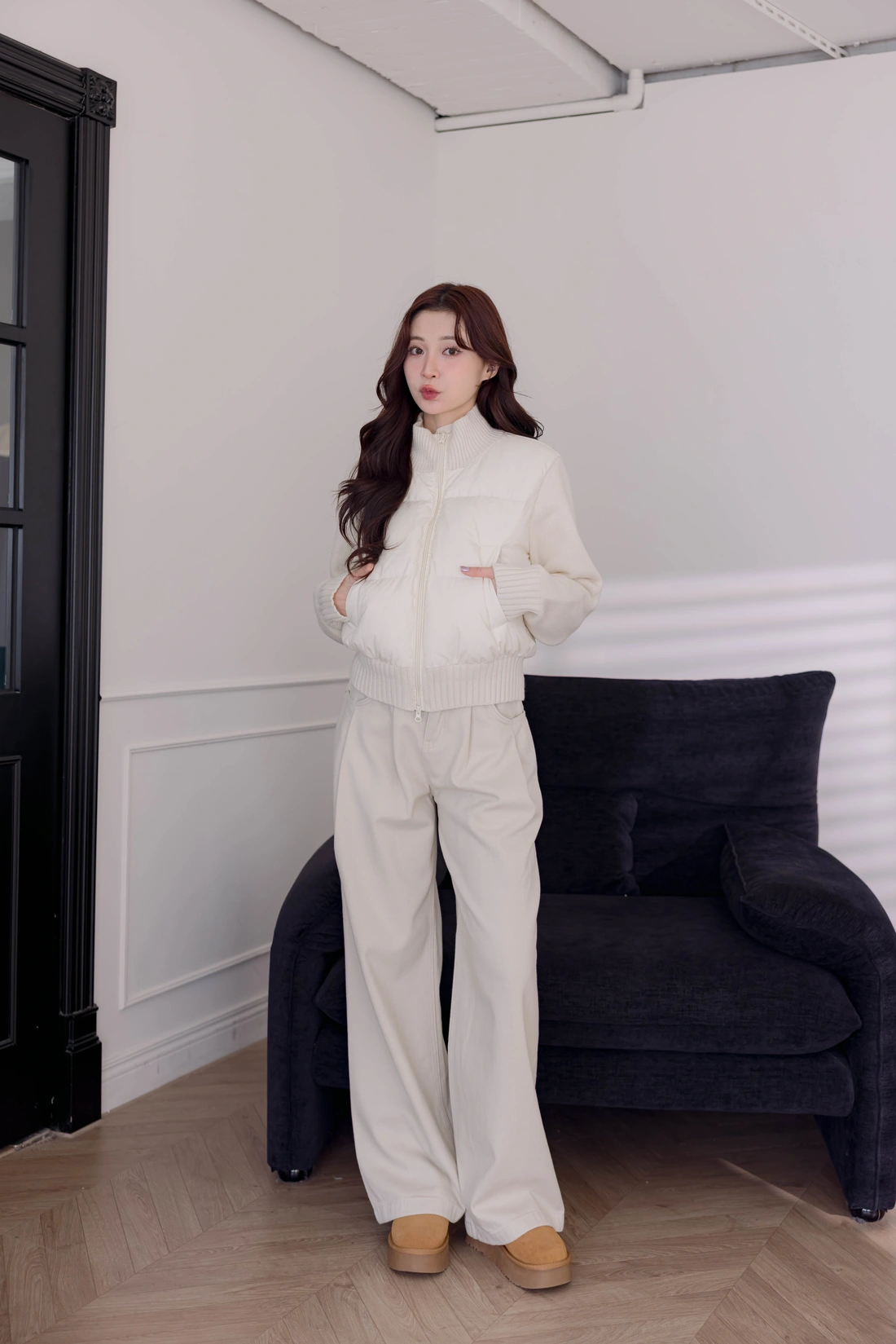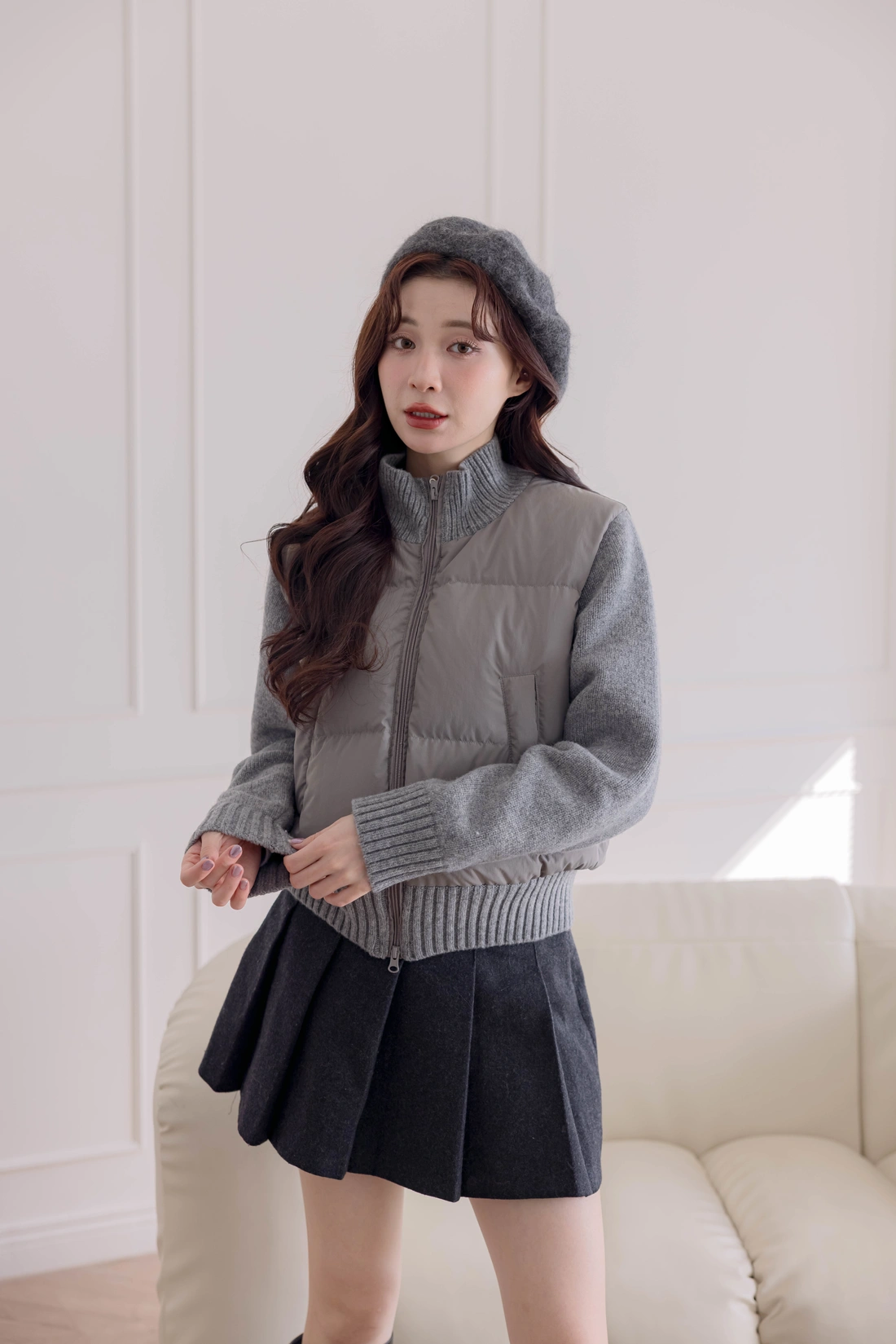 鴨絨拼接設計外套/雙口袋設計/率性風格非常時尚