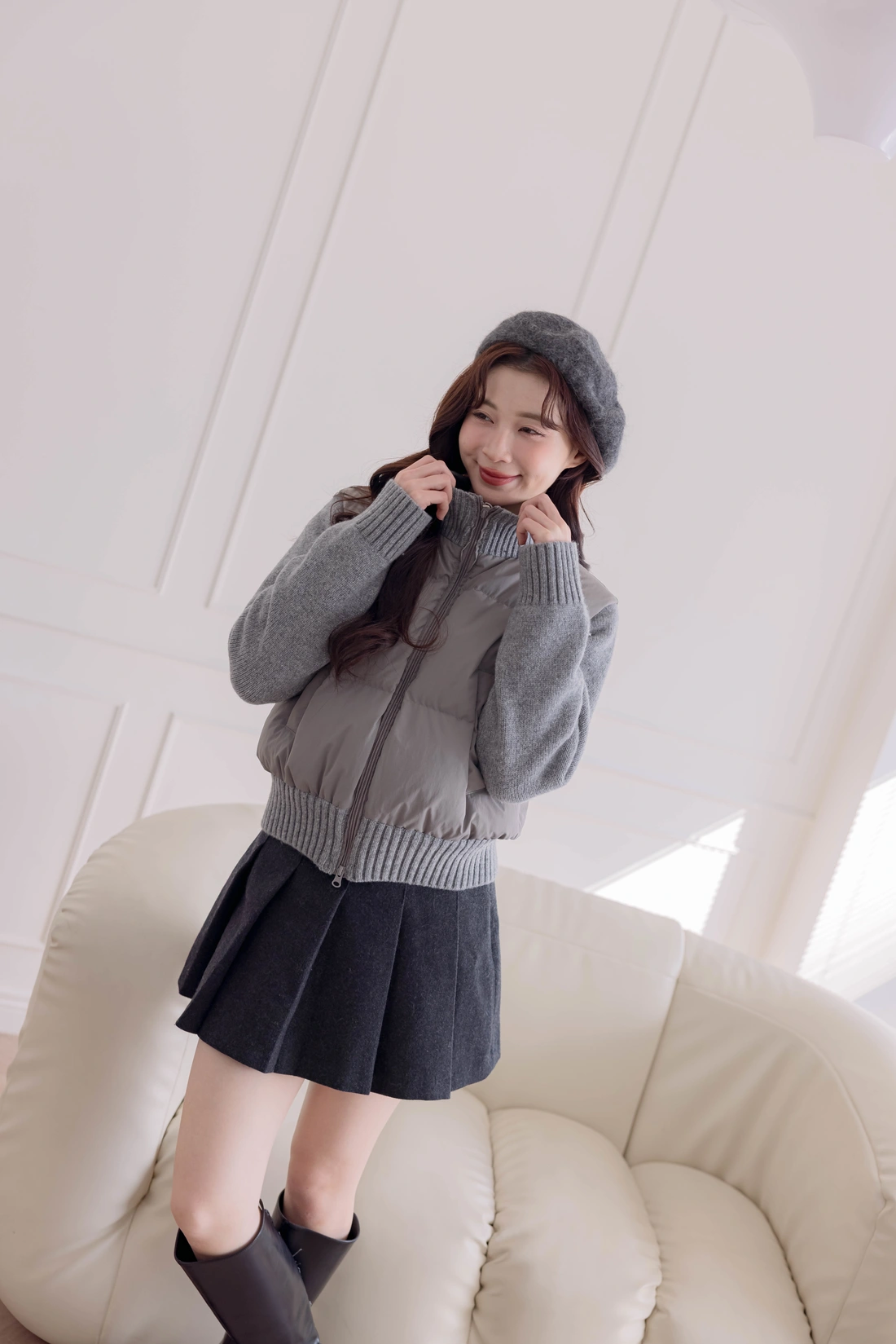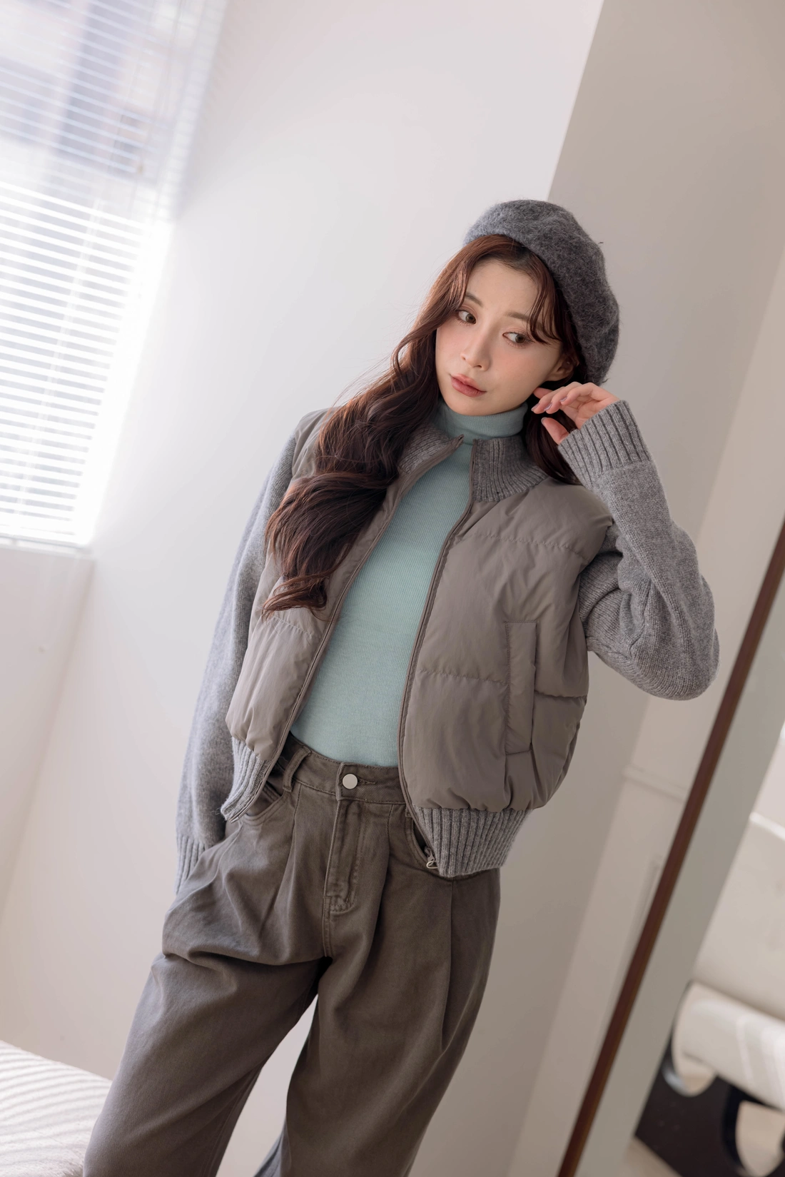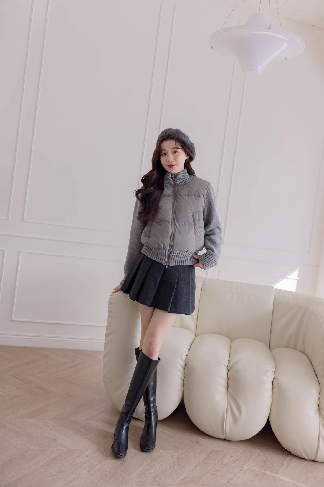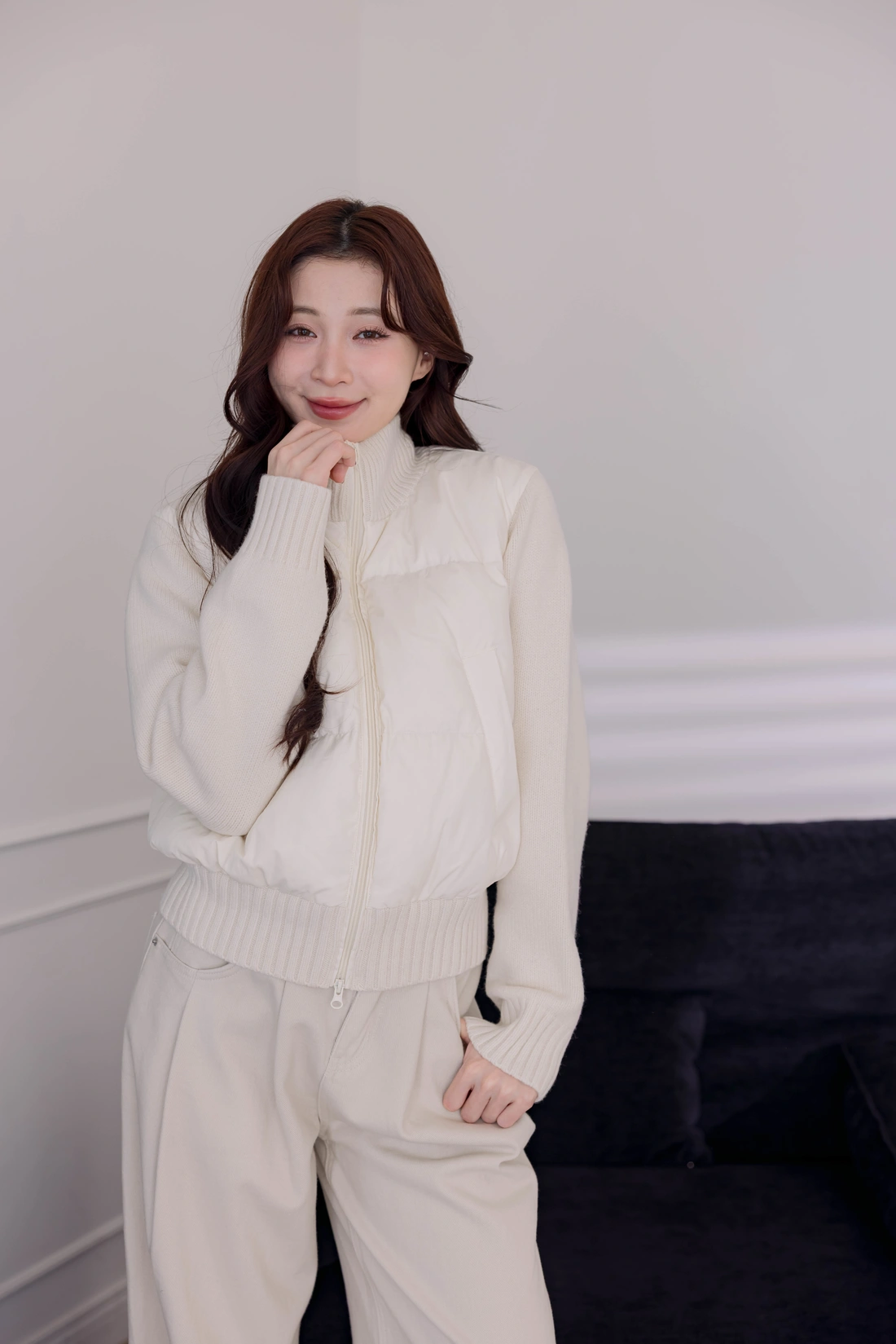 鴨絨拼接設計外套/雙口袋設計/率性風格非常時尚