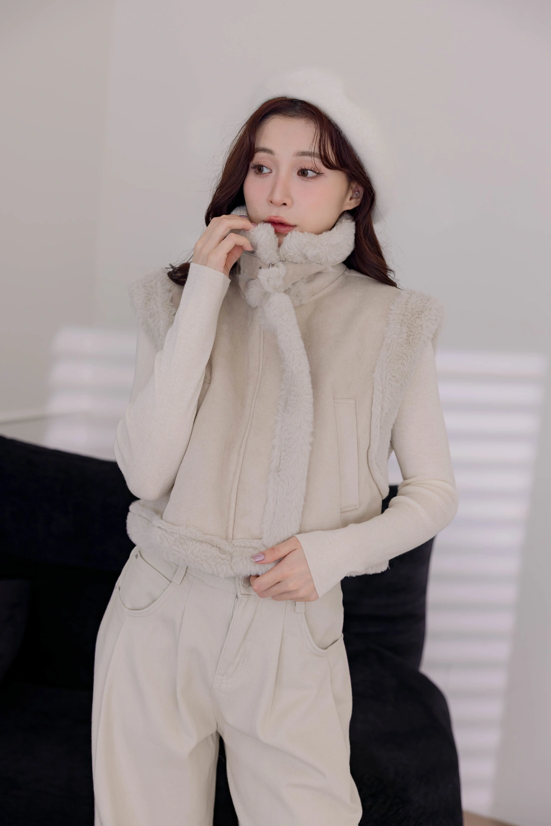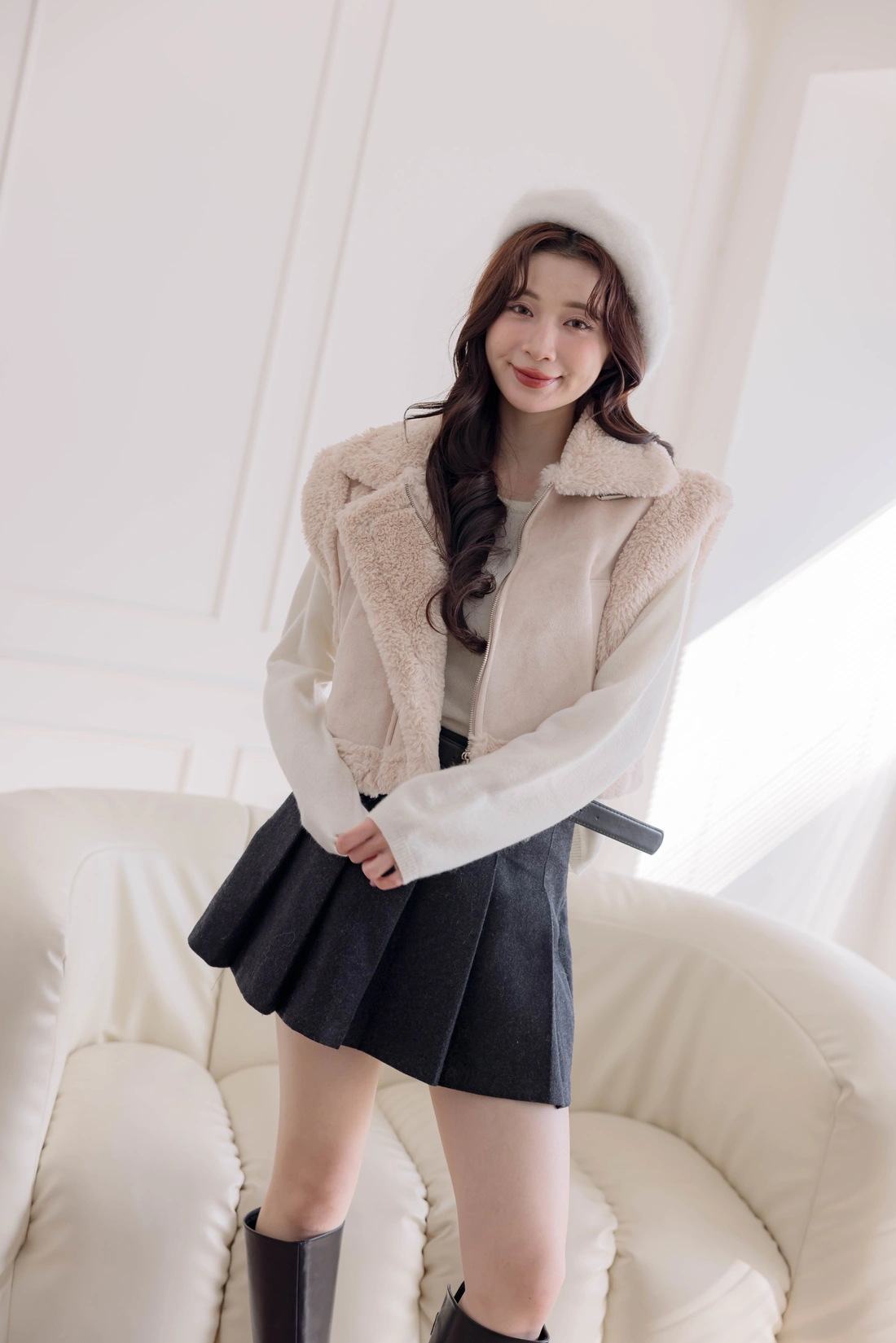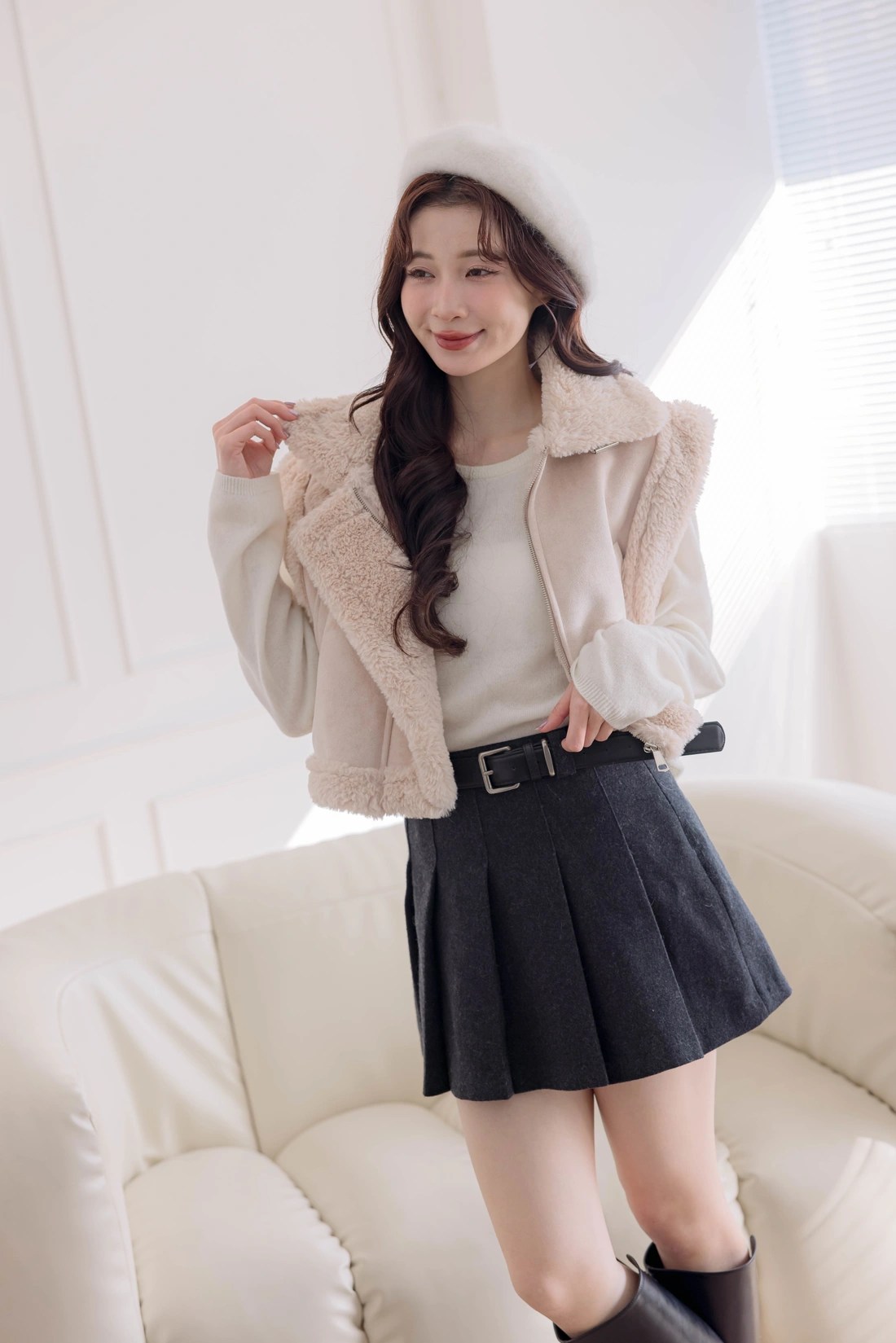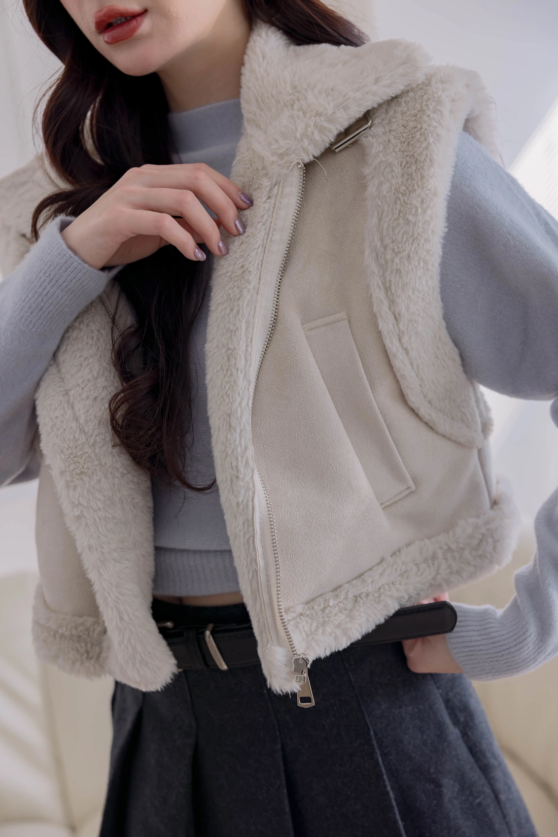 質感時尚麂皮材質/短版衣長/拉鍊設計