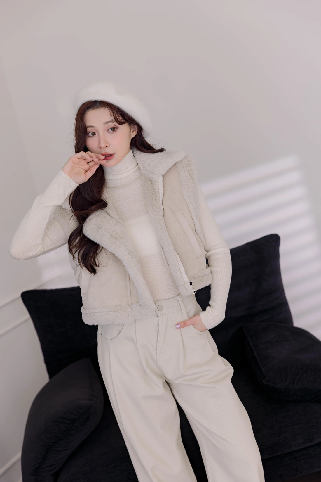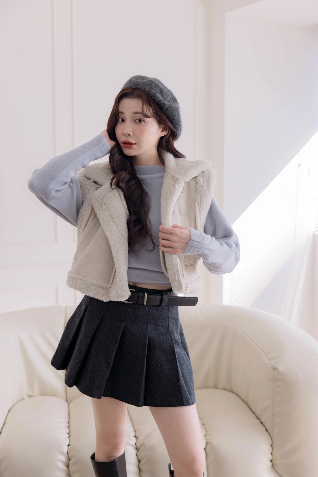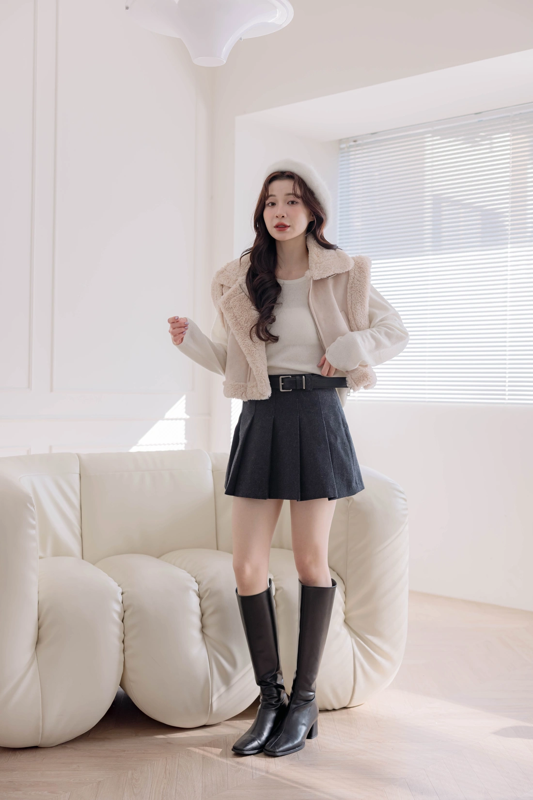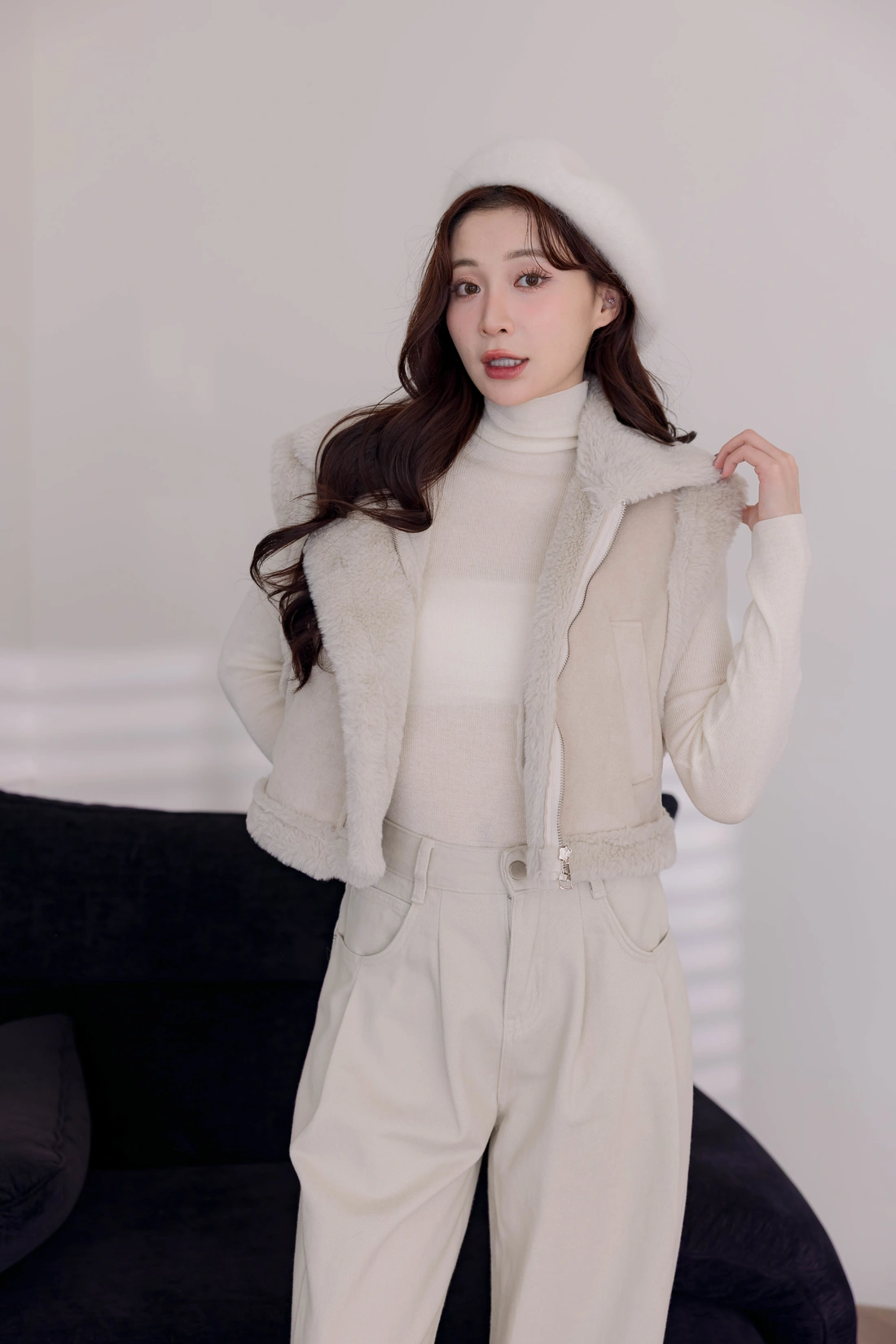 質感時尚麂皮材質/短版衣長/拉鍊設計
