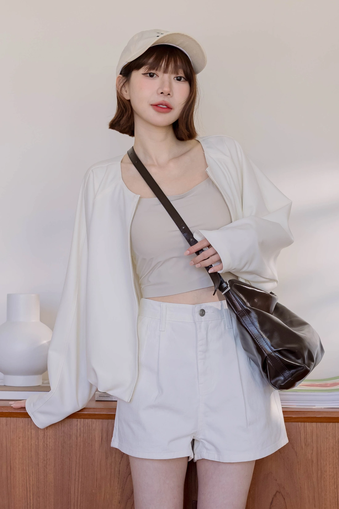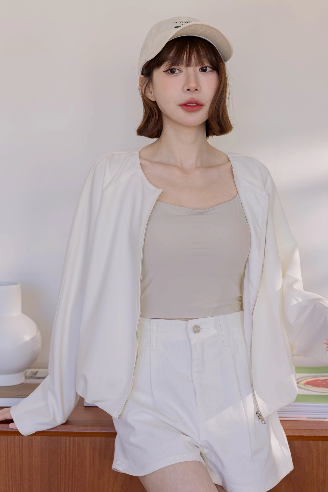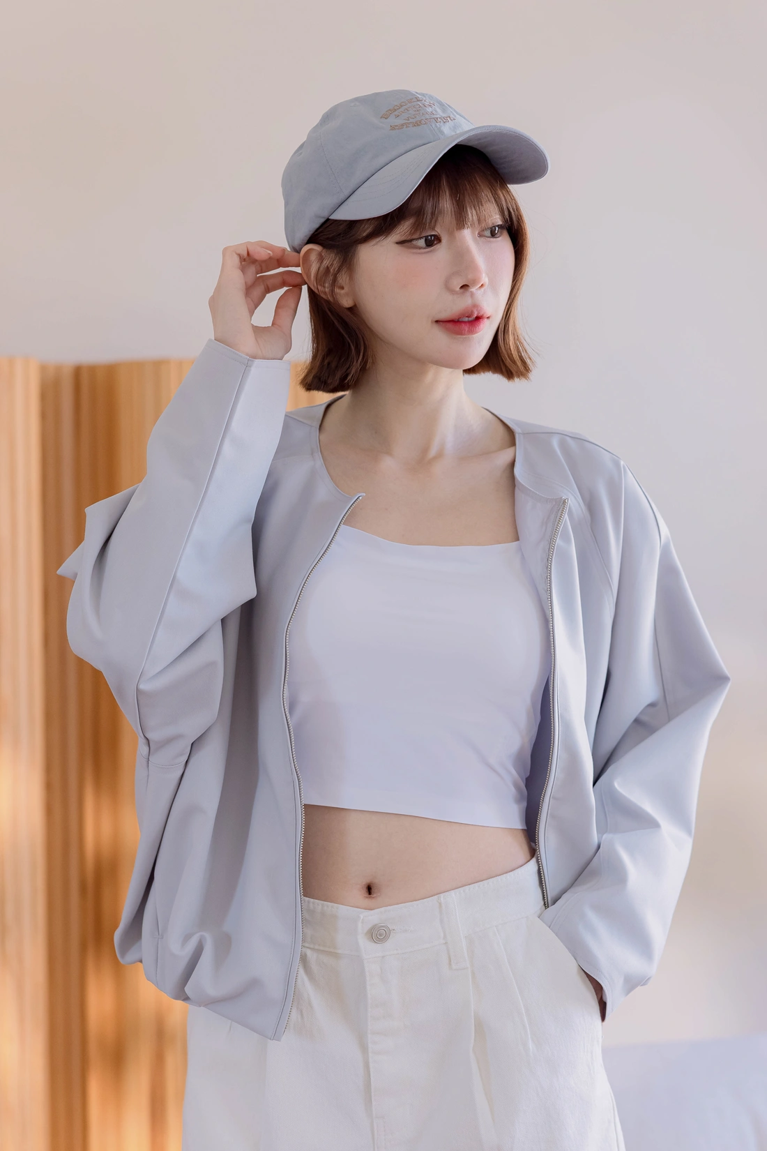 正韓製 奶霜系柔軟無領外套