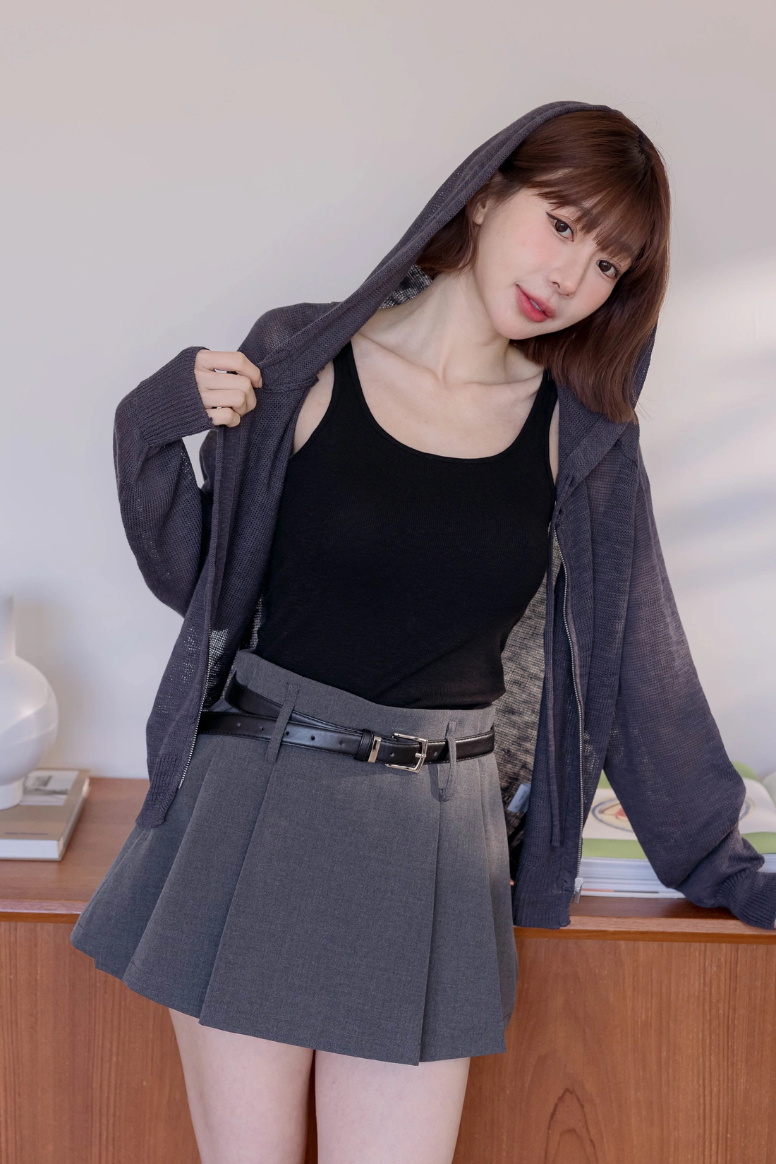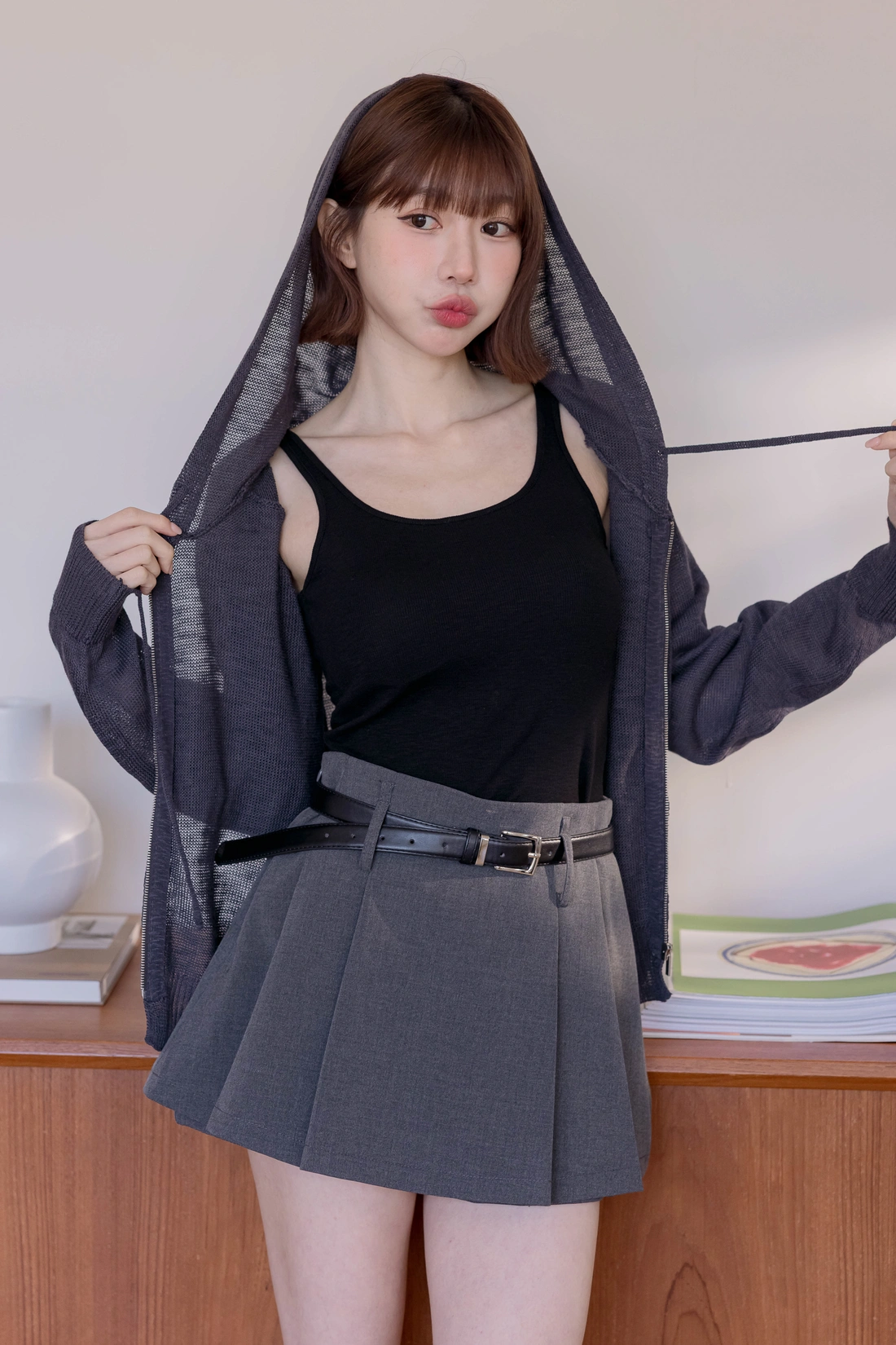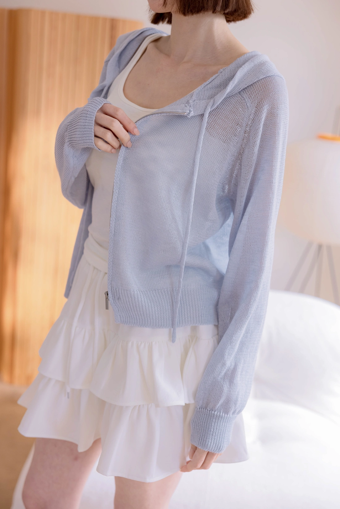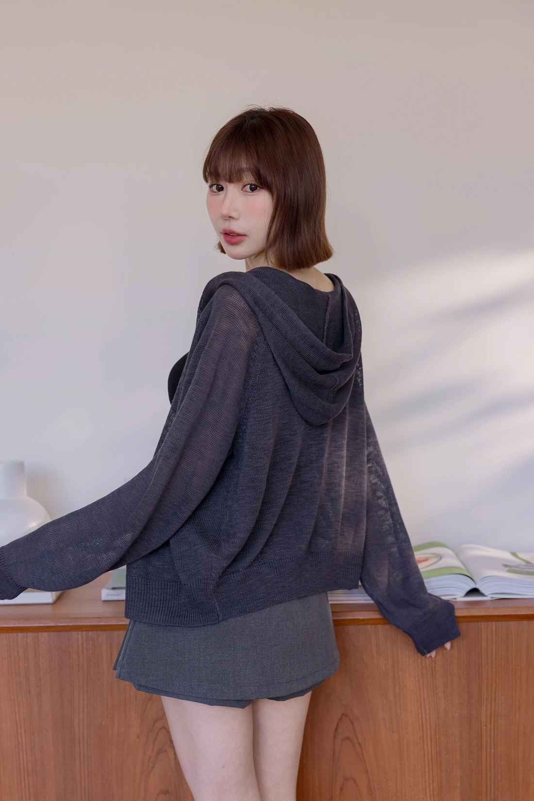 夏天必備針織罩衫/連帽版型寬鬆休閒/舒適透氣有彈性