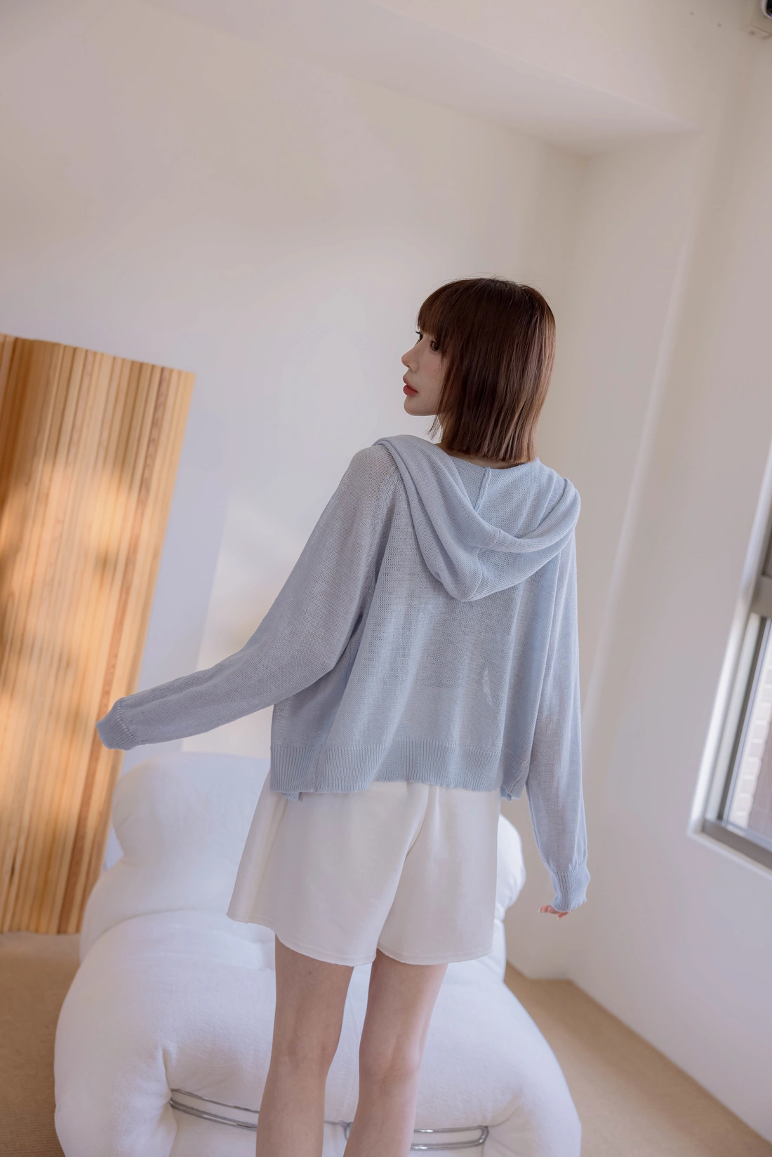 夏天必備針織罩衫/連帽版型寬鬆休閒/舒適透氣有彈性