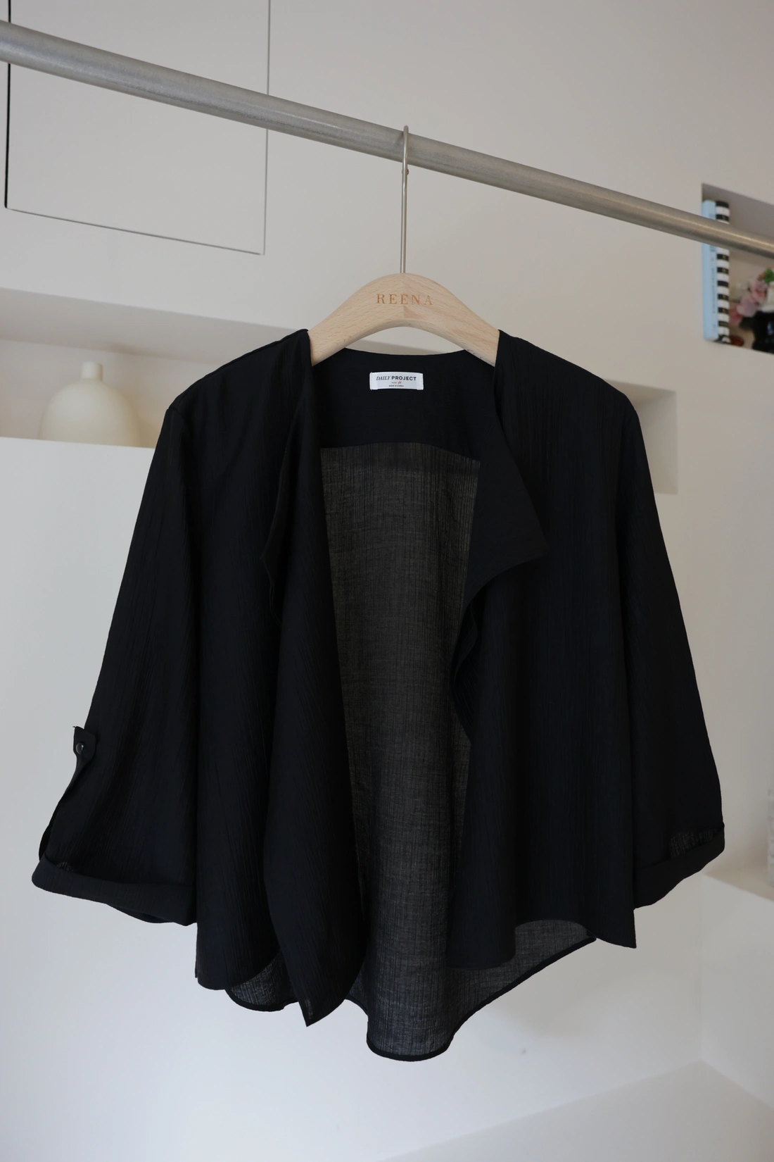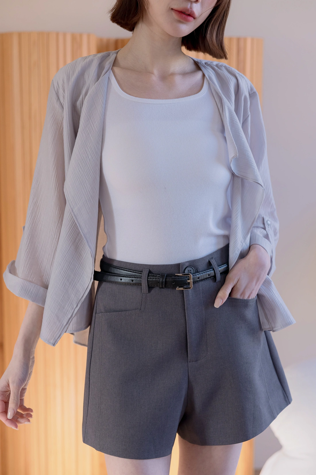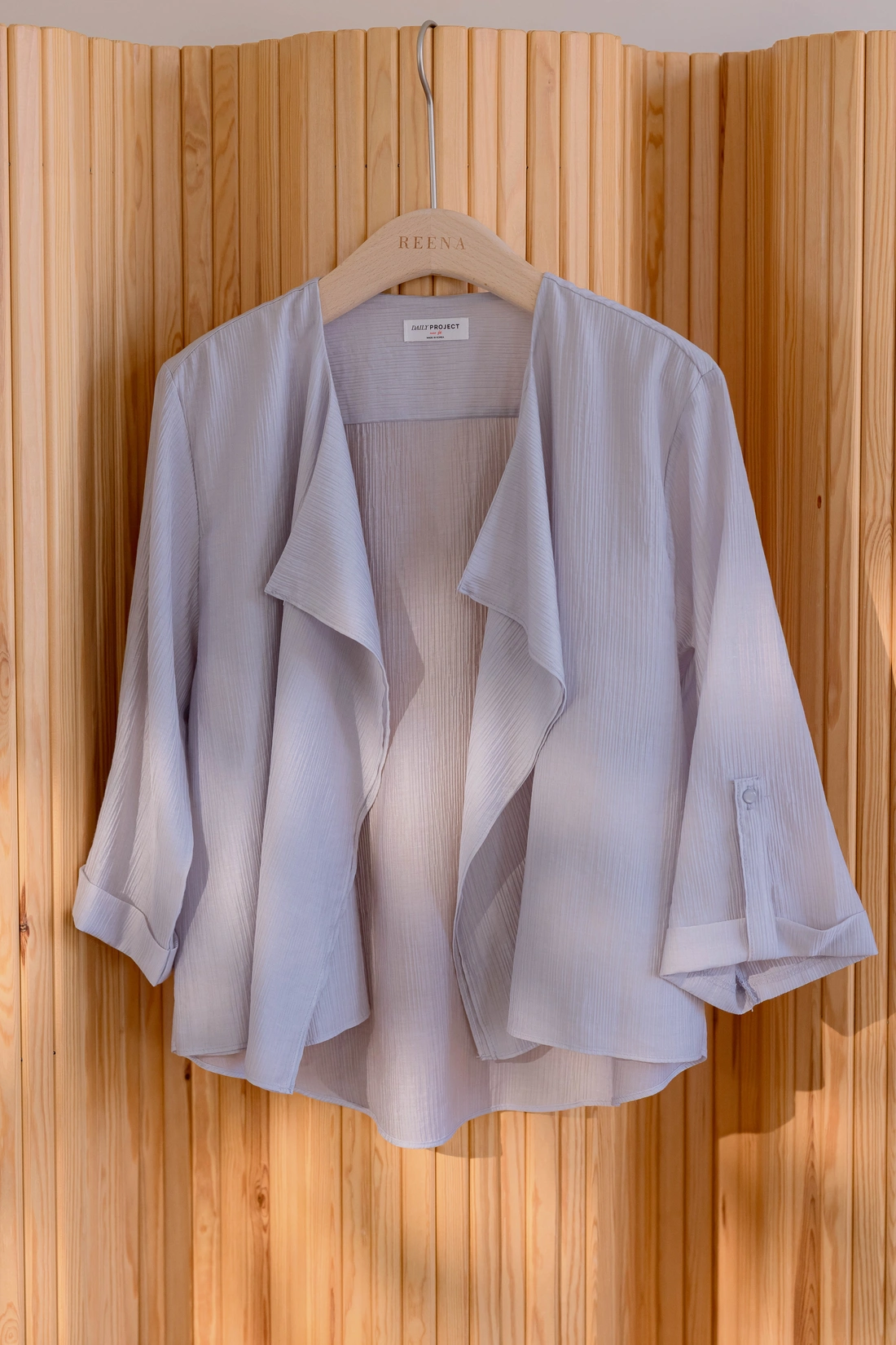 親薄透氣直紋布/袖口兩側反折/前短後長