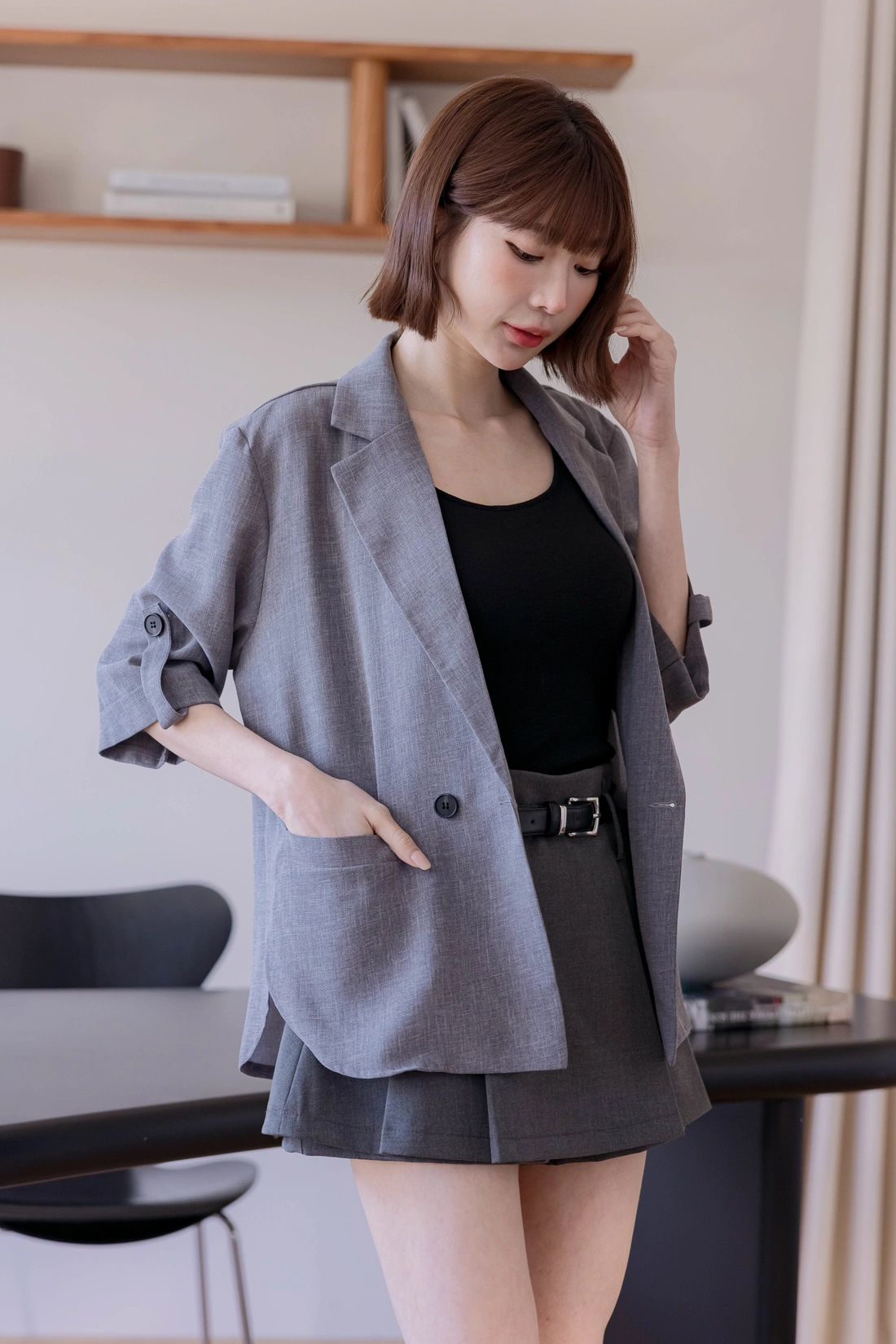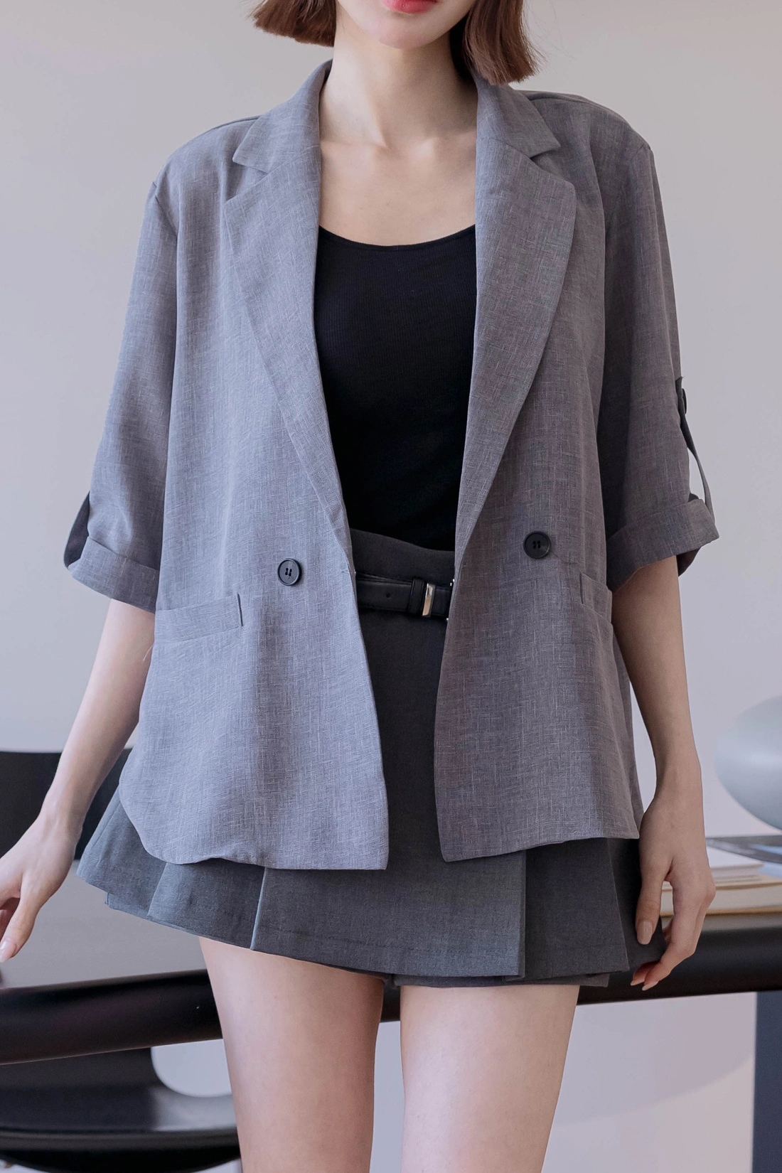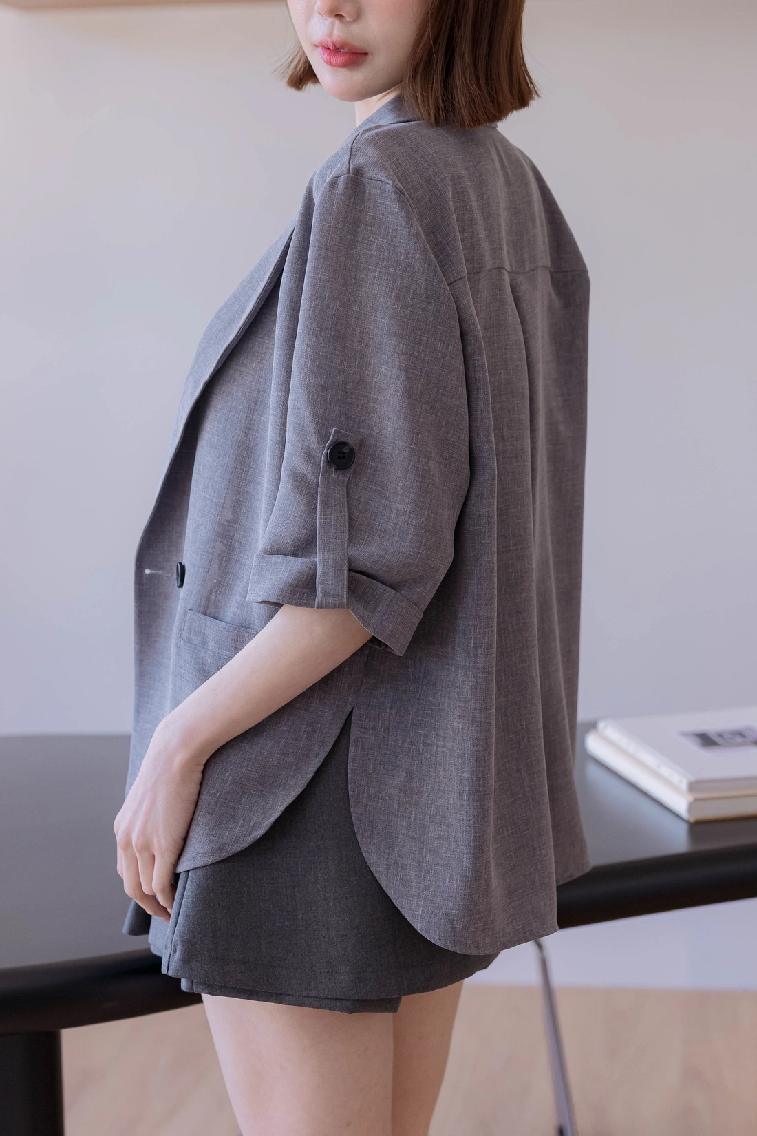 輕盈微透單釦西外/側邊雙開衩/混色織紋