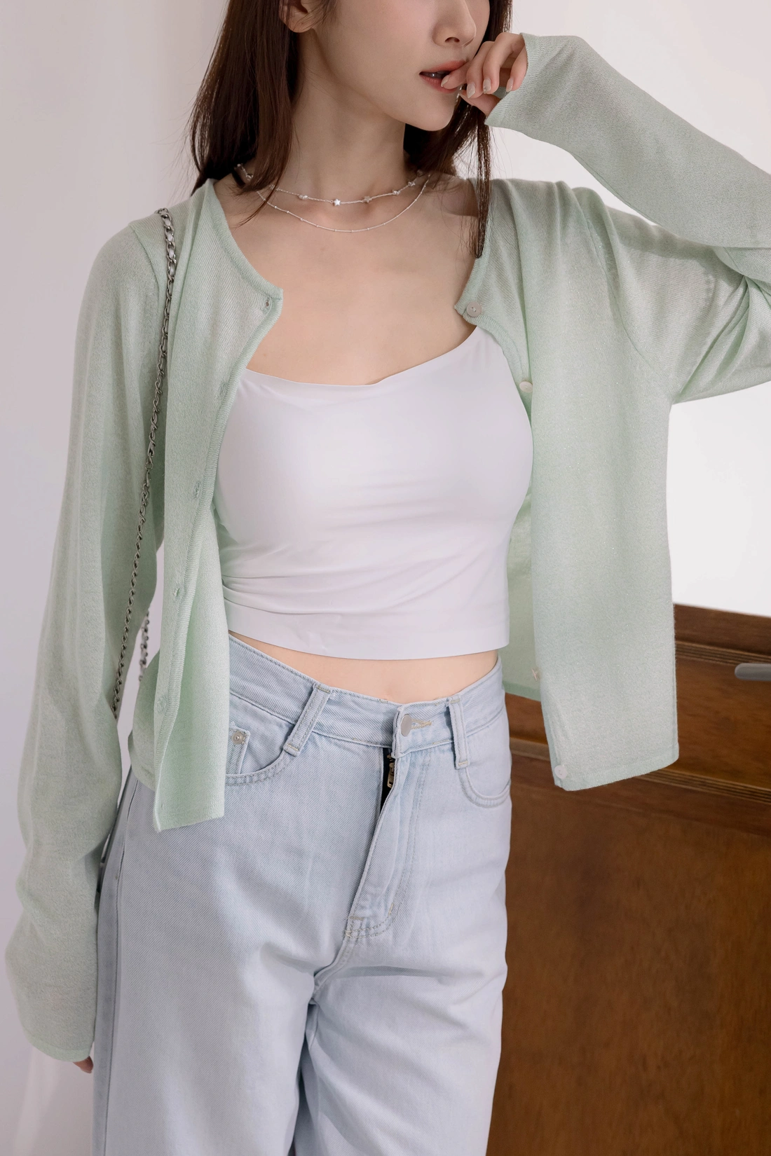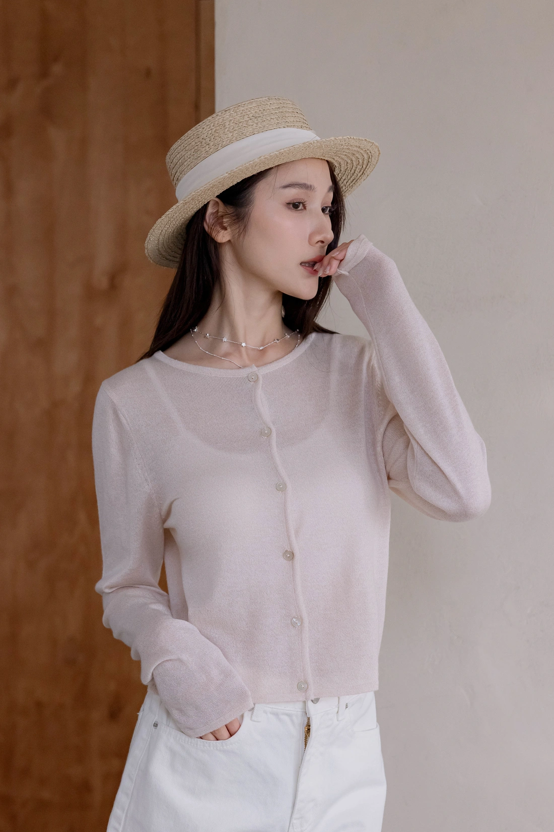 精緻細膩貝殼排釦/隨著身體移動擁有不同的光澤