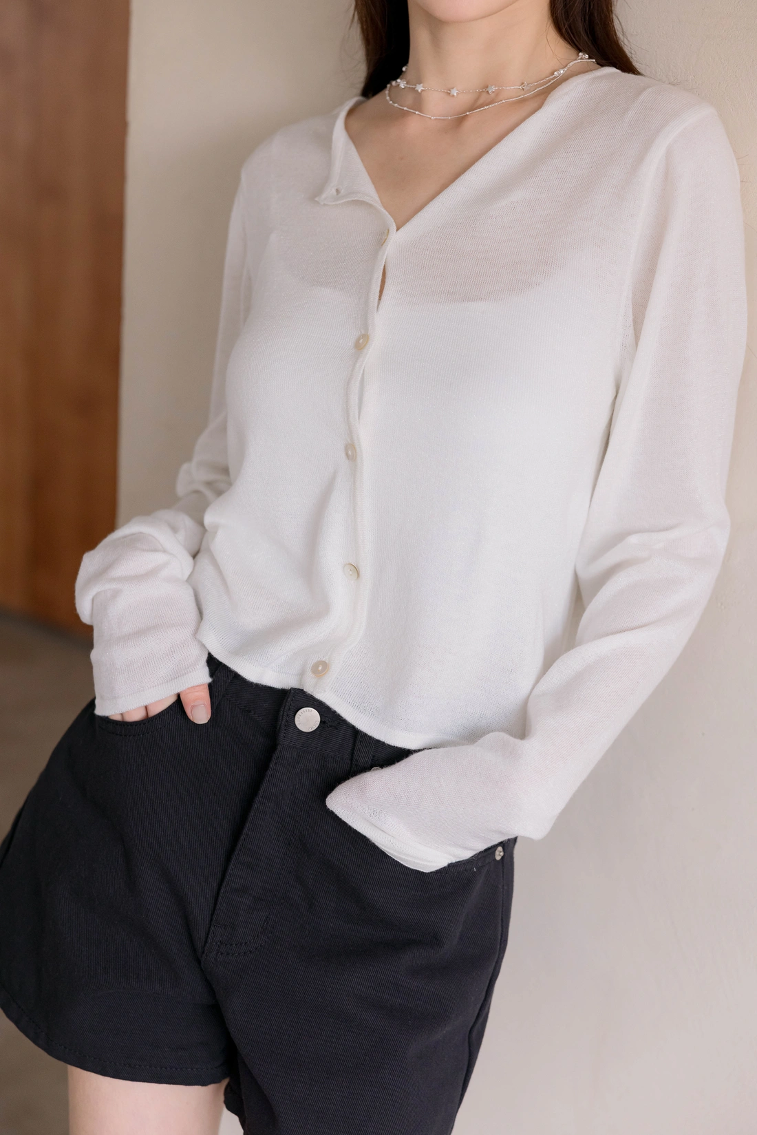 精緻細膩貝殼排釦/隨著身體移動擁有不同的光澤