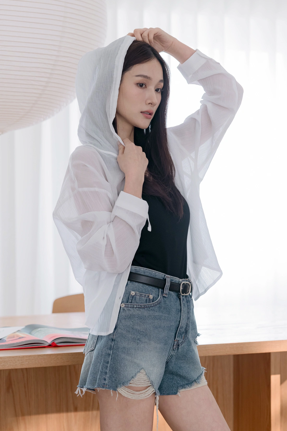 清涼微透感罩衫/布料本身帶有紋理 不易皺