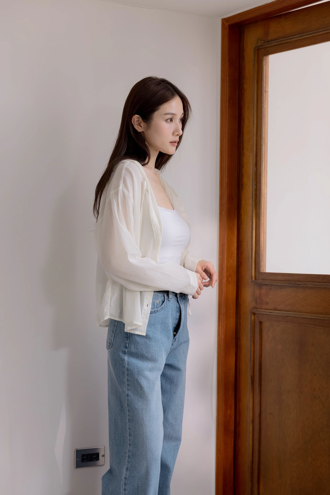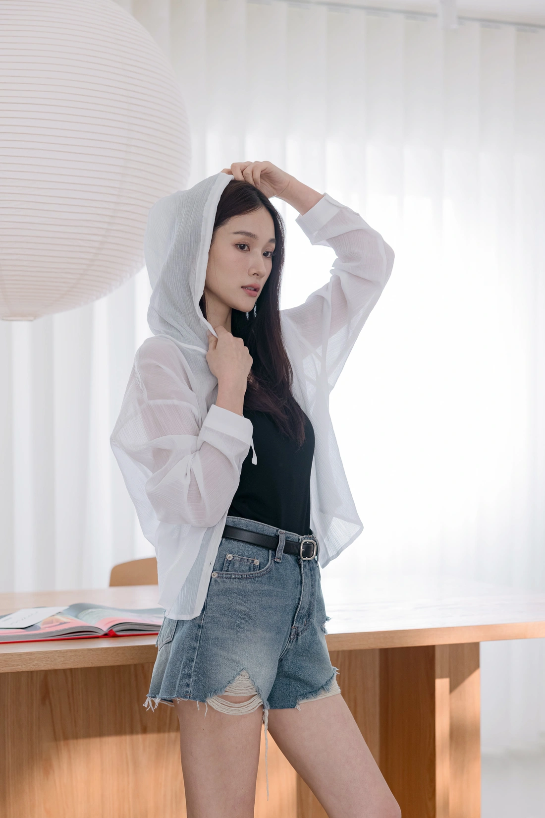 正韓製 休閒清透連帽罩衫