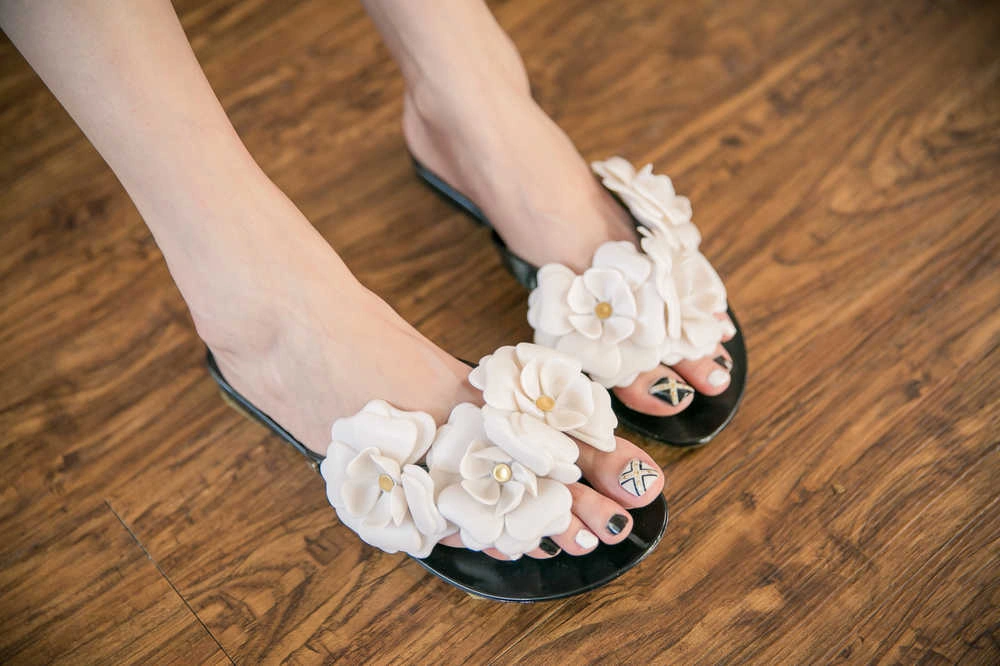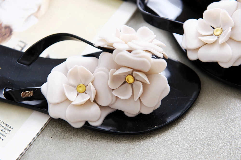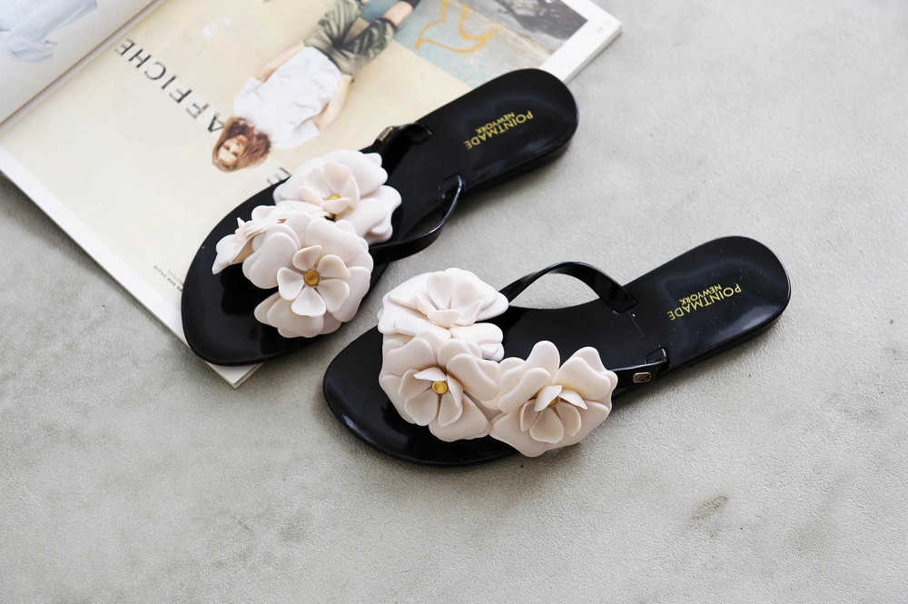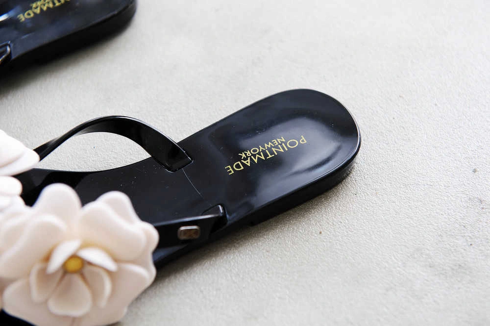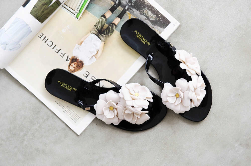 韓國設計 山茶花姿態 優雅百搭軟膠底夾腳拖/黑