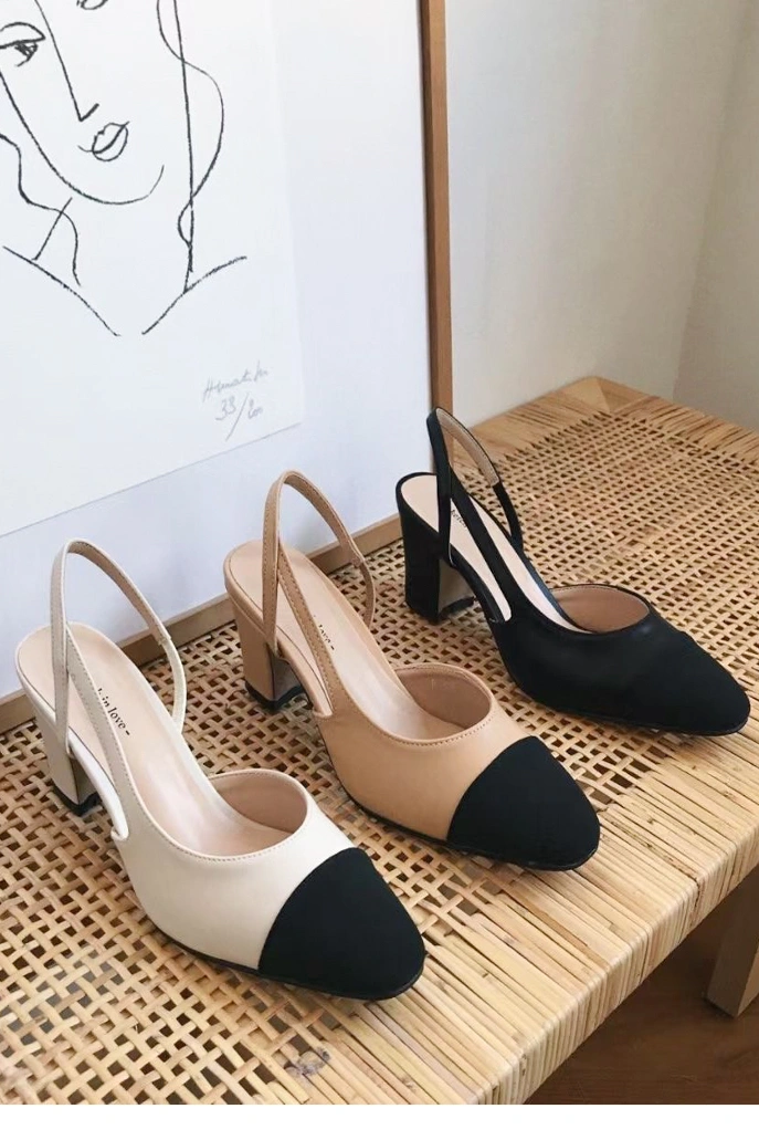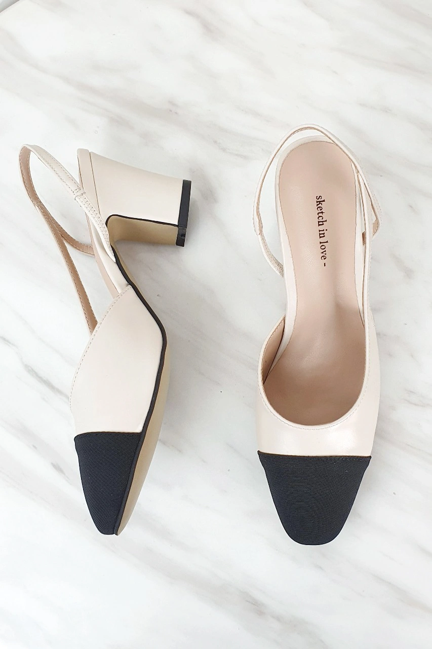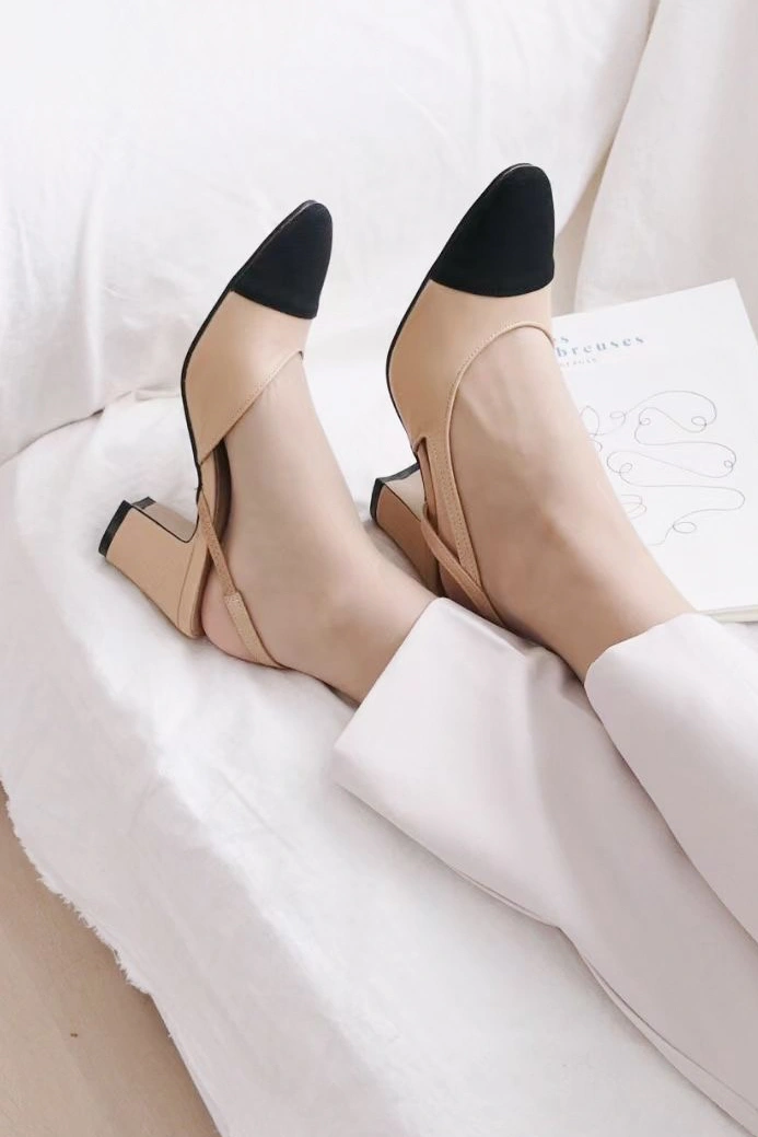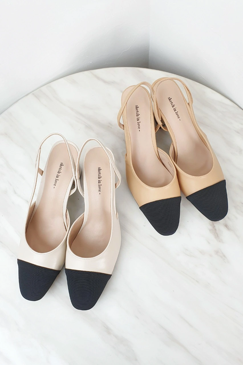韓國設計 百搭撞色粗跟鞋