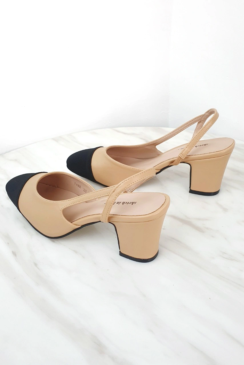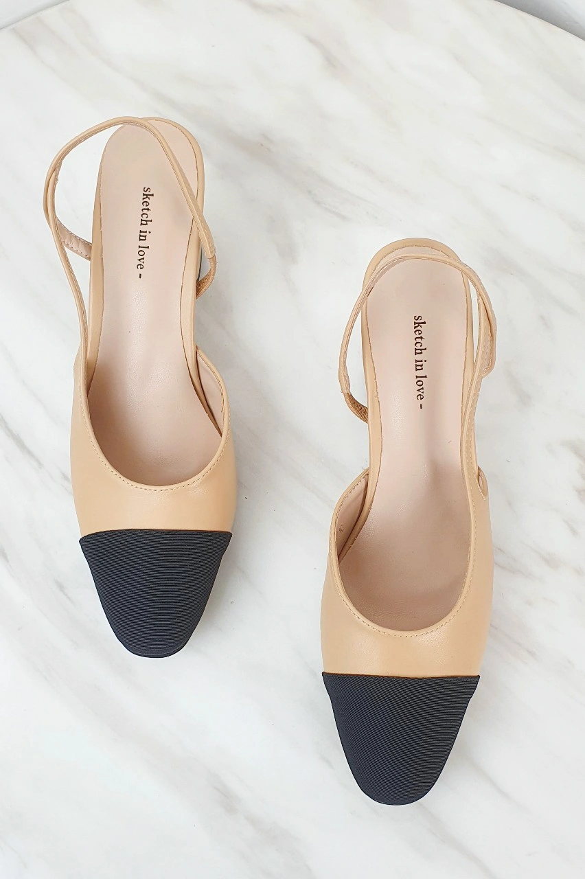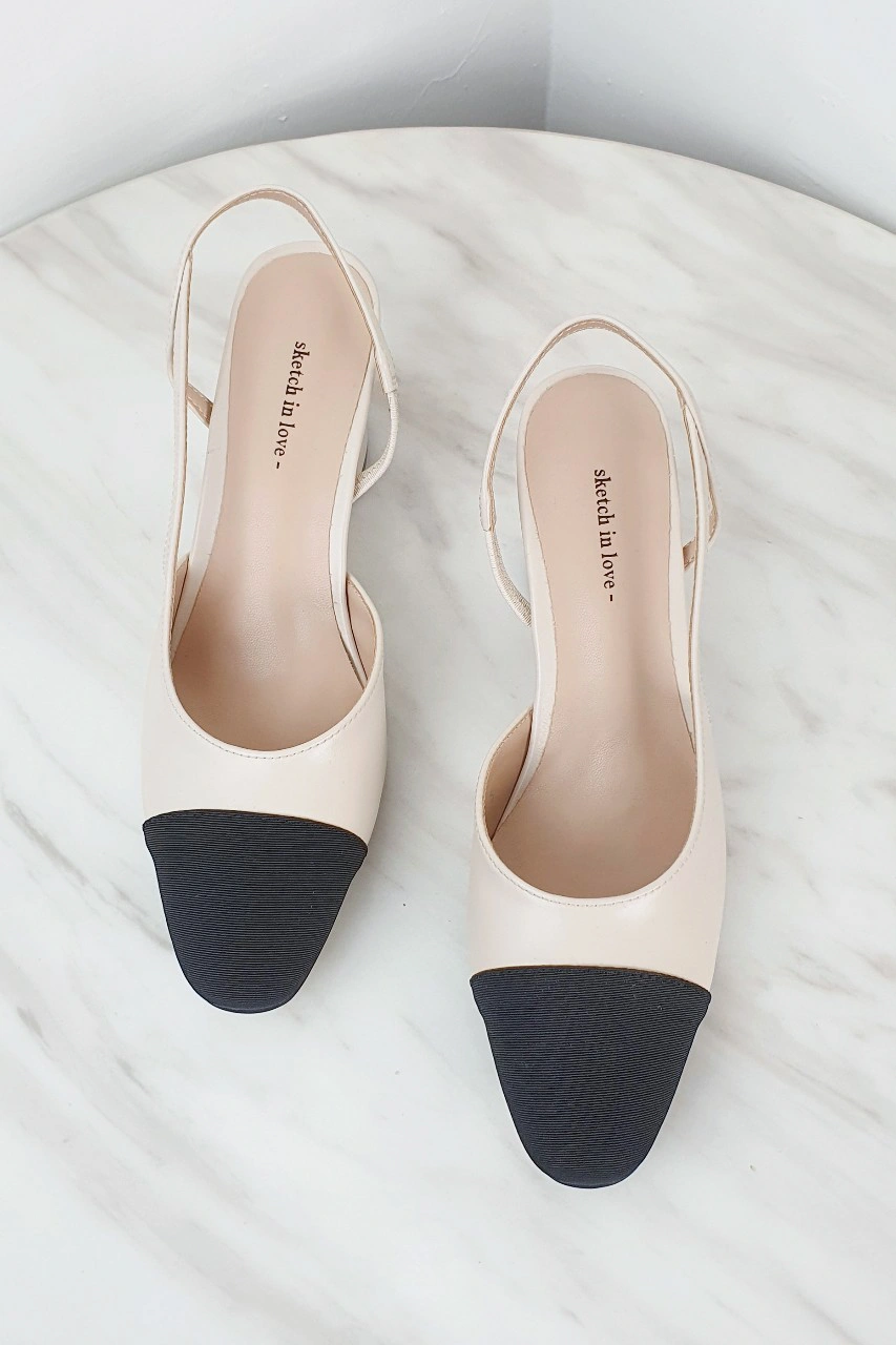 韓國設計 百搭撞色粗跟鞋