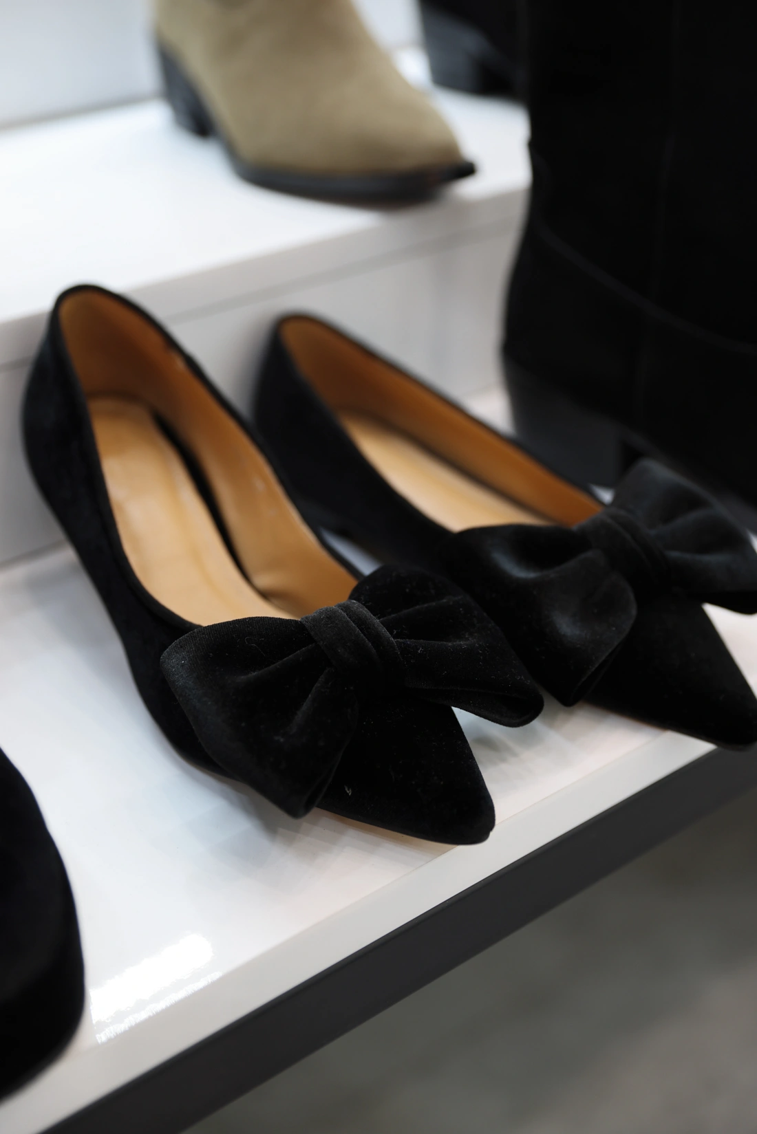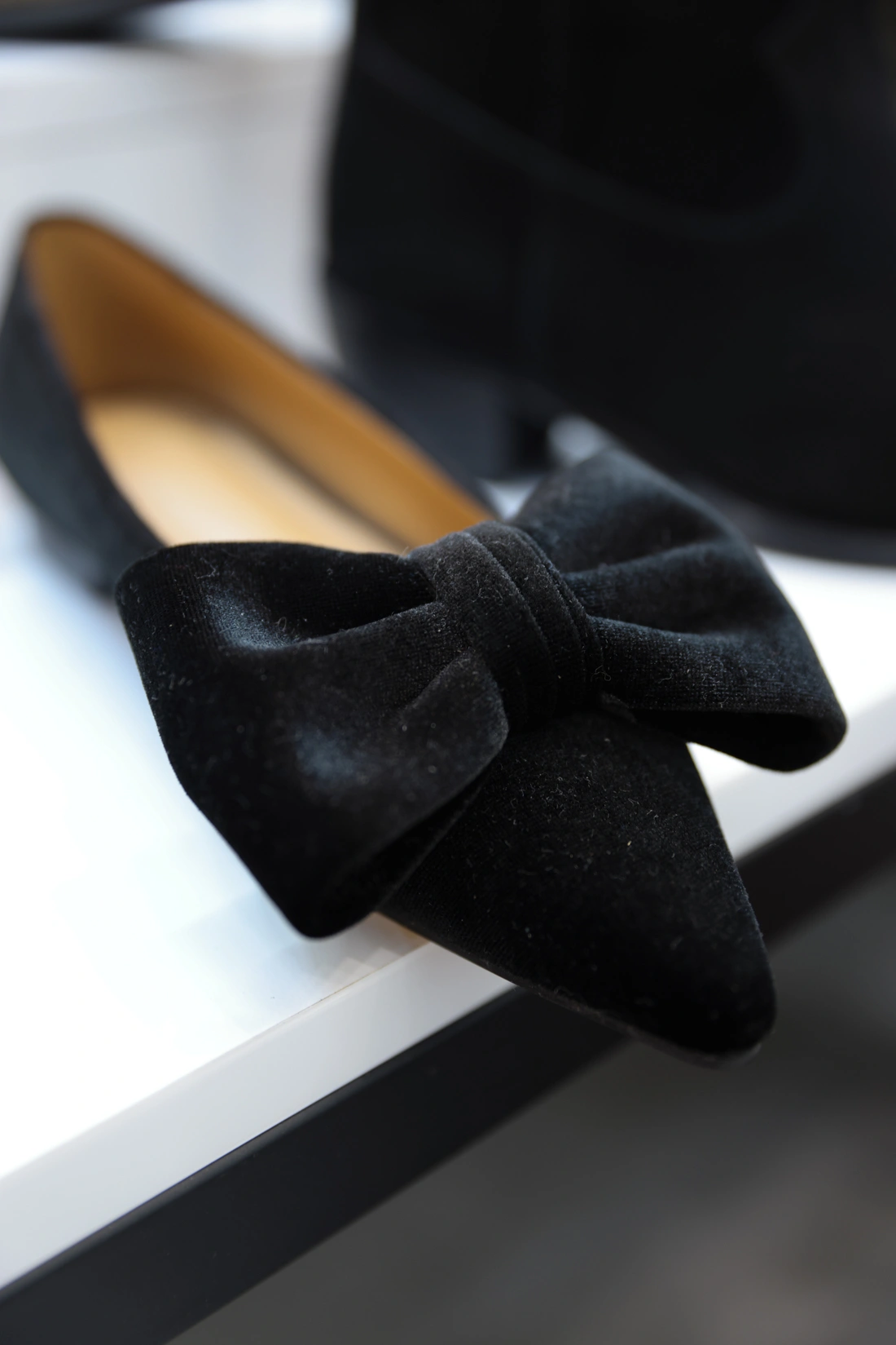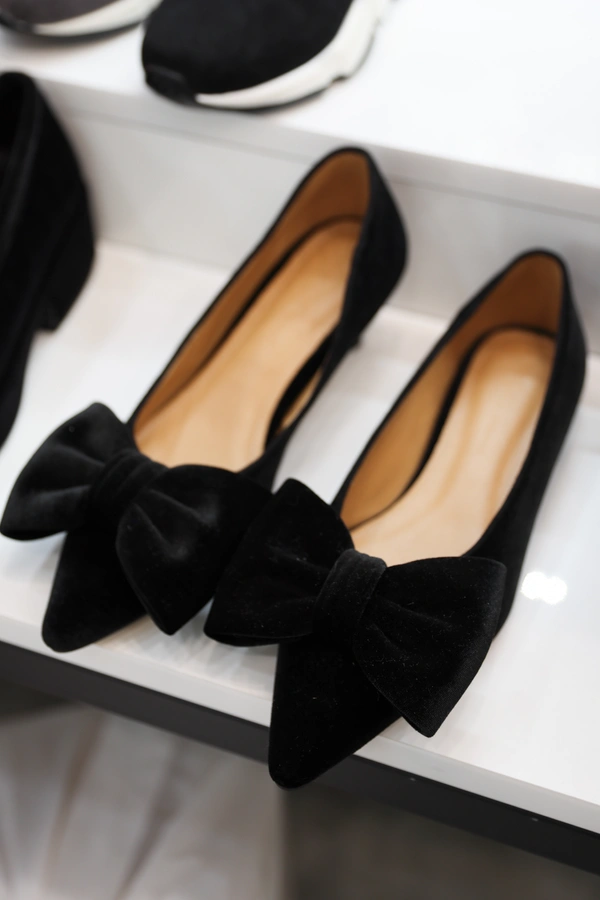 韓國設計 絨布蝴蝶結尖頭鞋