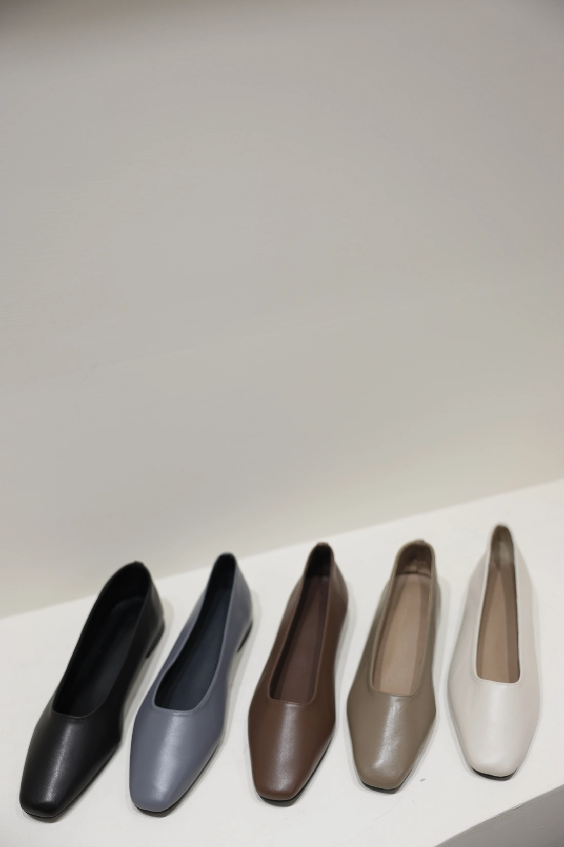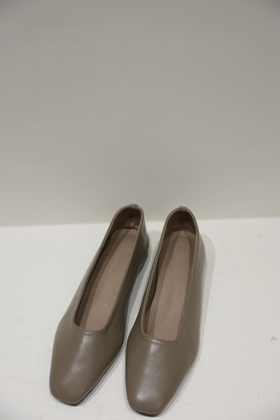 韓國設計 推薦款!羊皮方圓頭低跟鞋