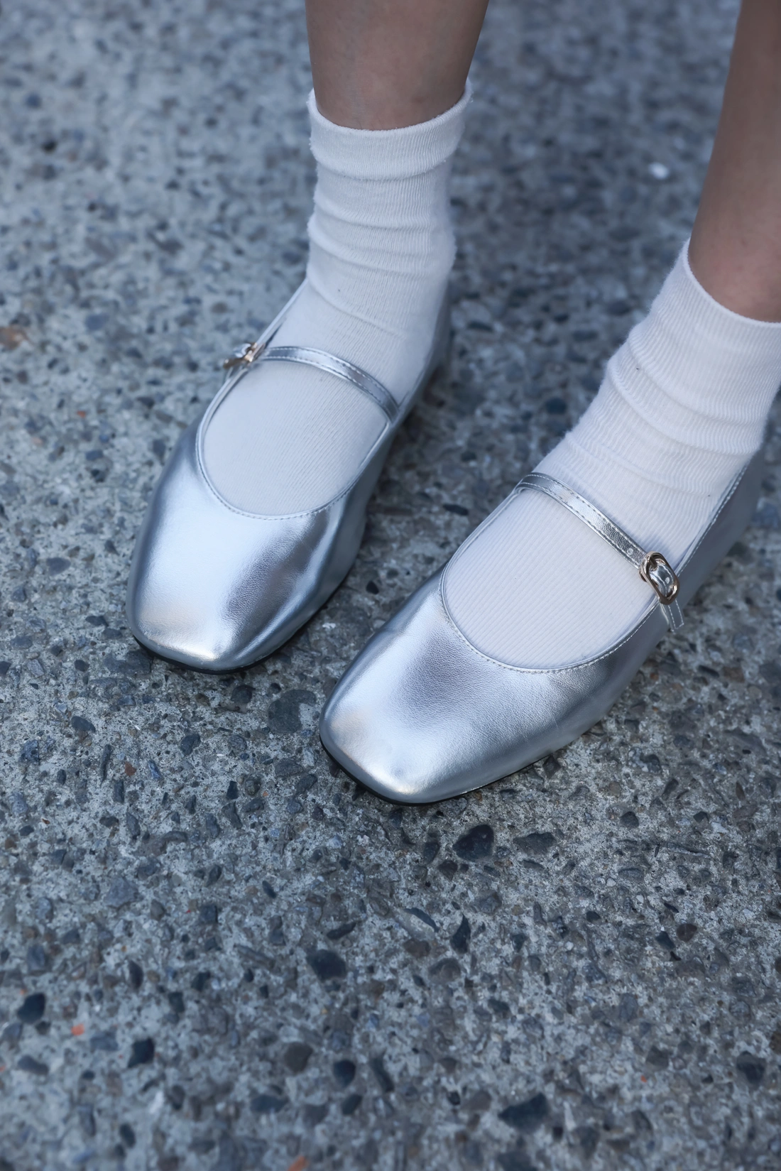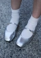 韓國設計 光澤感繫帶娃娃低跟鞋