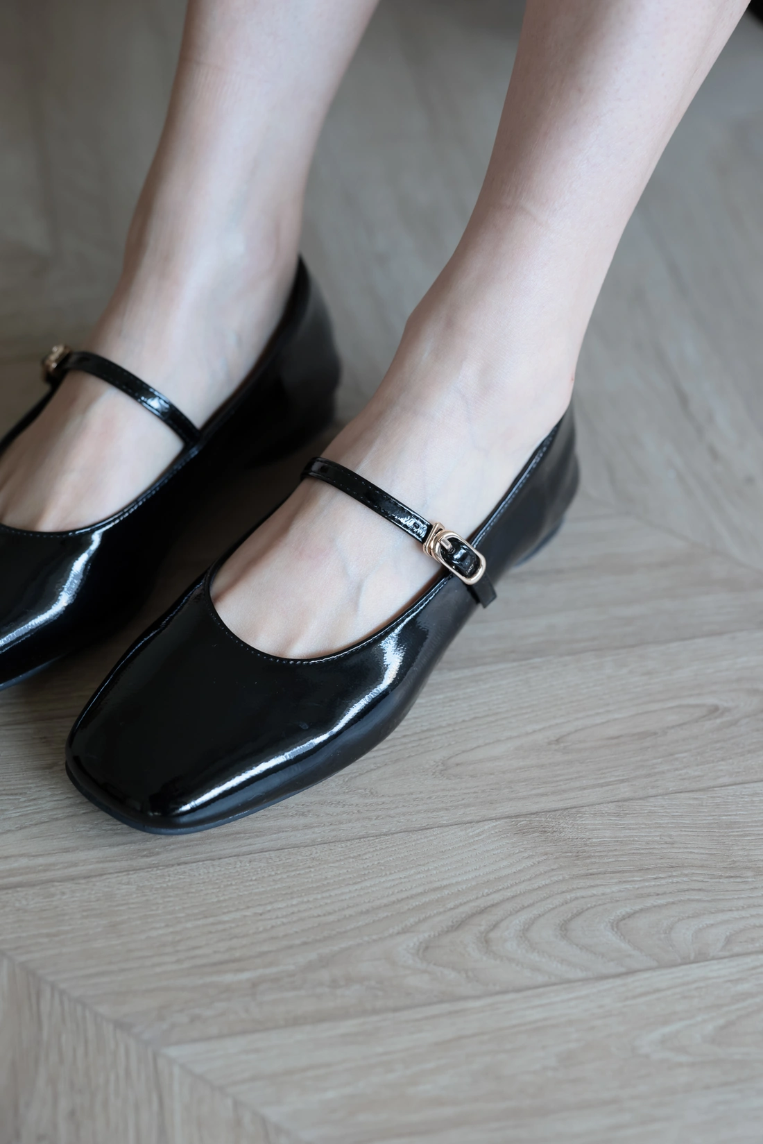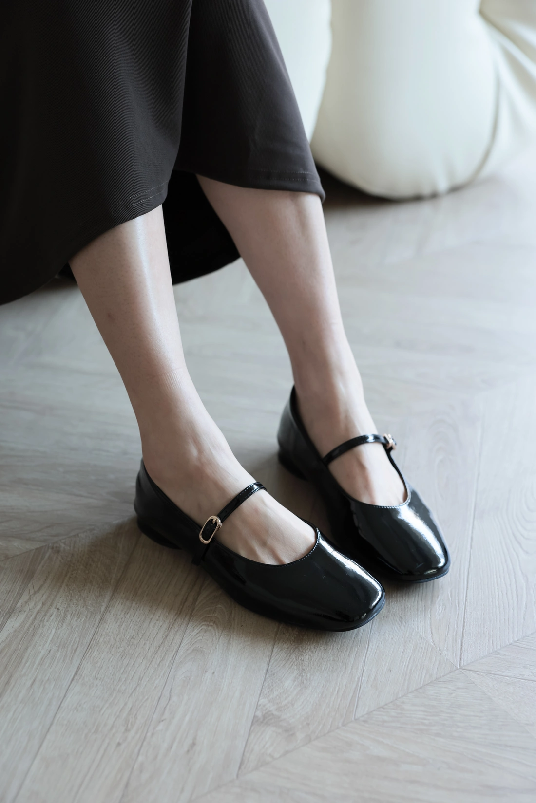 可愛方頭娃娃鞋/亮面材質好擦拭/三色都好看好搭