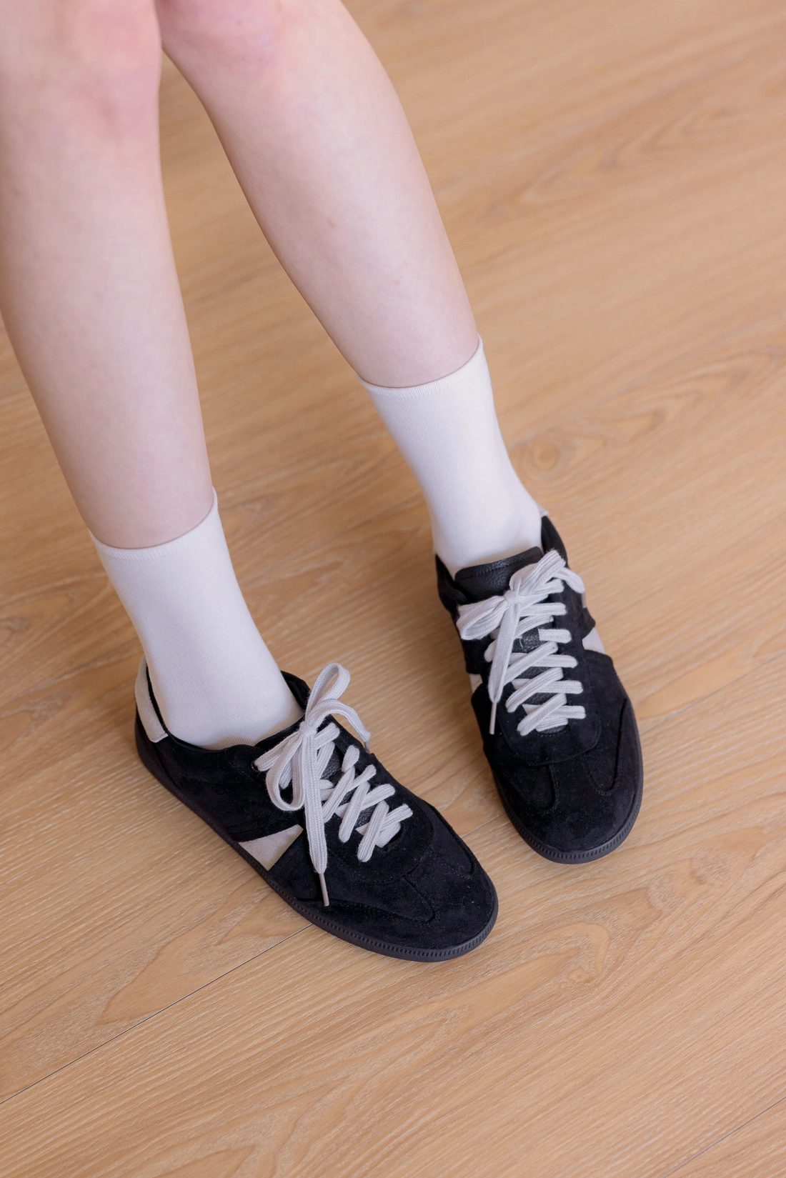 麂皮絨面材質/超級可愛復古拼接色/版型正常帶