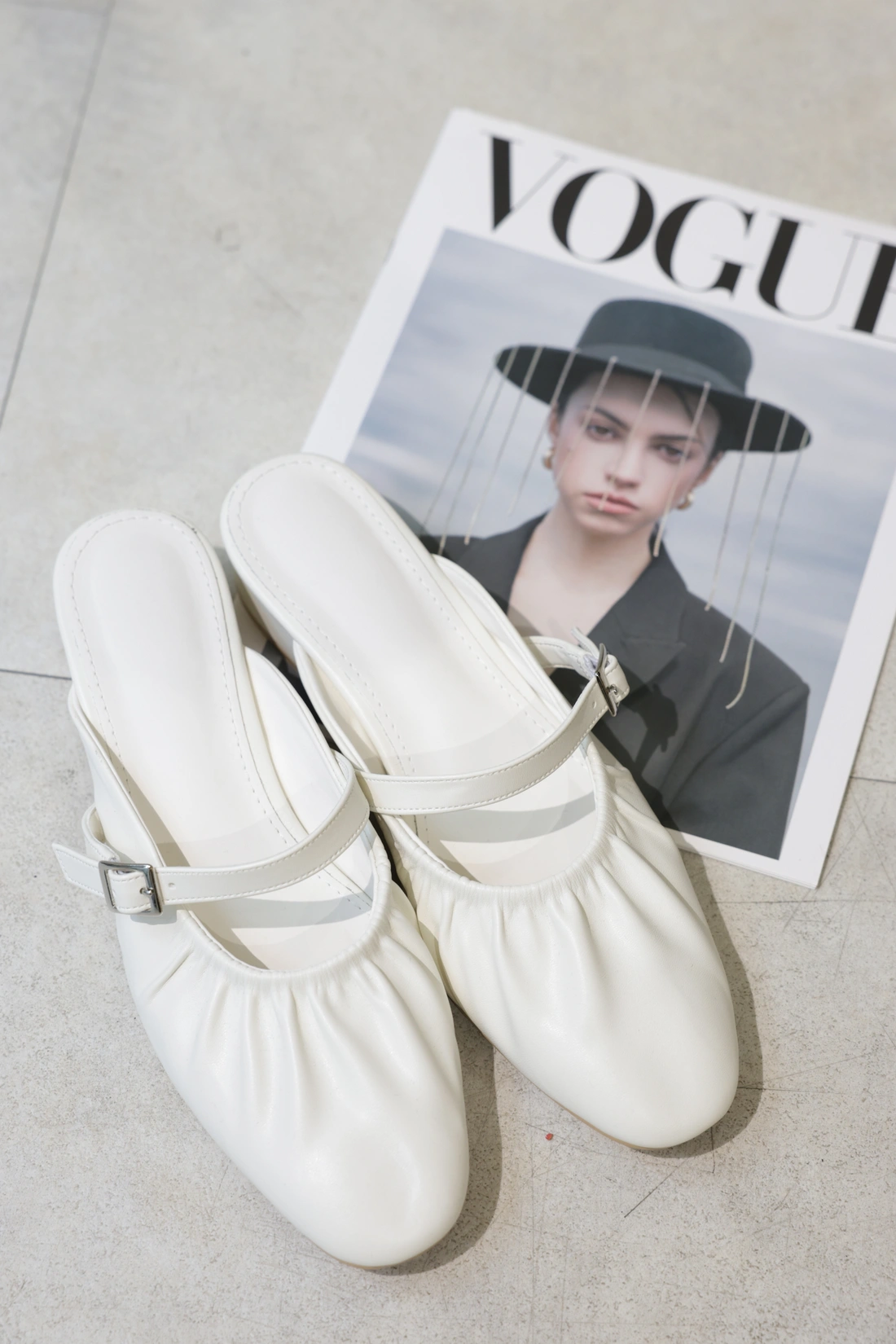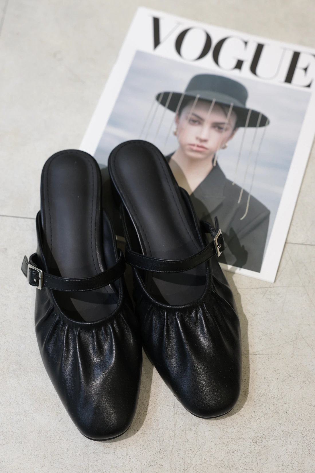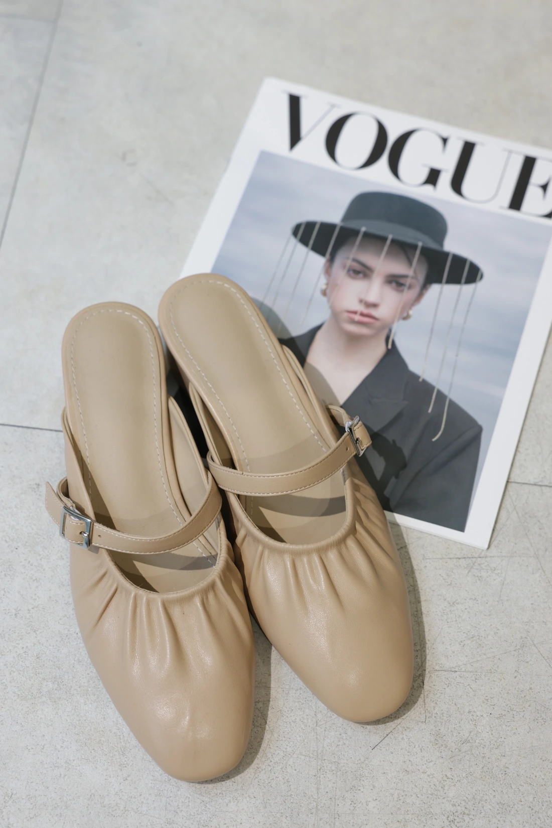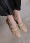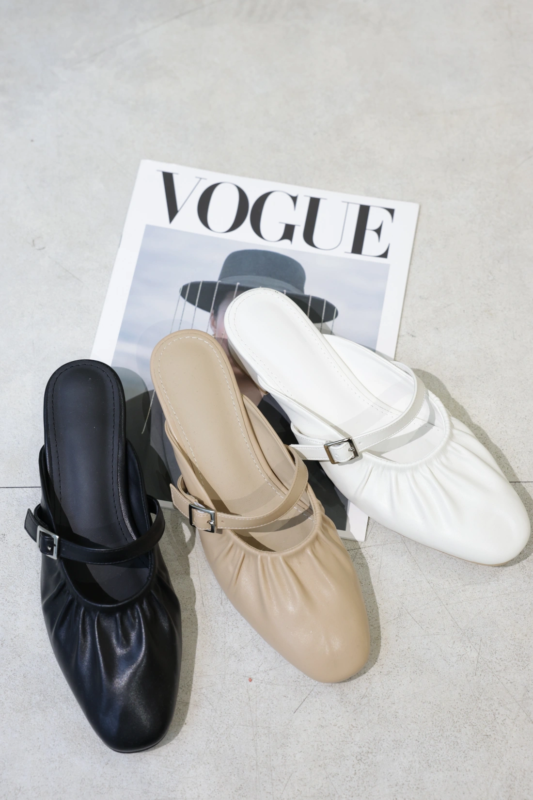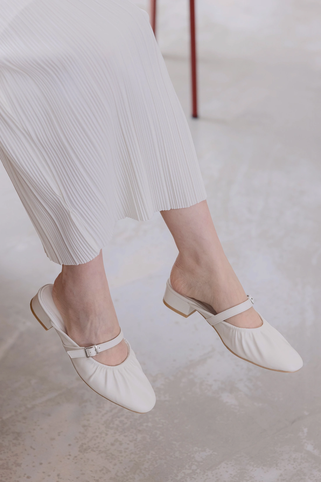粗跟增加穩定性/抓皺設計修飾腳型/溫柔感微圓頭