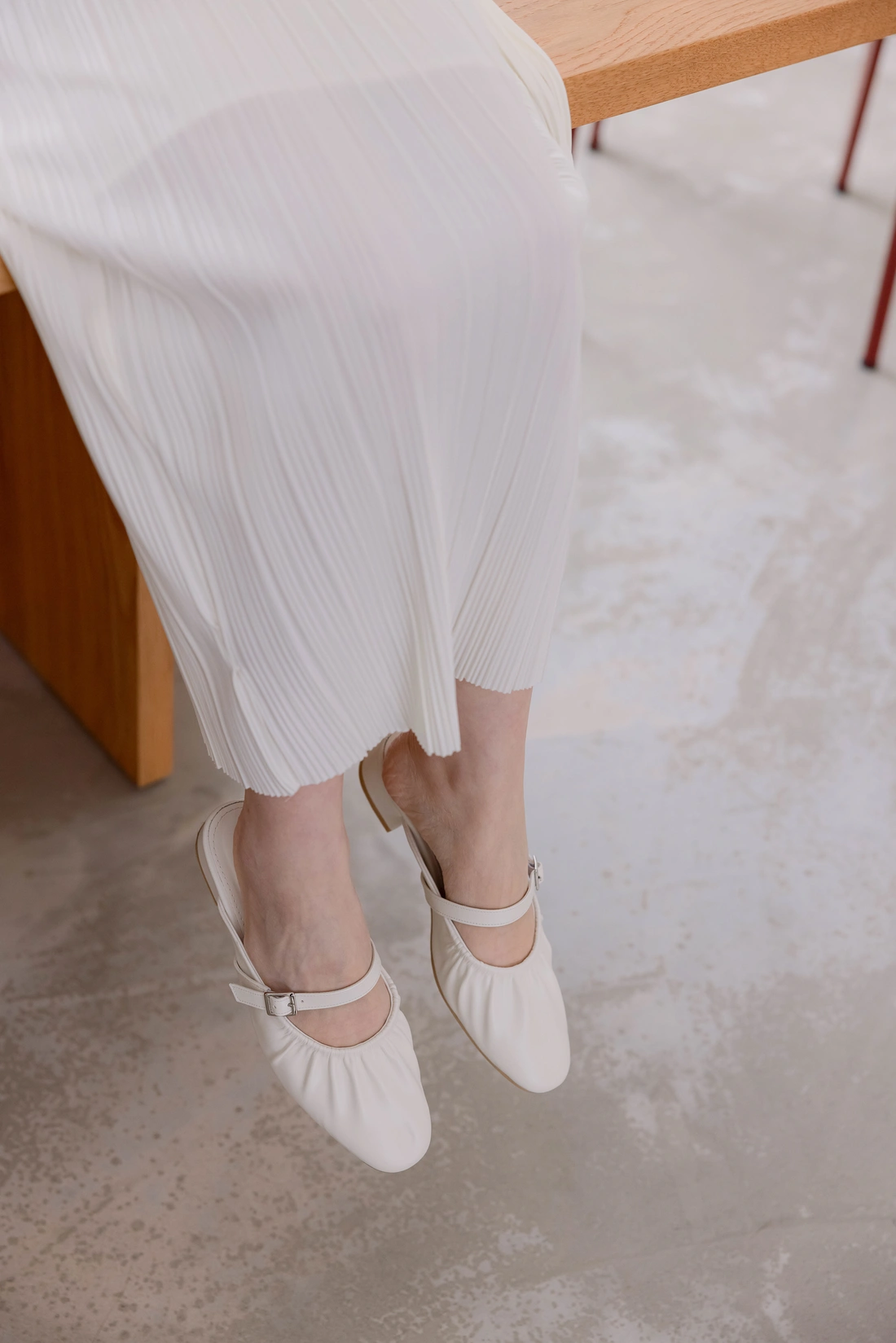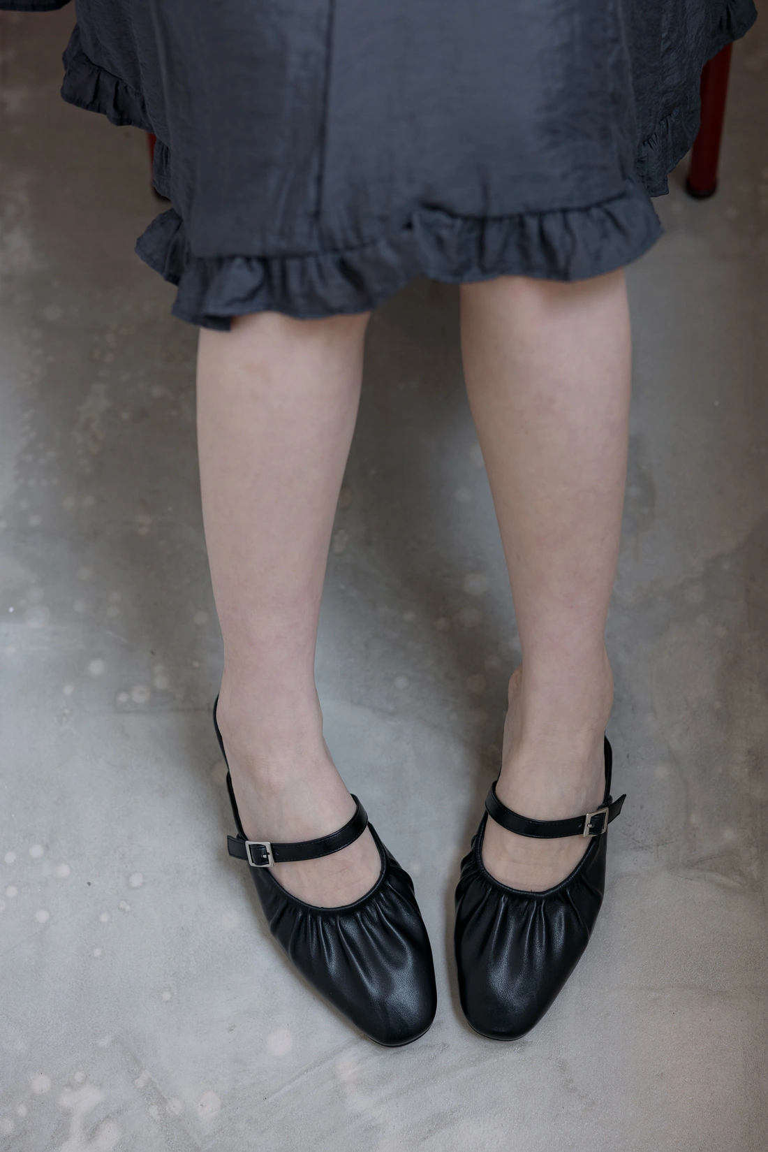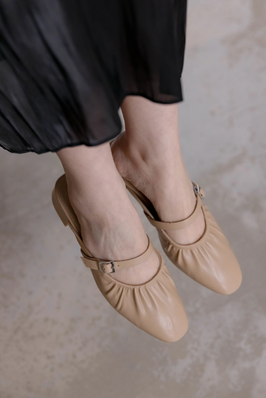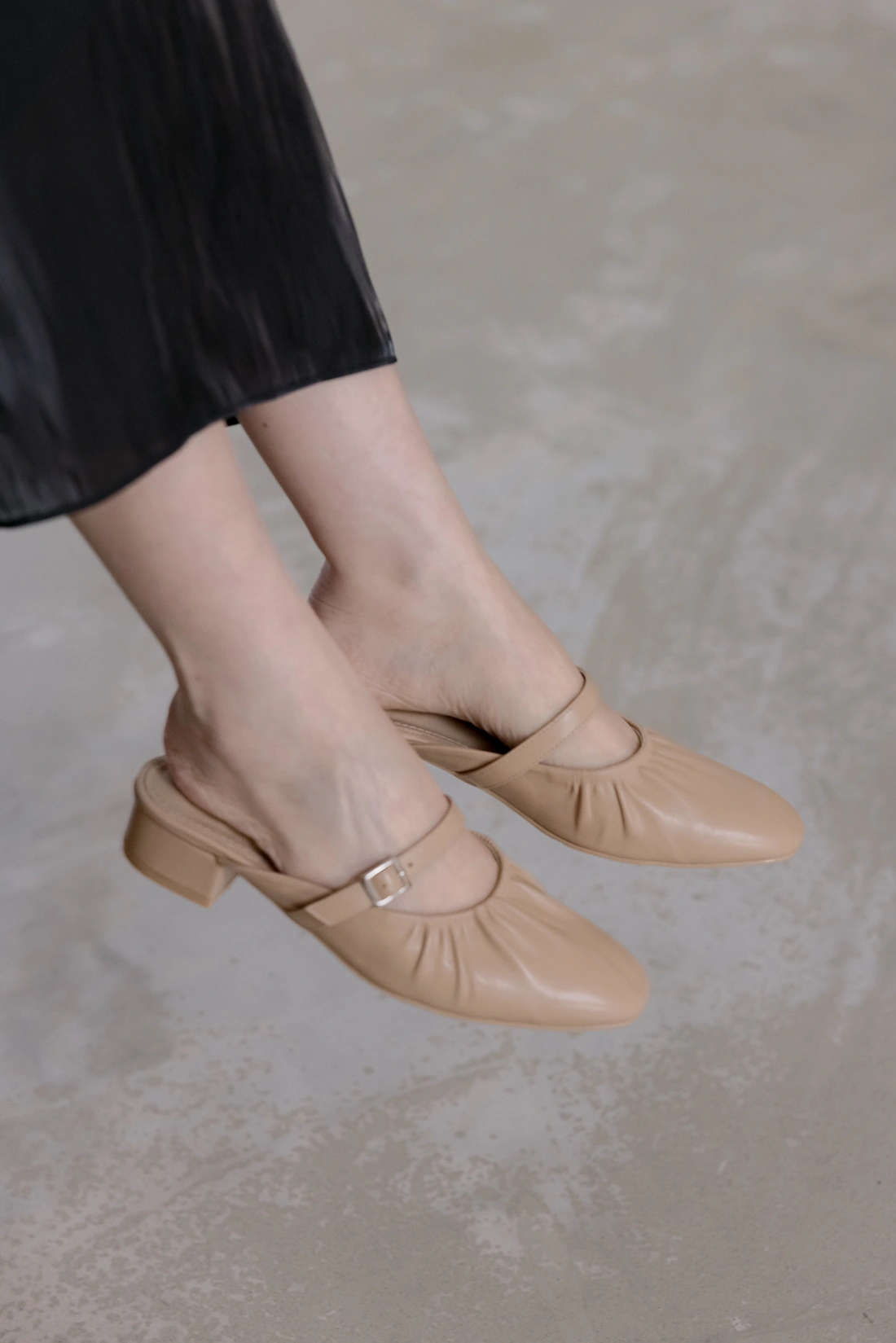 粗跟增加穩定性/抓皺設計修飾腳型/溫柔感微圓頭