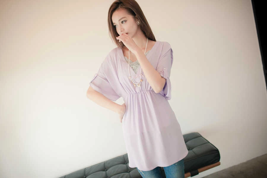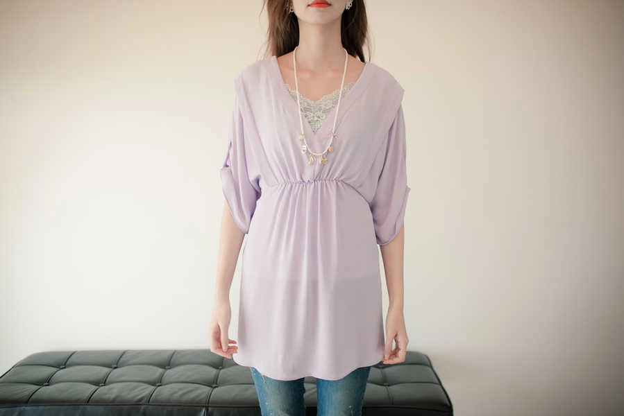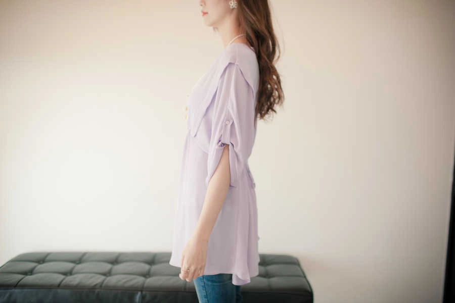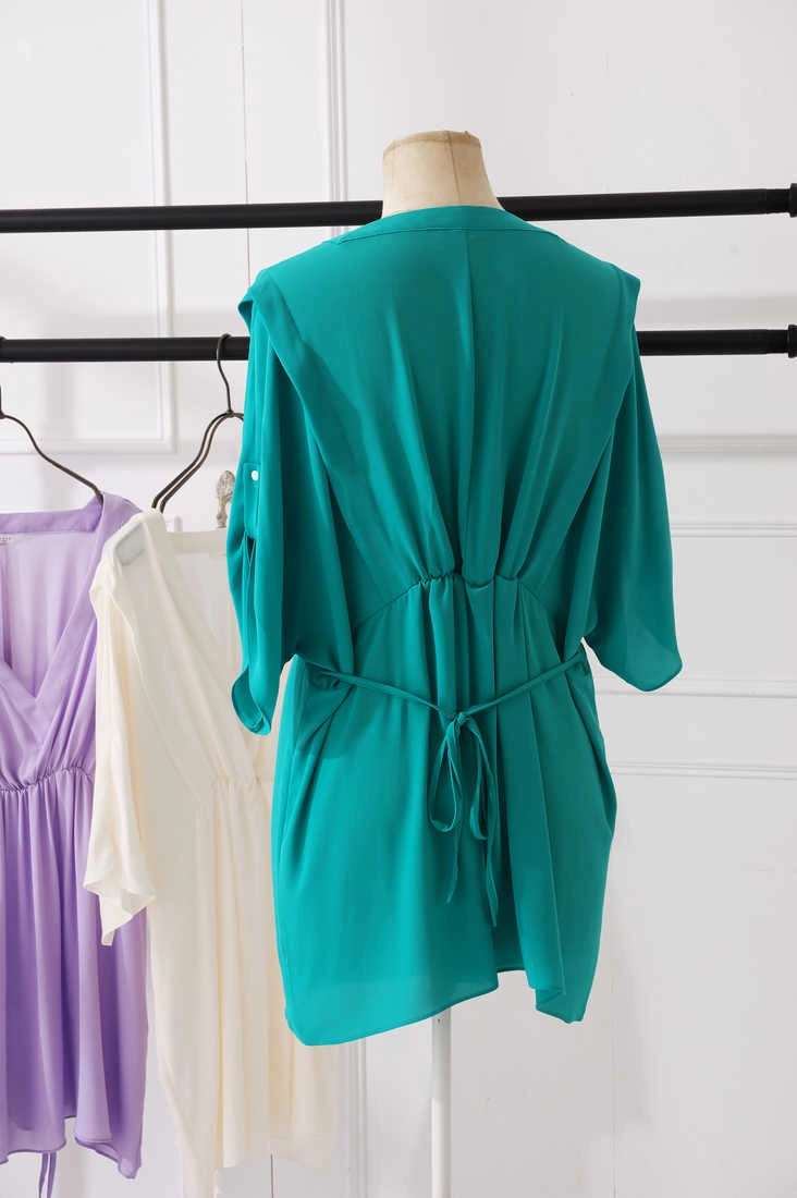 尺寸(cm):F 全長74 領口24 袖長31 袖口22 腋寬31 胸寬50 下擺67.5 綁帶長67.5 (是連在衣服上)