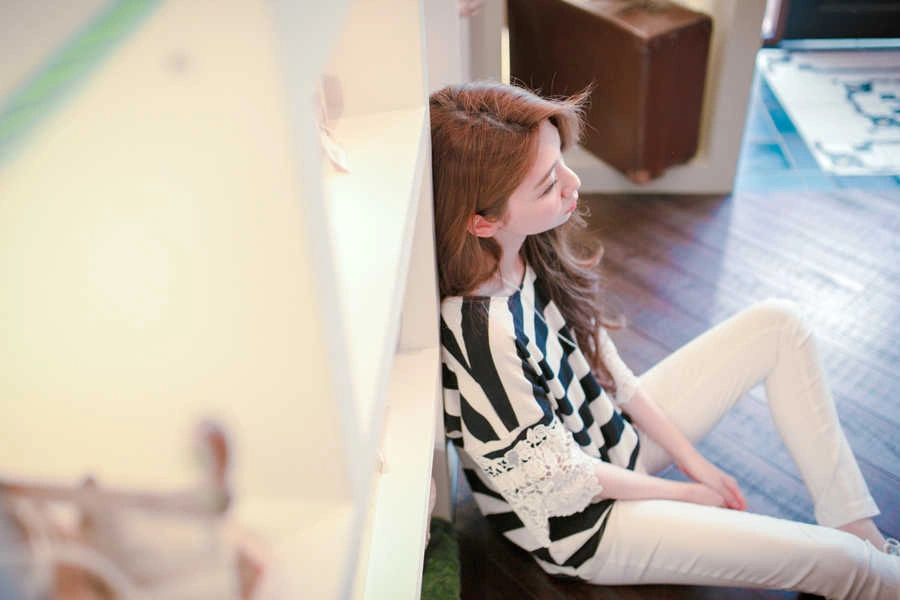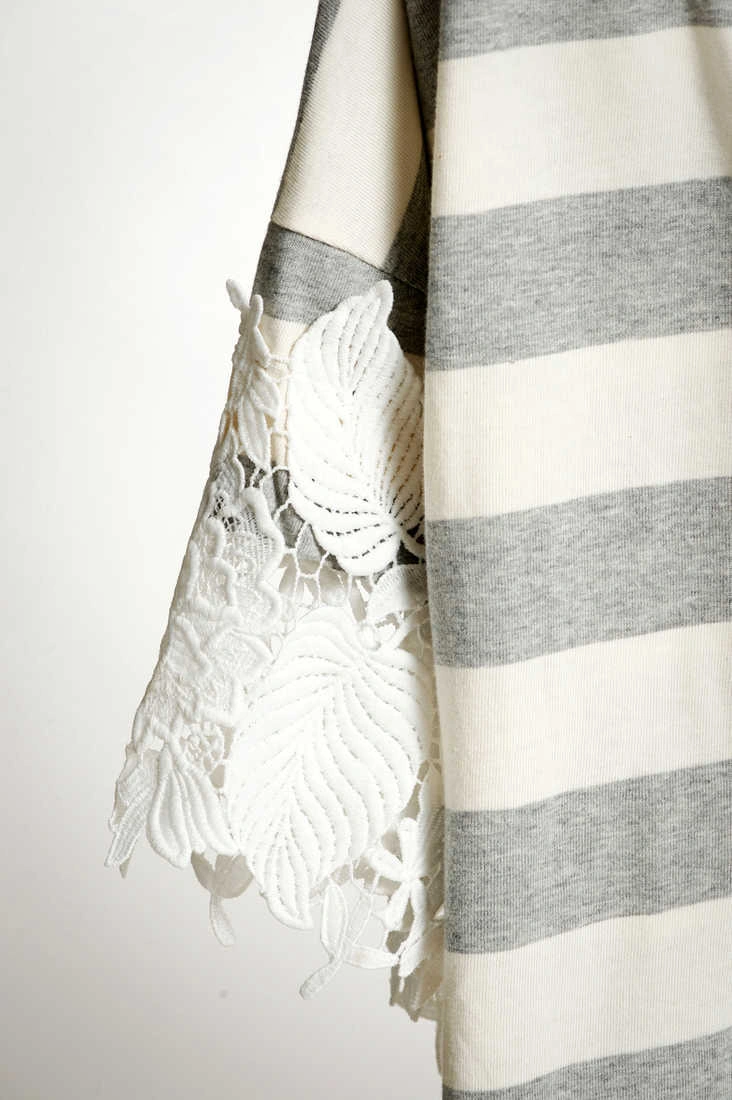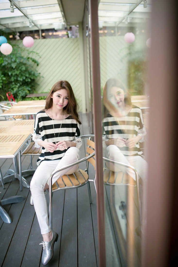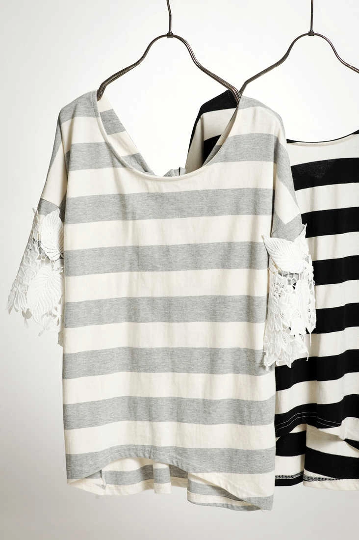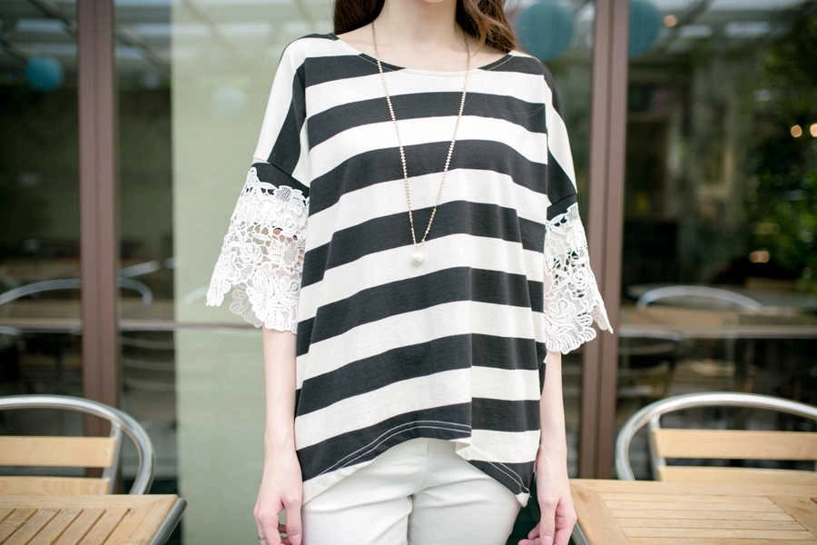 TIP:蕾絲袖、後綁帶(可拆式)、斜橫紋設計