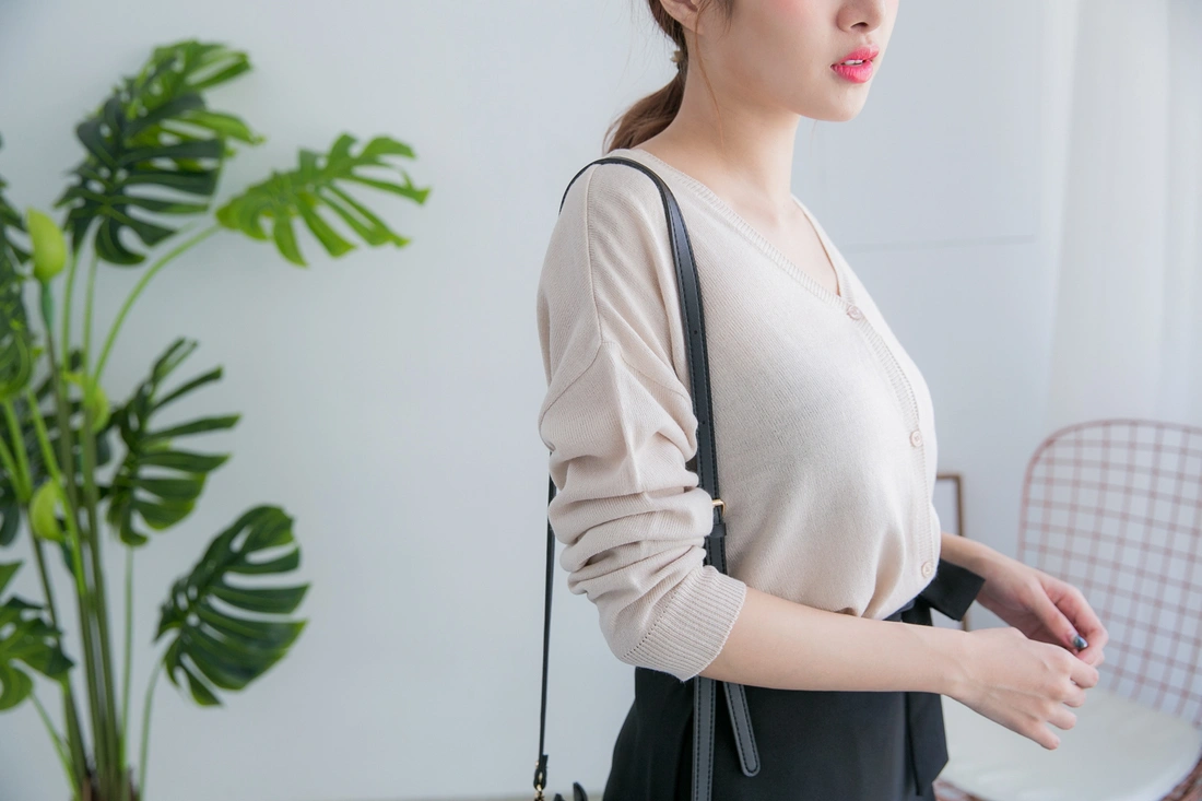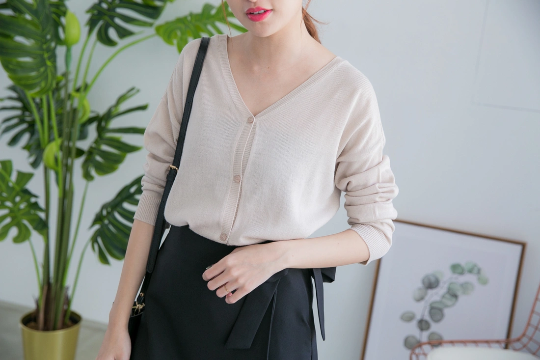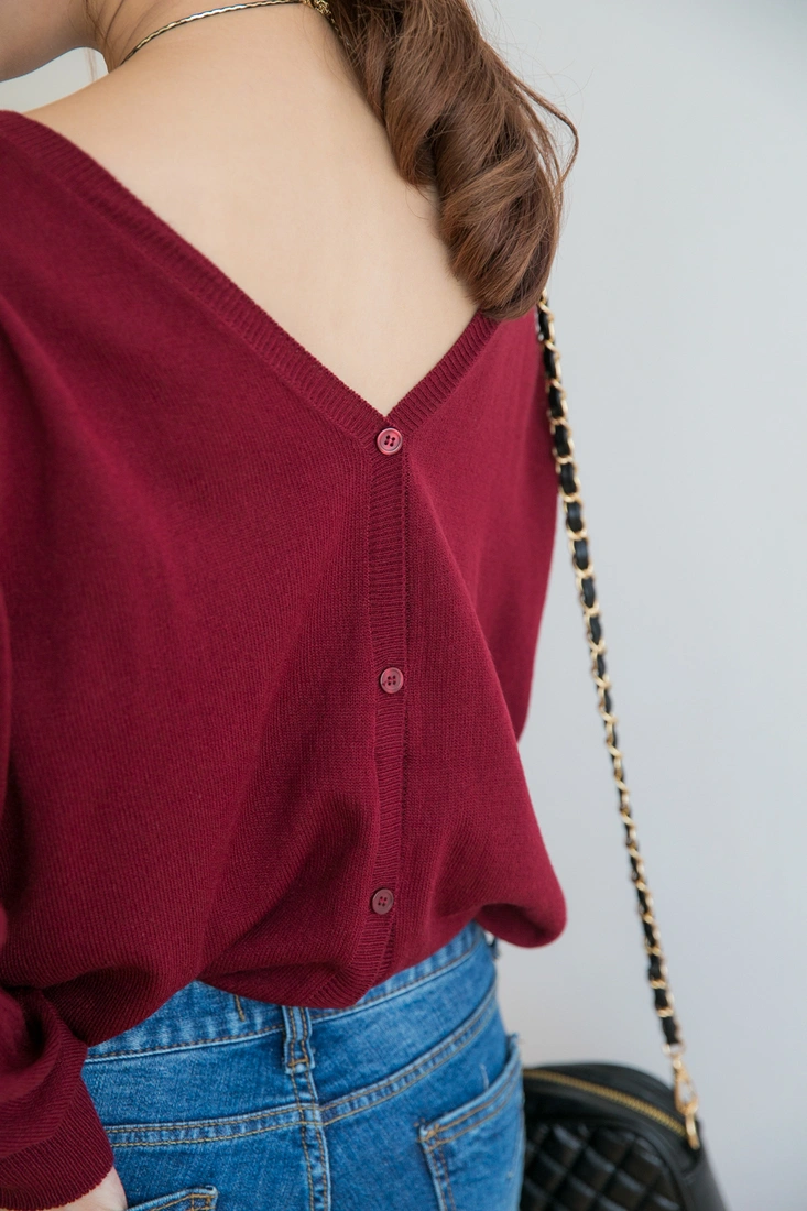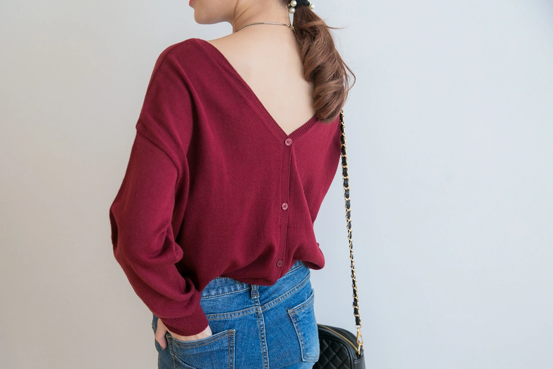 薄針織/排釦設計/前後v