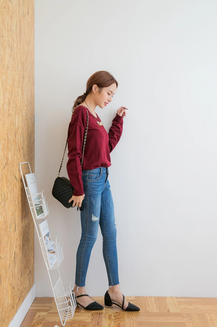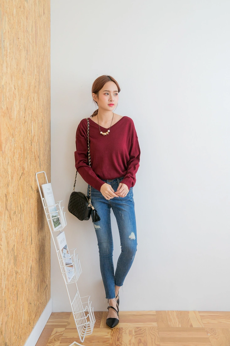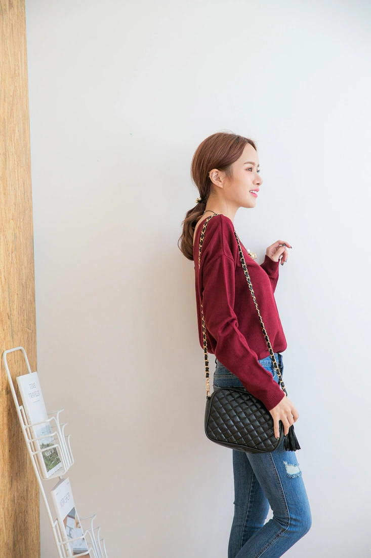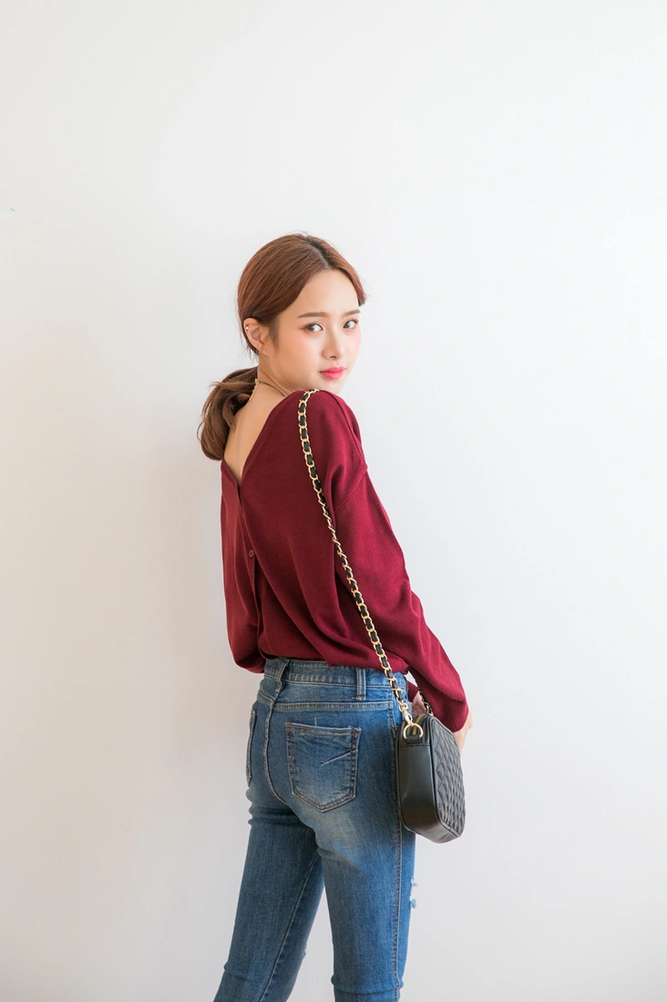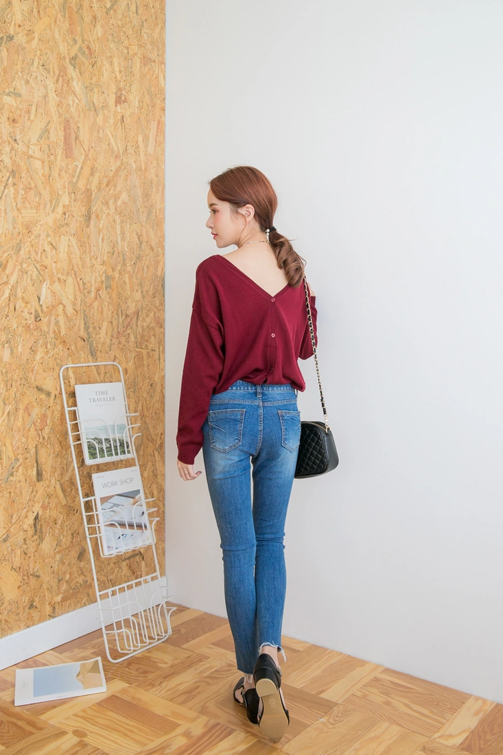 薄針織/排釦設計/前後v