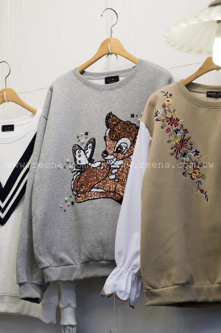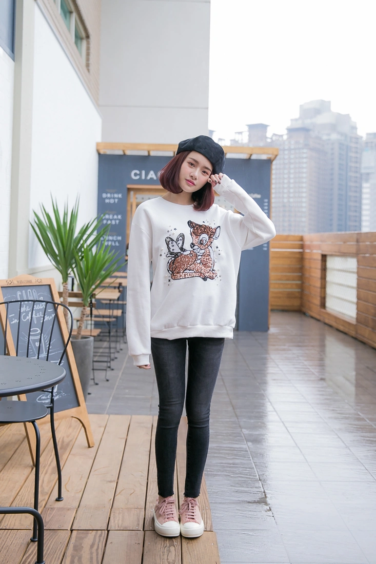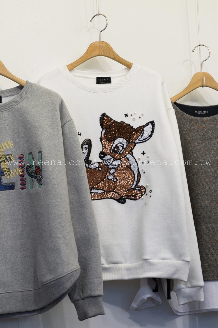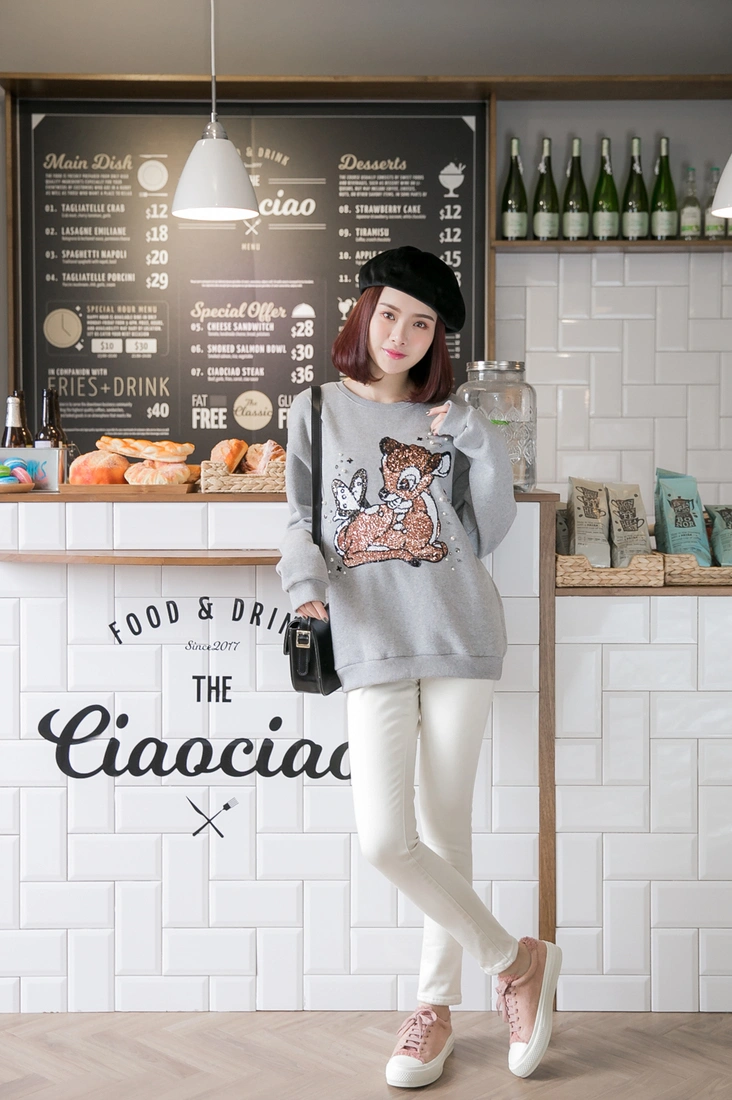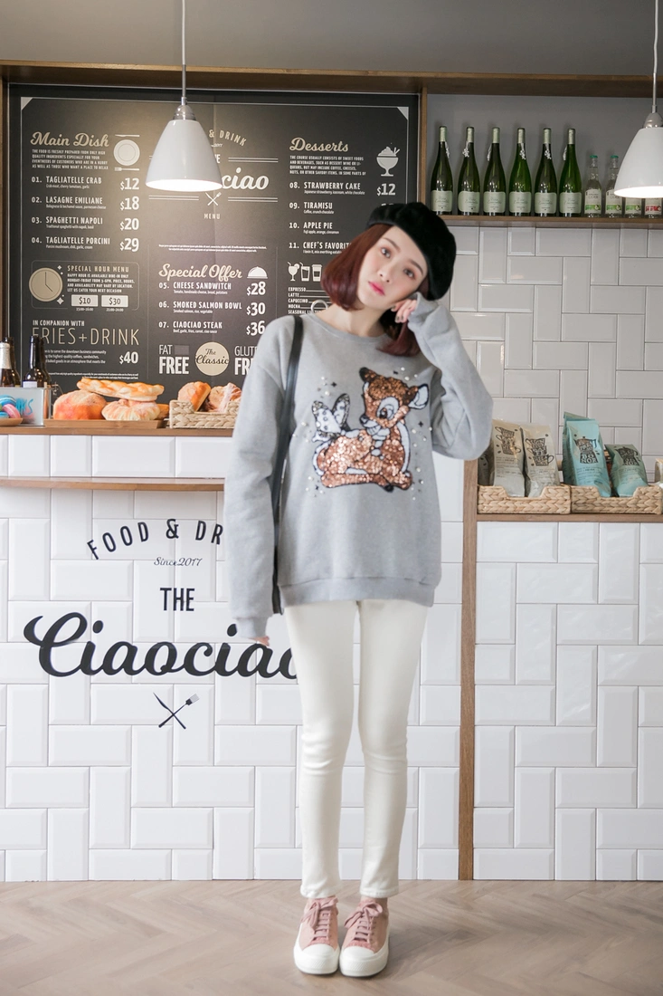 內刷毛/布料柔軟/精緻字母刺繡/外層厚棉材質 精緻亮片珍珠小鹿班比造型